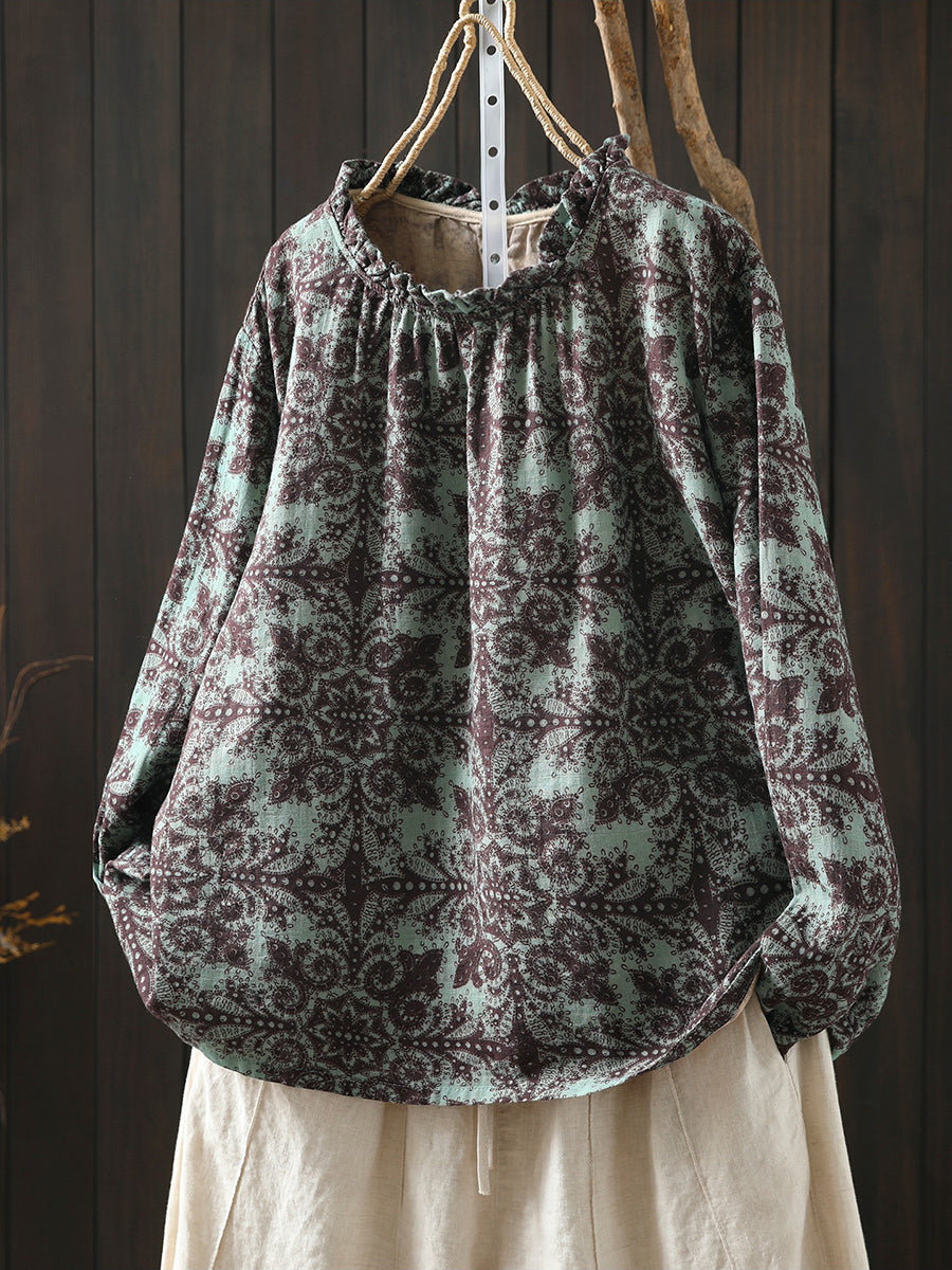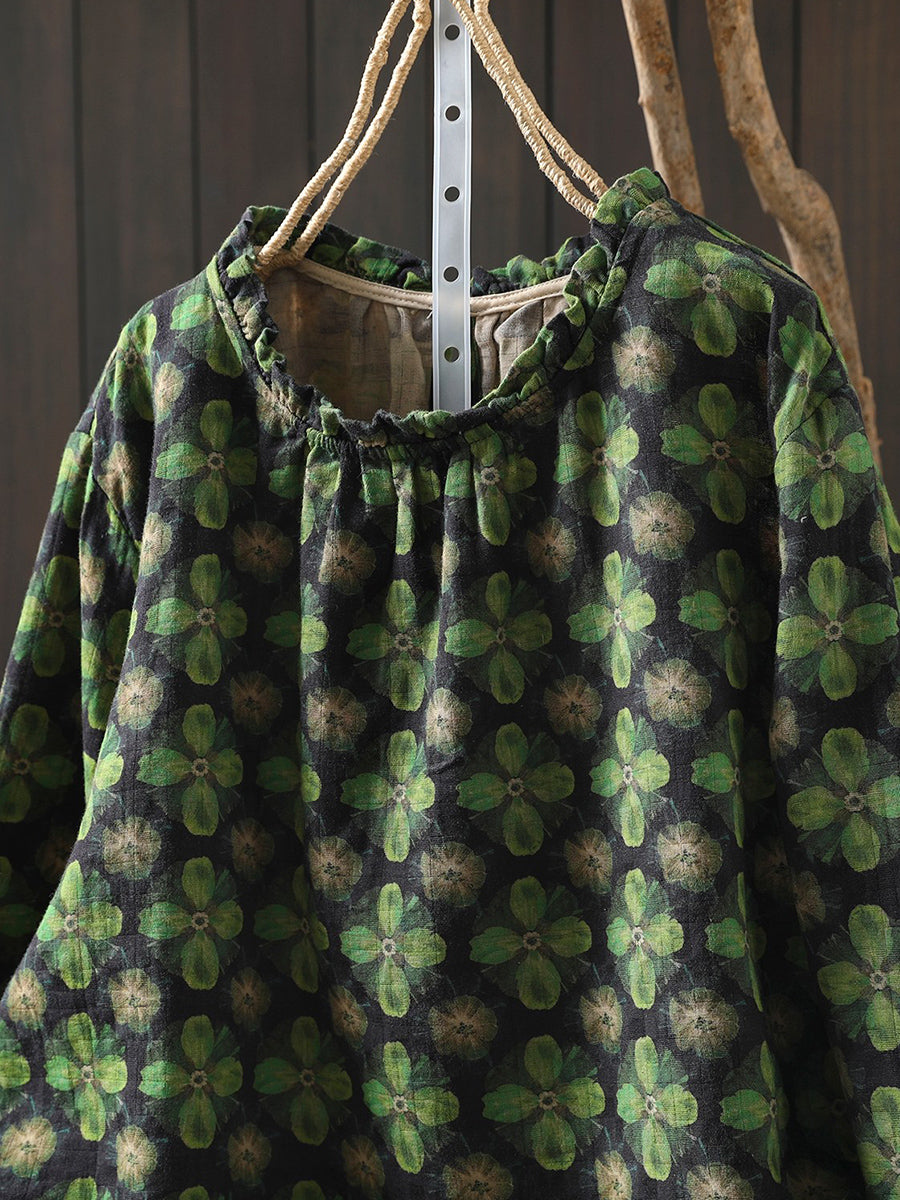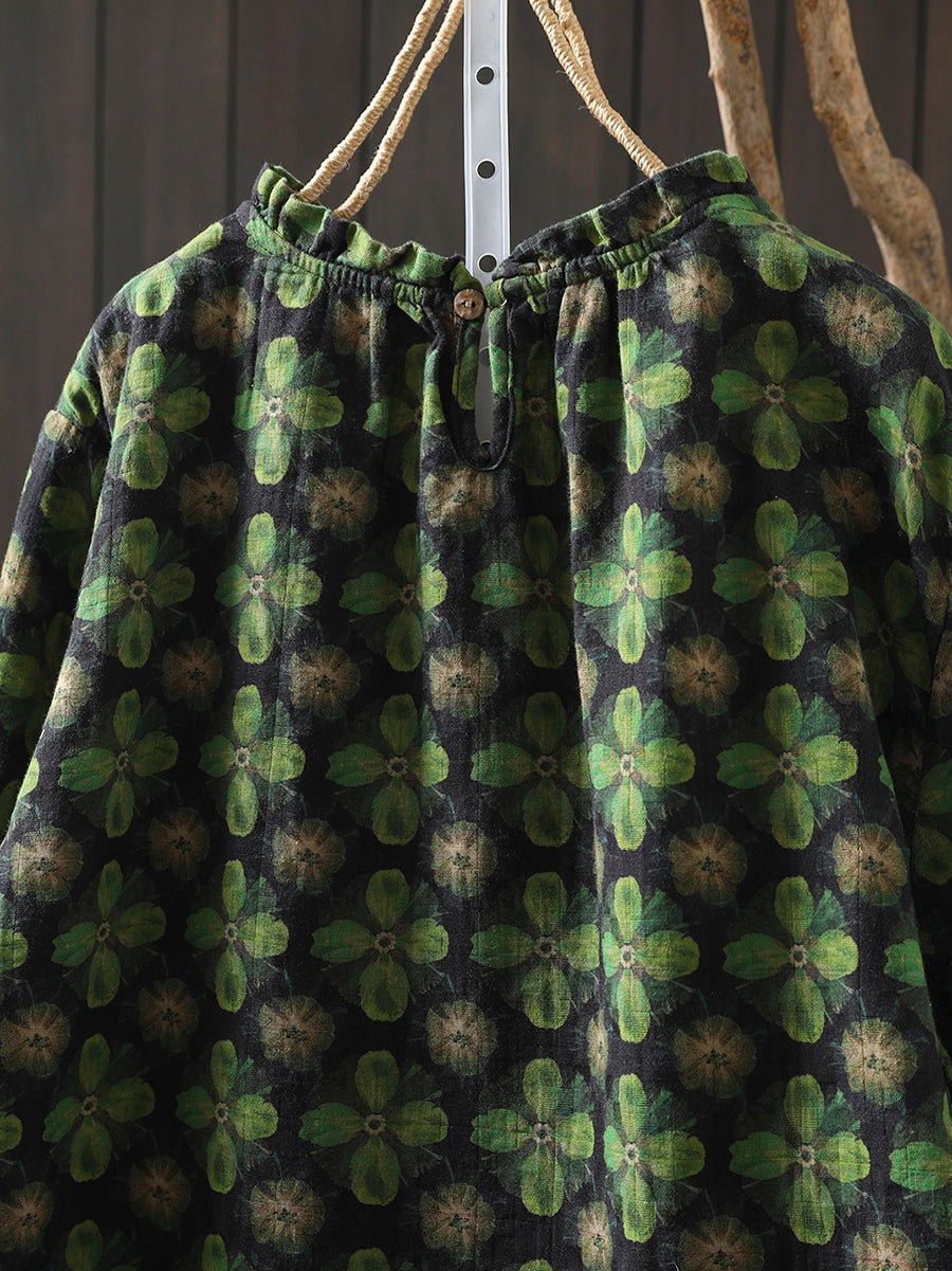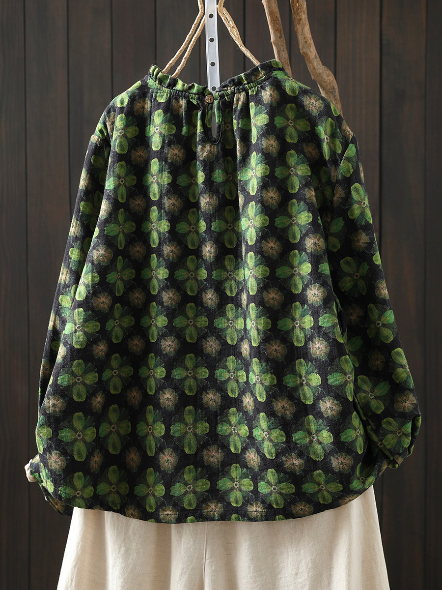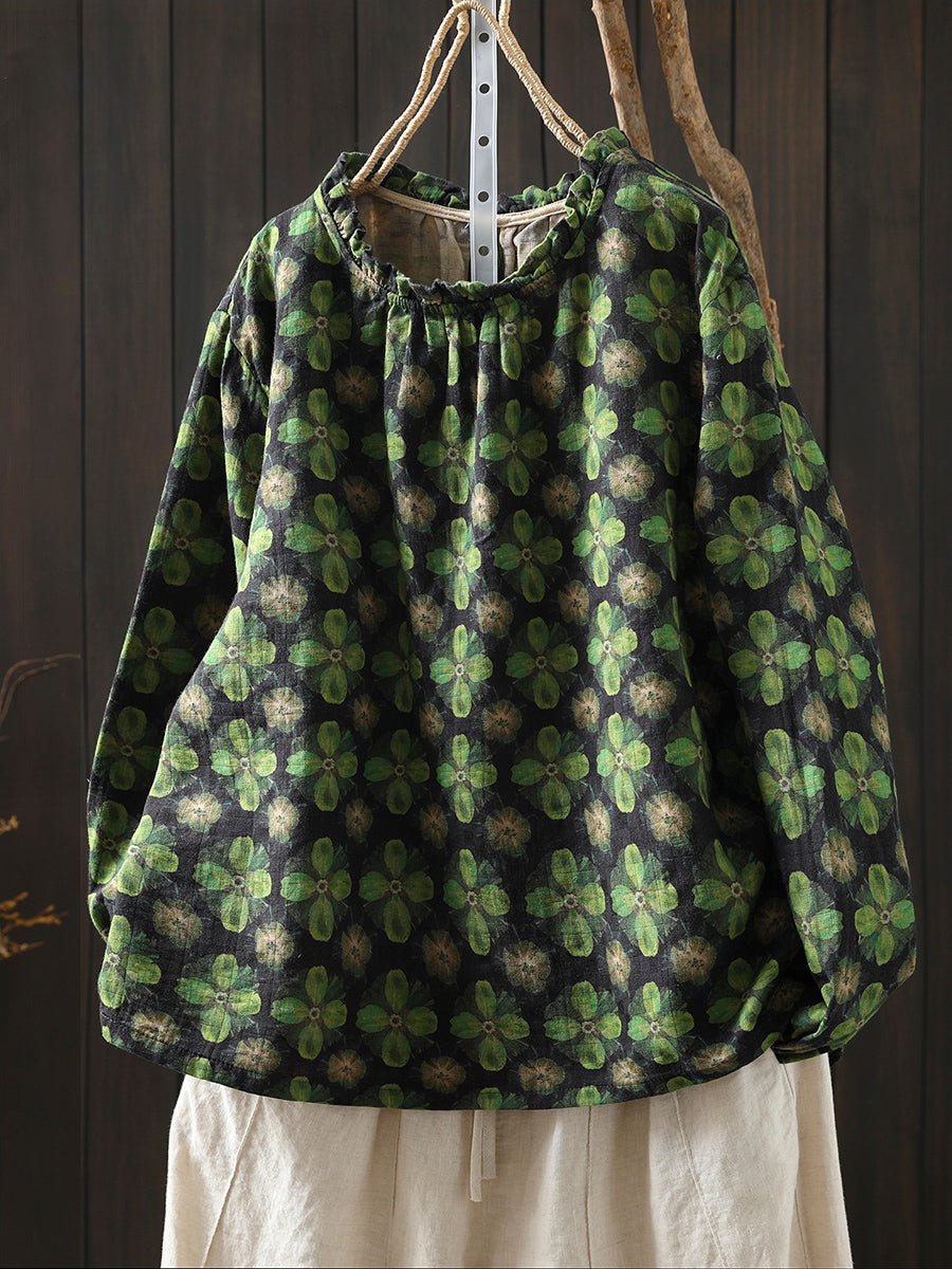 レディース 春 アーティスティック 花柄 コットン ブラウス