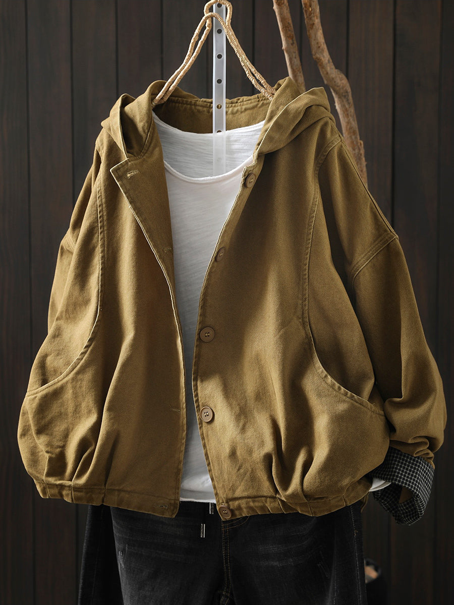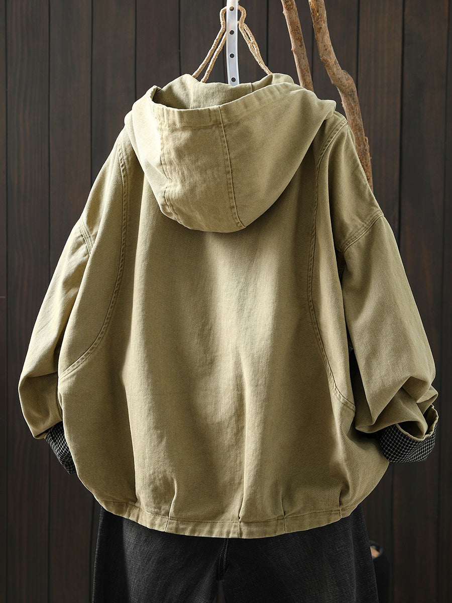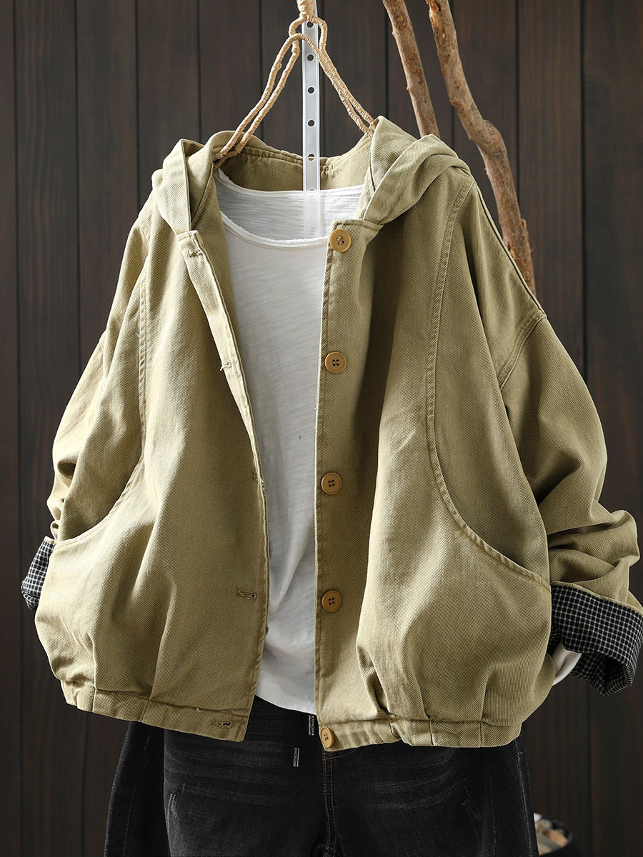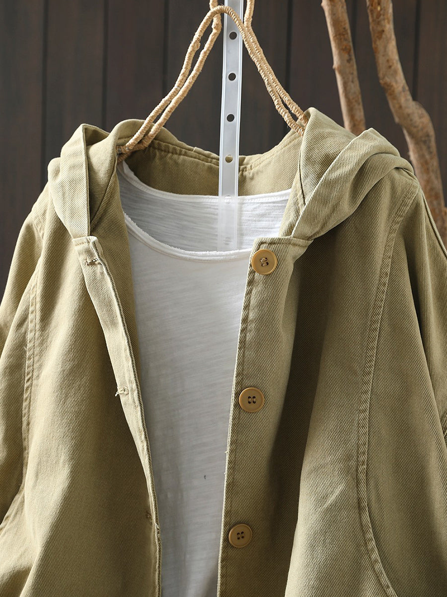レディース 春 カジュアル ピュアカラー フード付き コットンコート