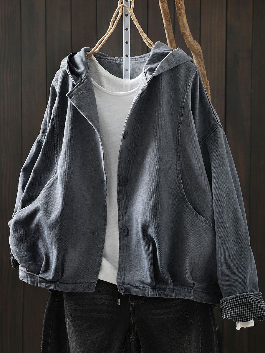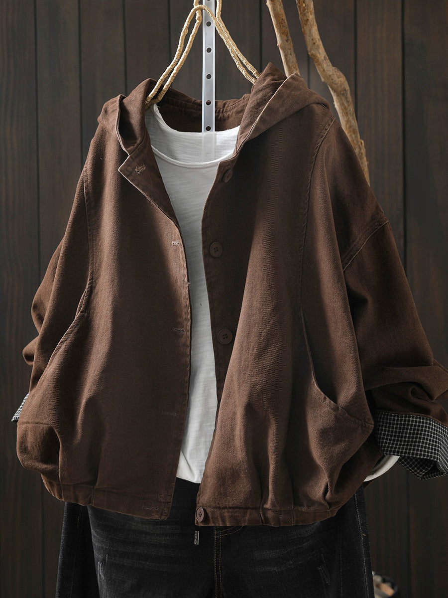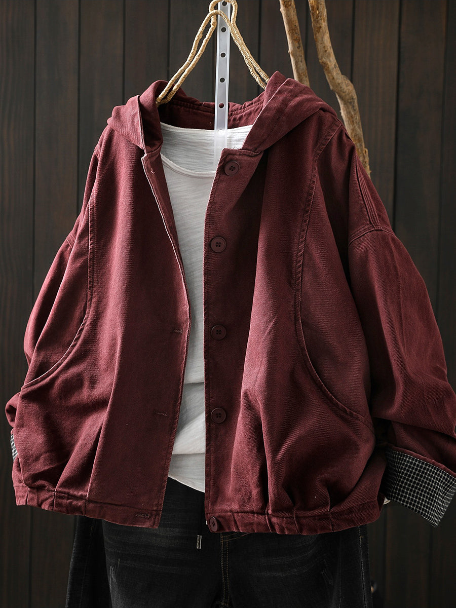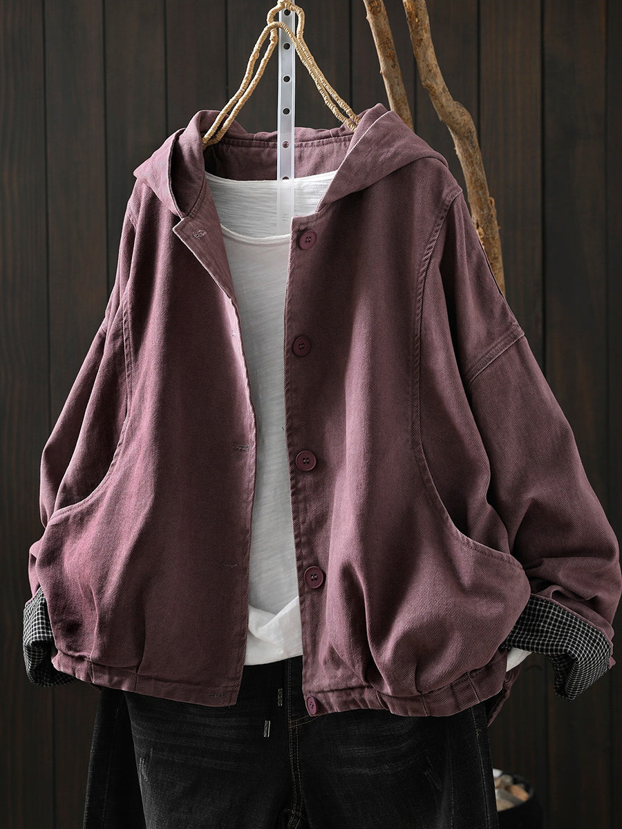 レディース 春 カジュアル ピュアカラー フード付き コットンコート