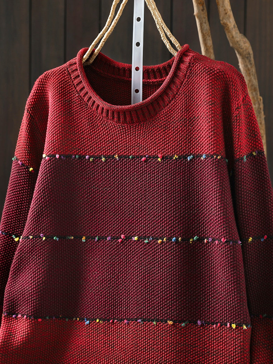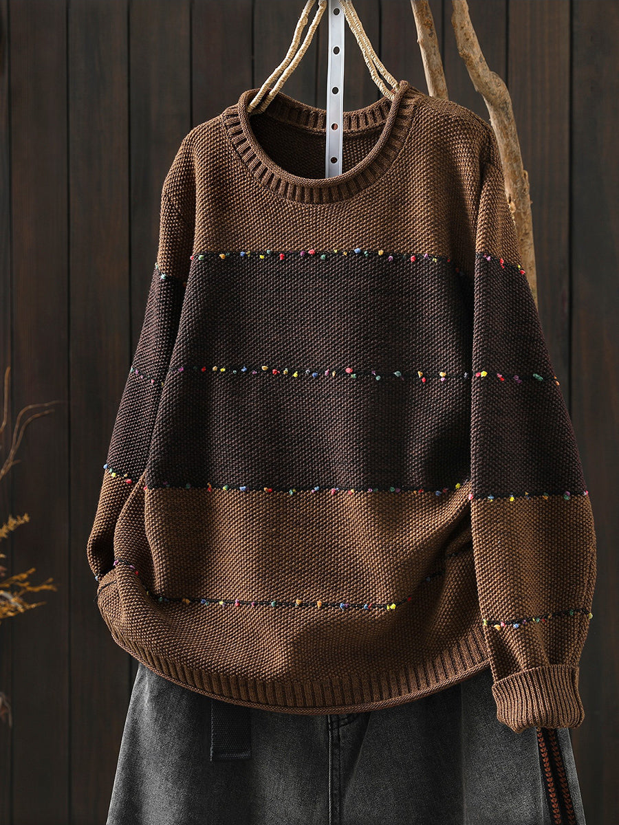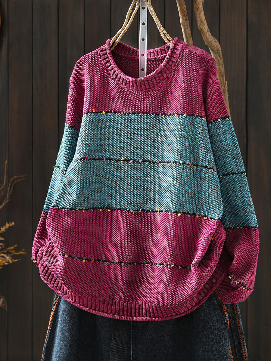 レディース 春 レトロ カラーブロック Oネック セーター