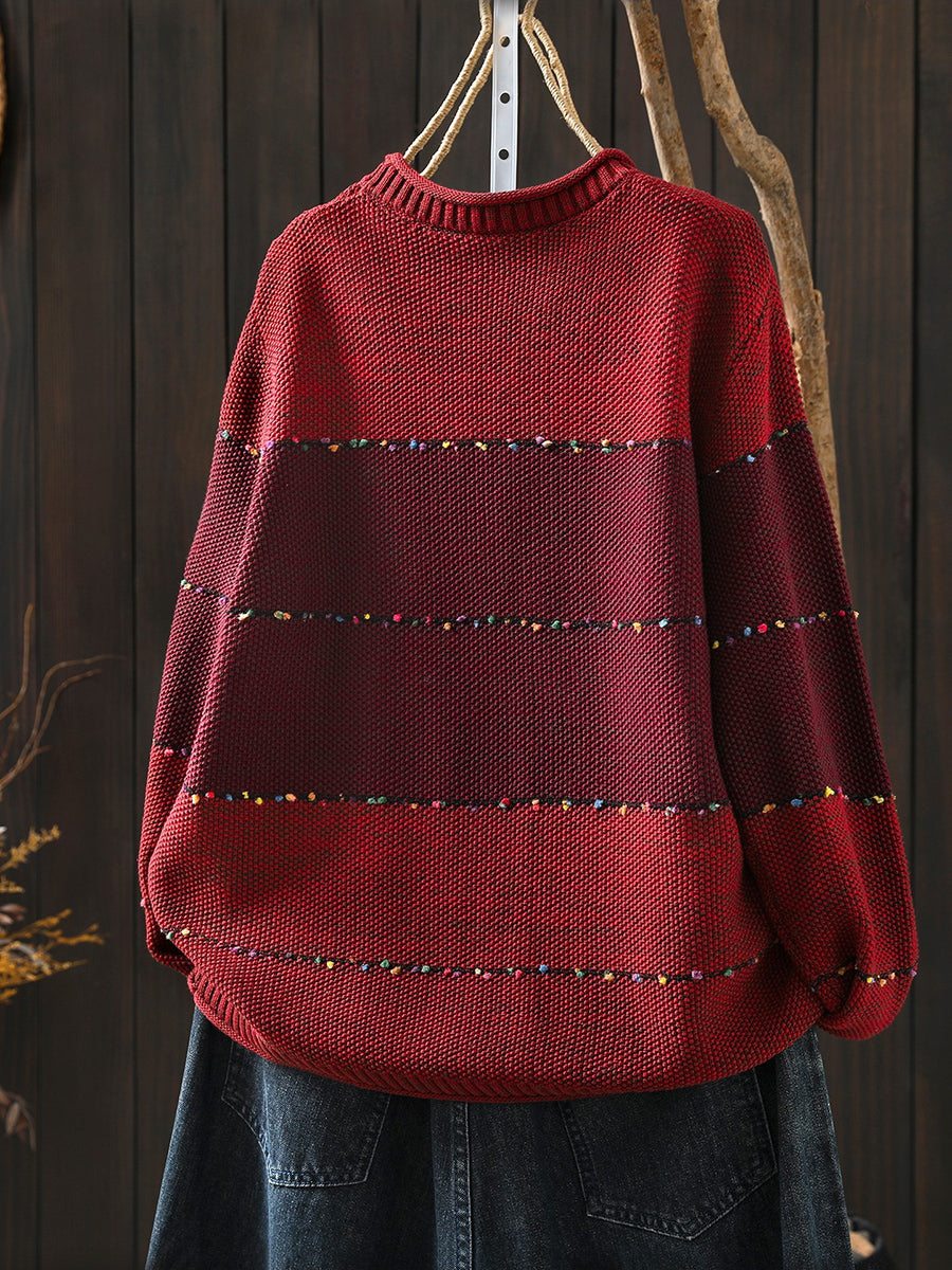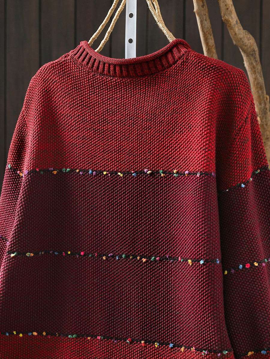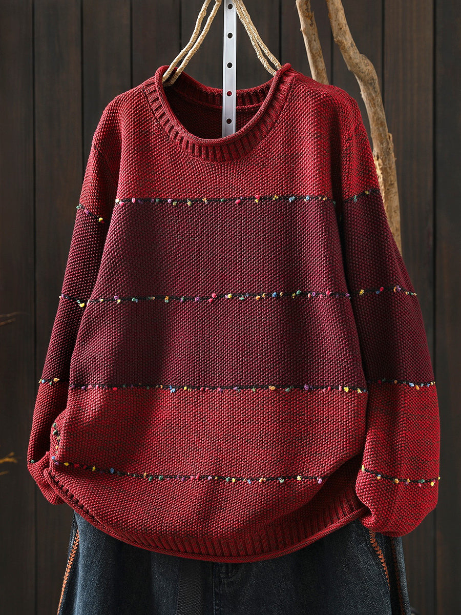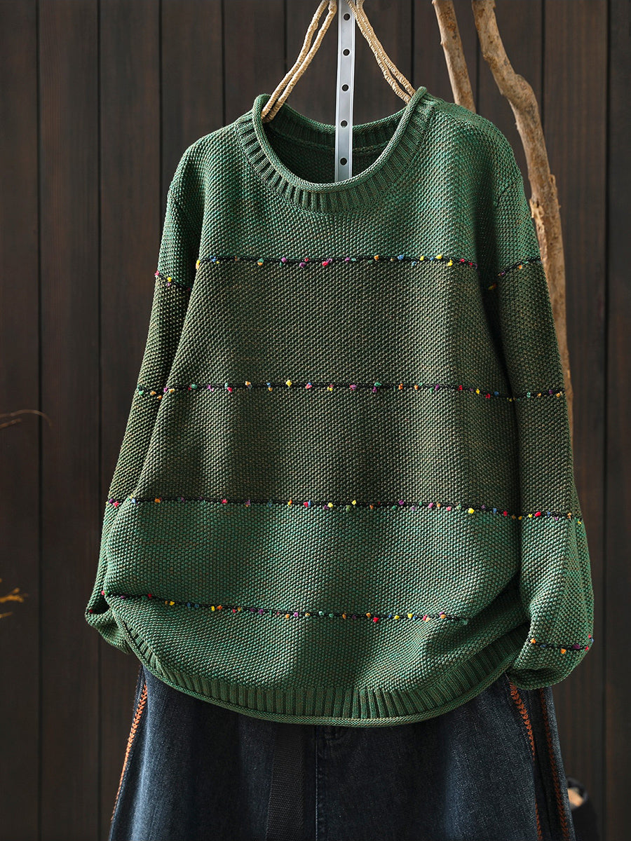 レディース 春 レトロ カラーブロック Oネック セーター