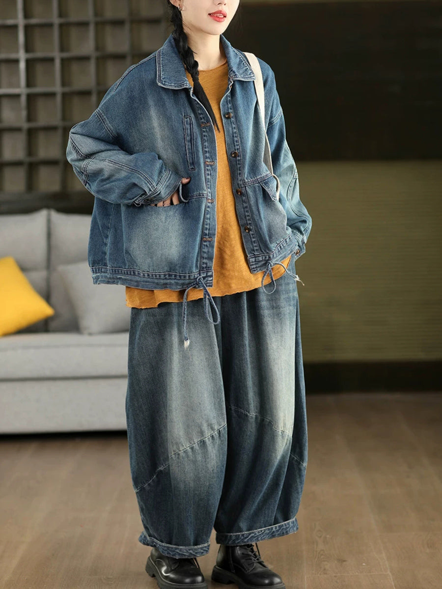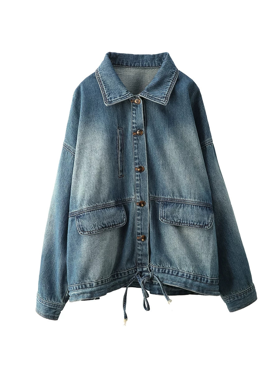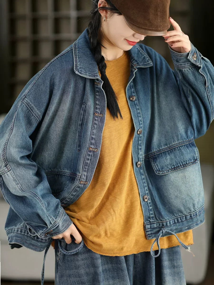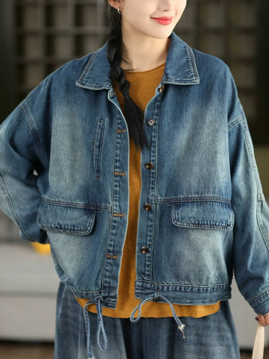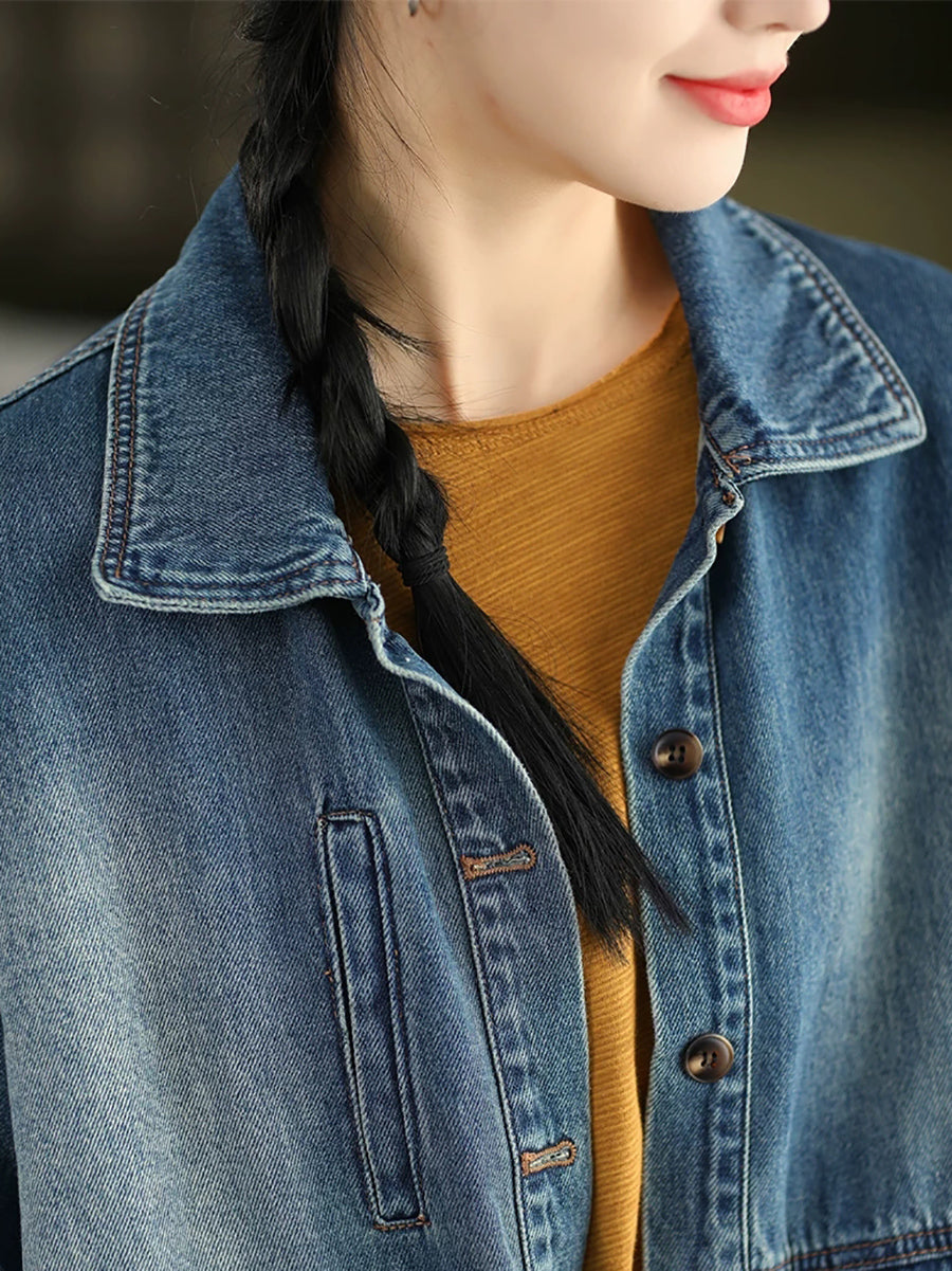 レディース 春 レトロ ピュアカラー デニムコート