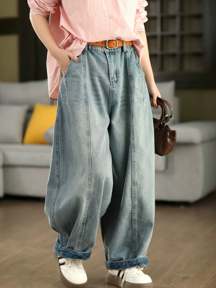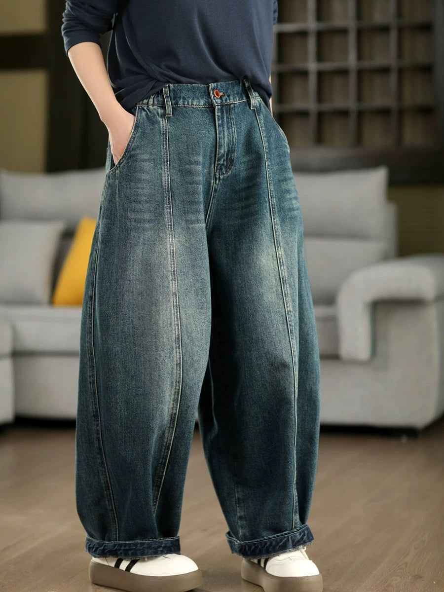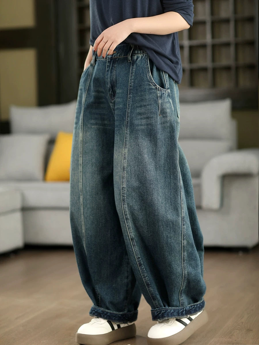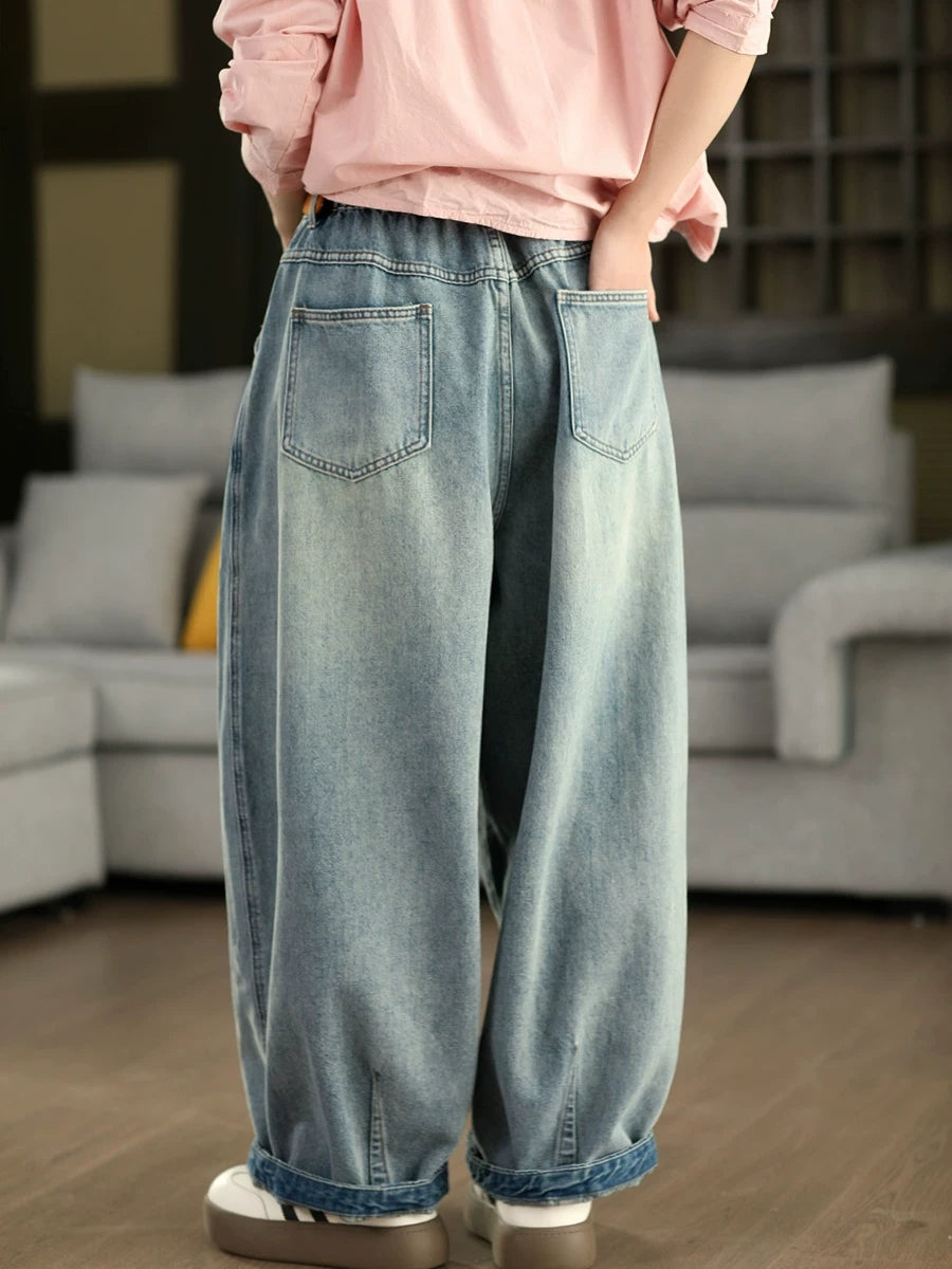 レディース 春 ヴィンテージ ウォッシュド デニム ブルマー
