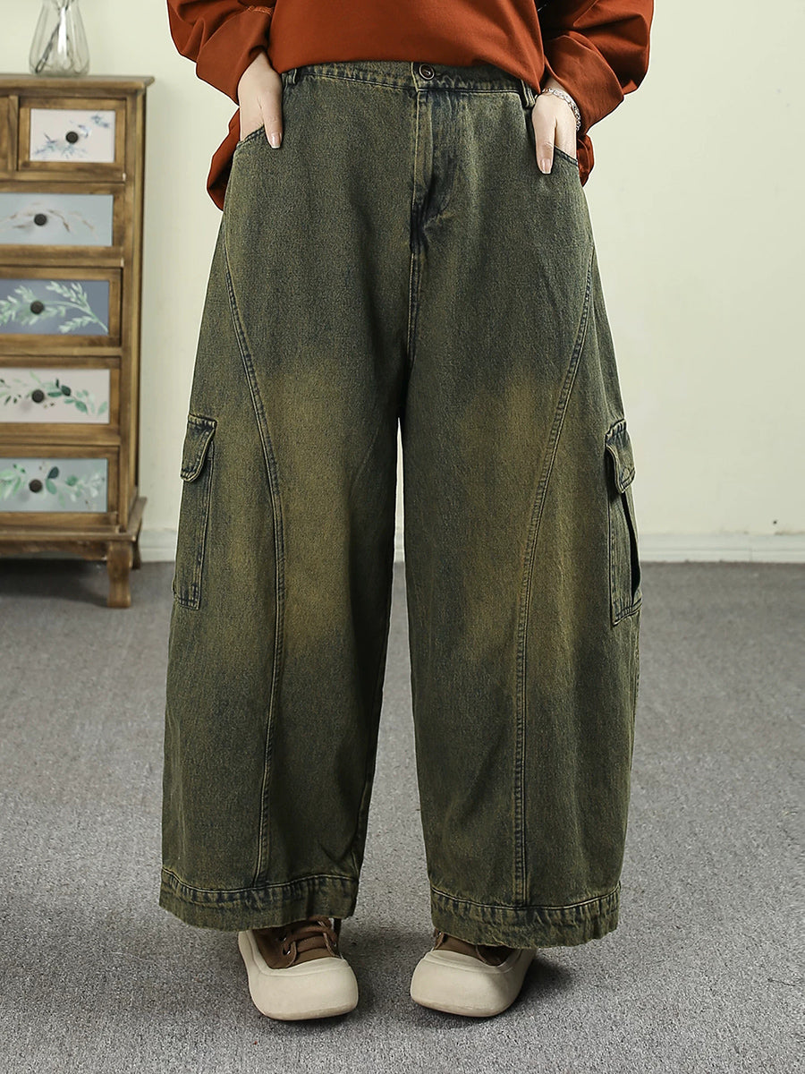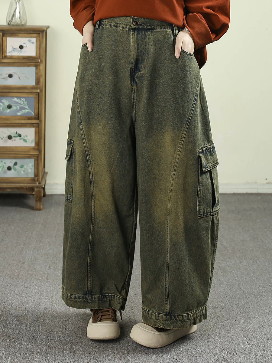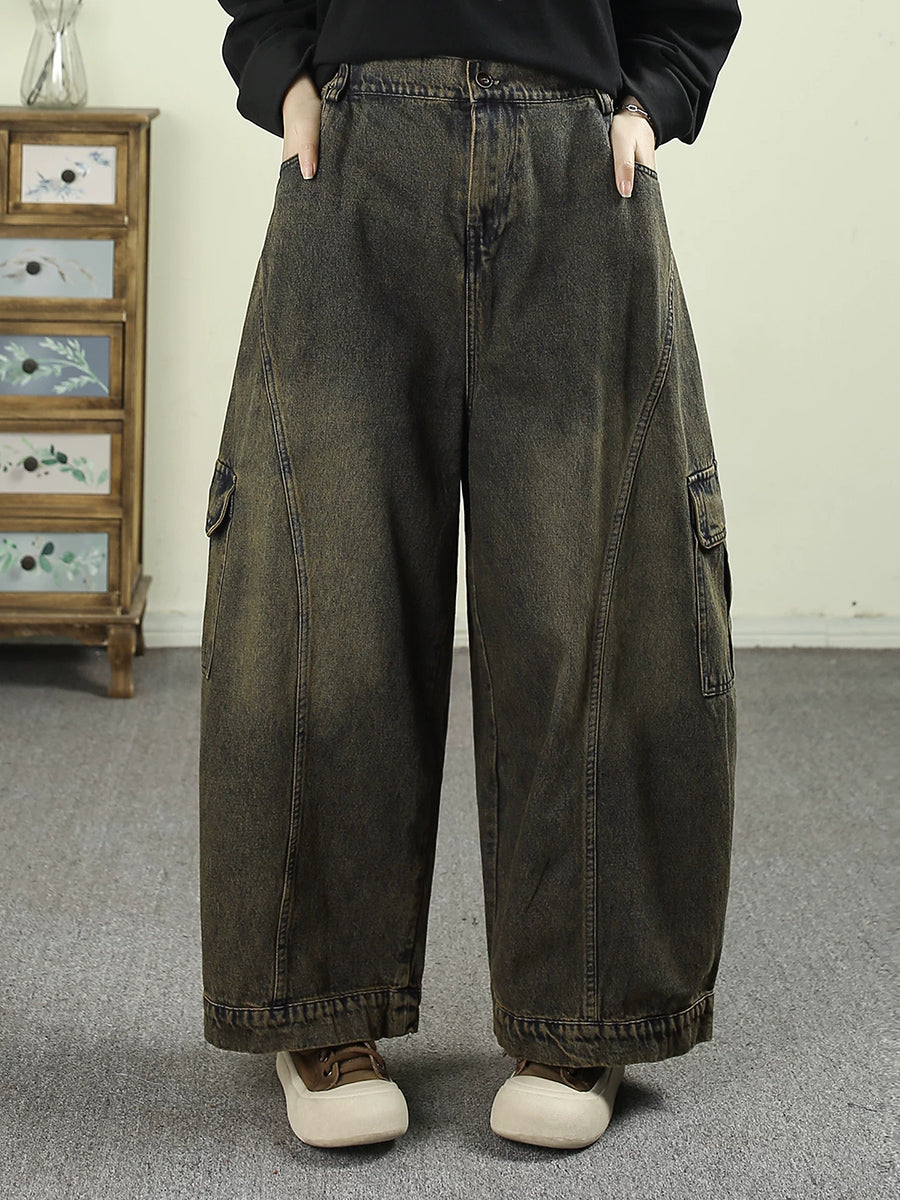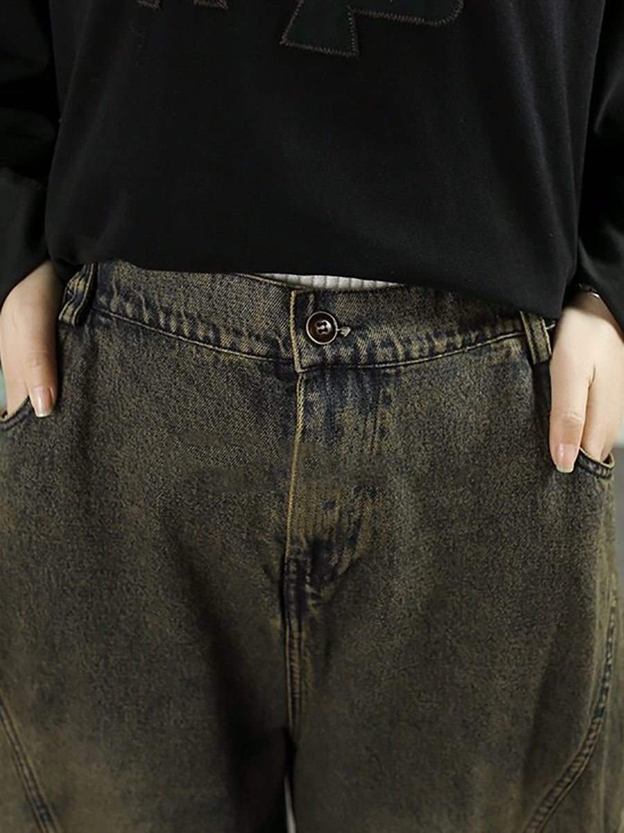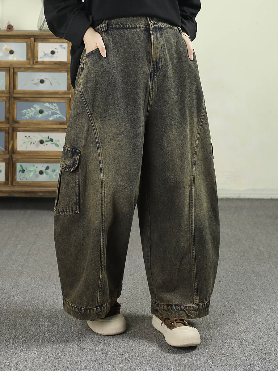 レディース 春 ヴィンテージ ウォッシュド デニム ハーレムパンツ