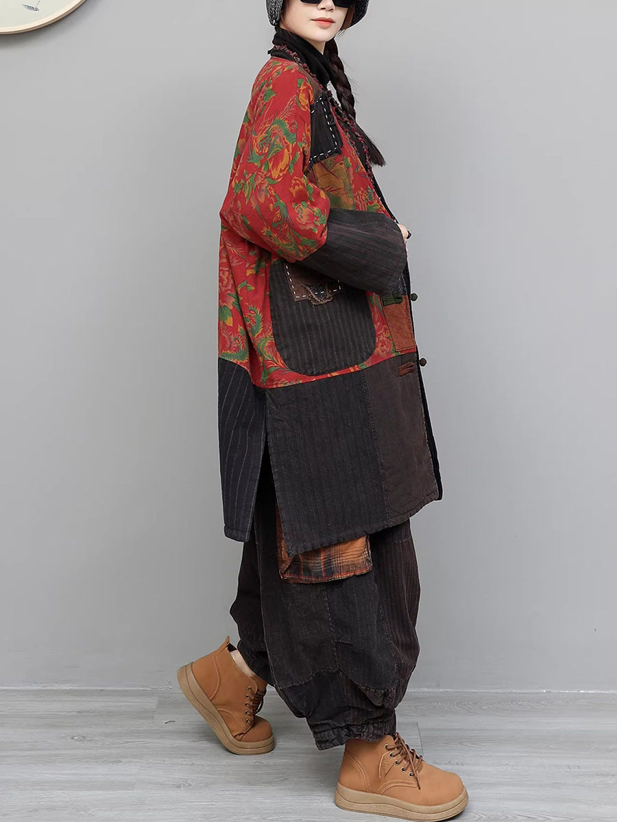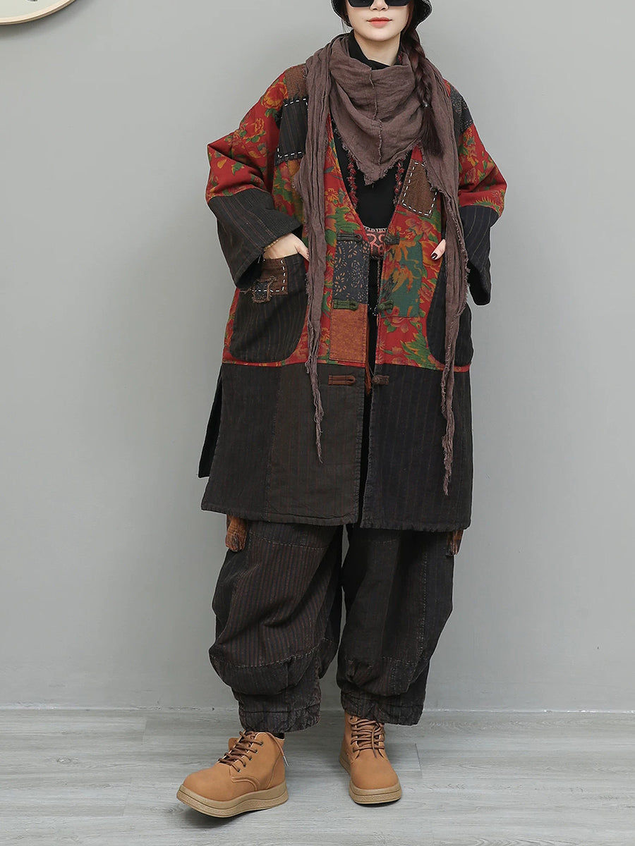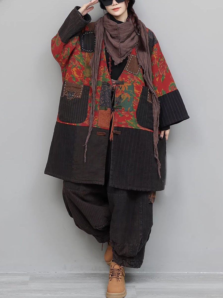 レディース 冬用 エスニックパッチ Vネック パッド入りスーツ
