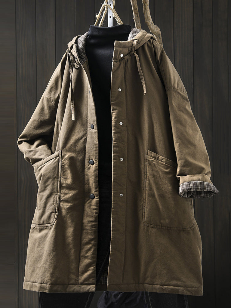 レディース 秋 カジュアル ピュアカラー フード付き パッド入りコート