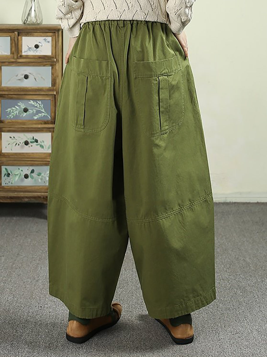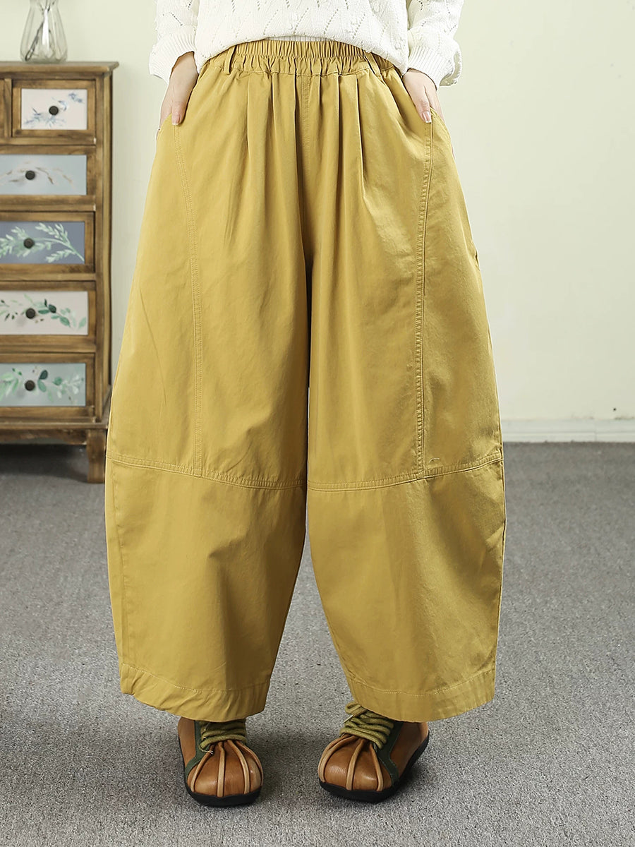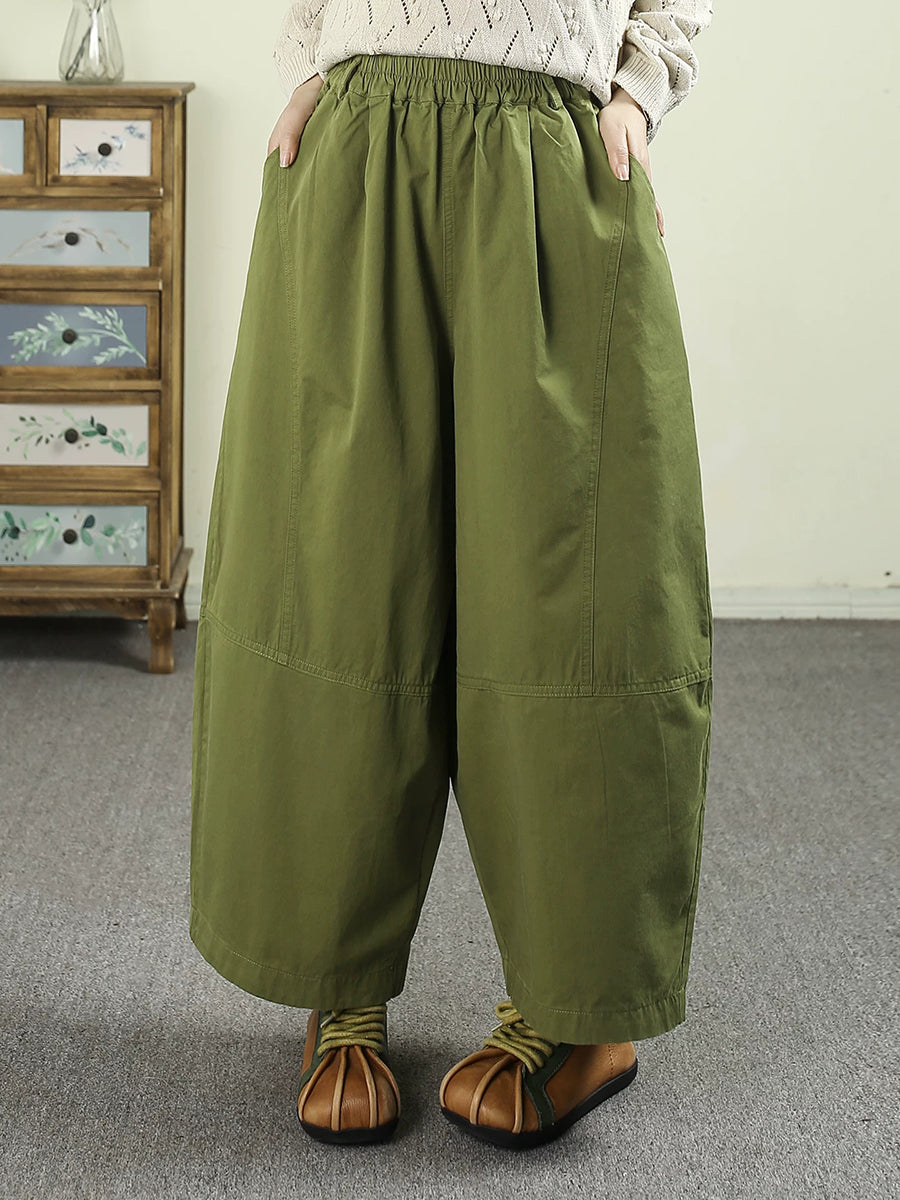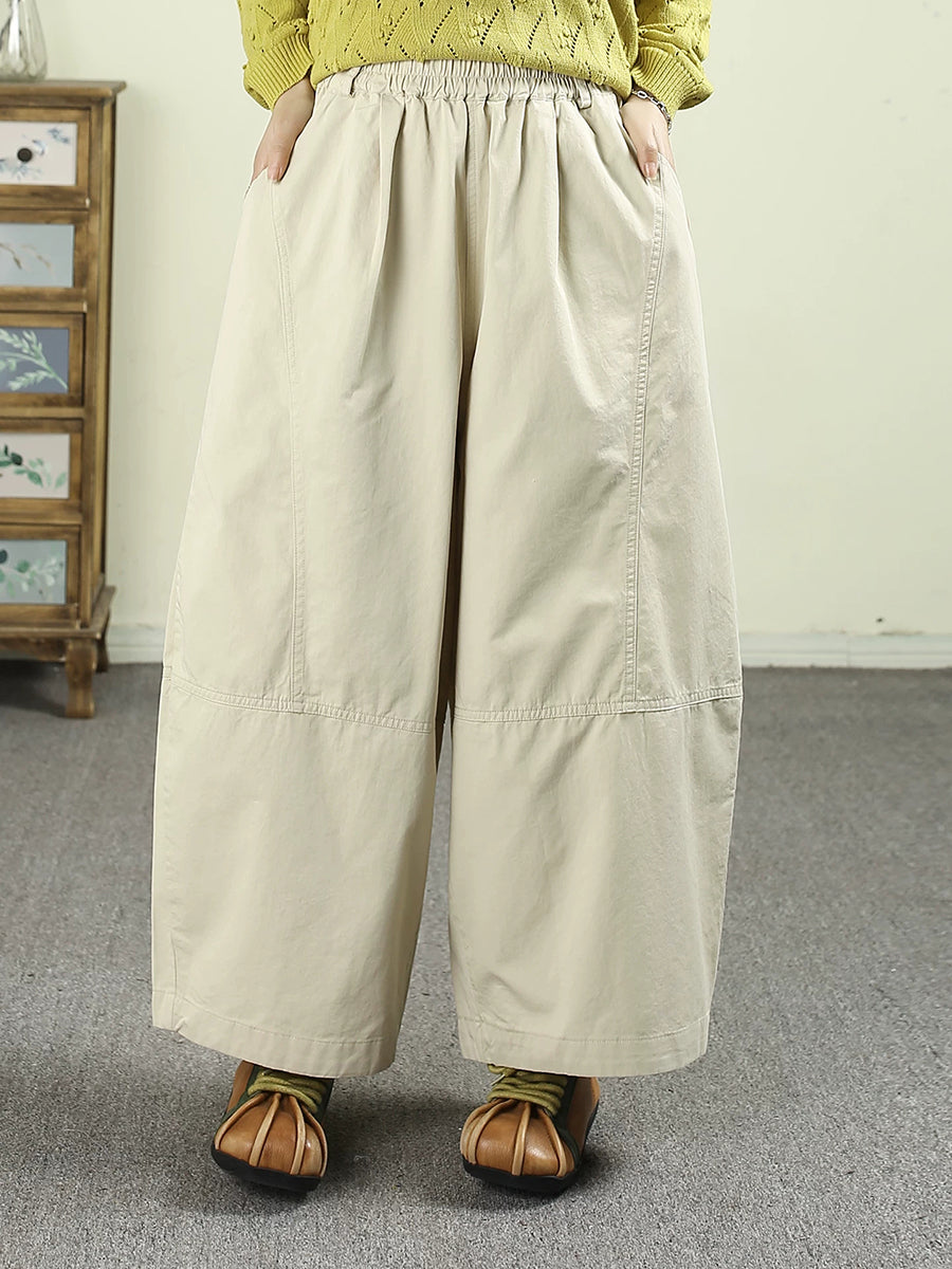 レディース 春 カジュアル ピュアカラー コットン ワイドレッグパンツ
