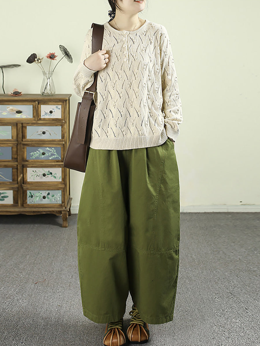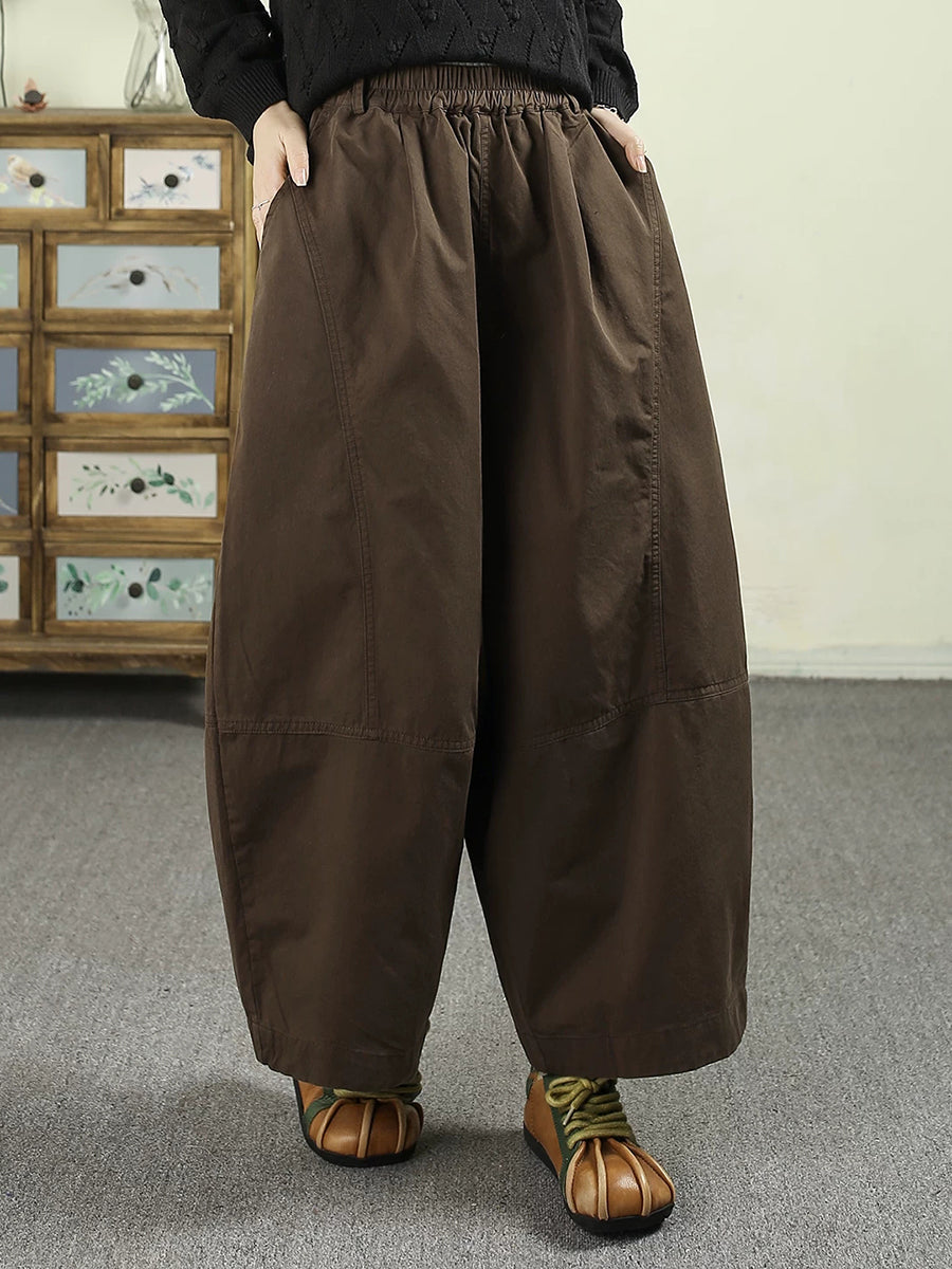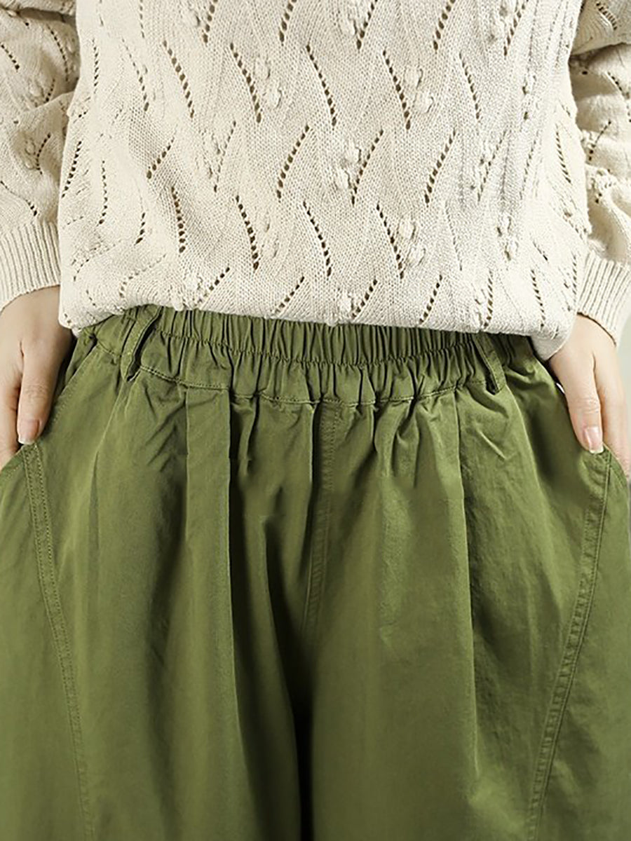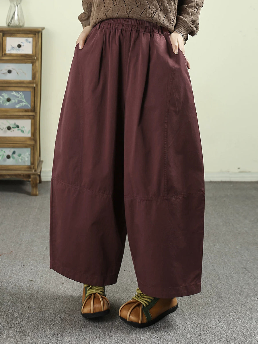 レディース 春 カジュアル ピュアカラー コットン ワイドレッグパンツ
