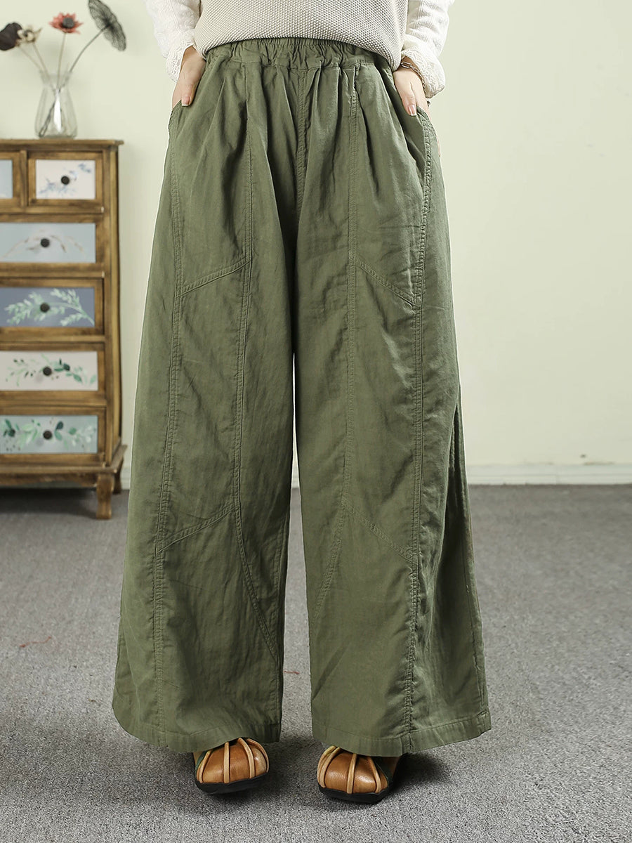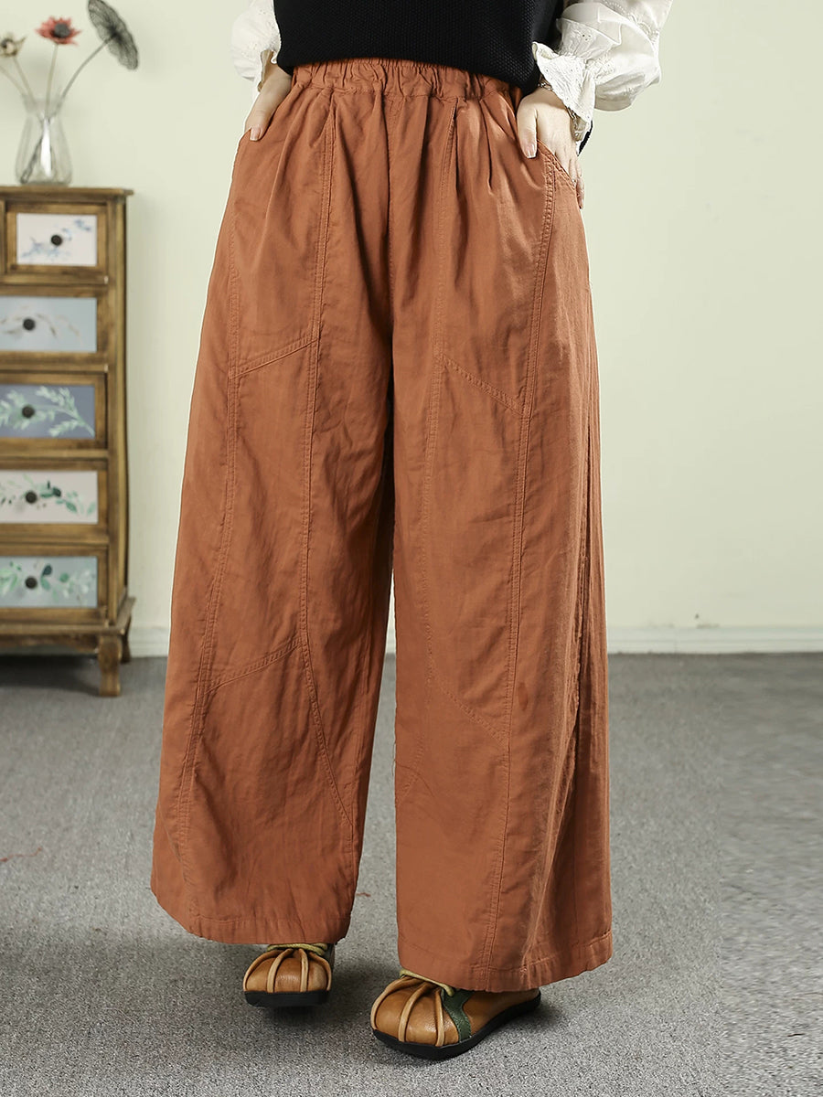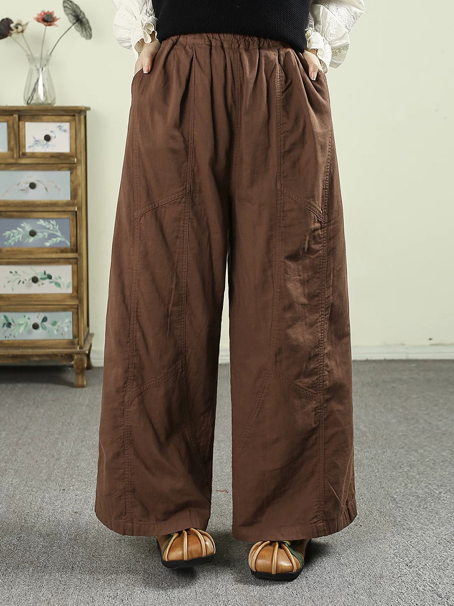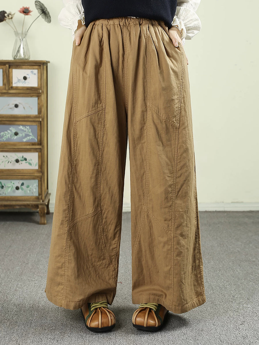 レディース 春 レトロ 100%コットン ワイドレッグパンツ