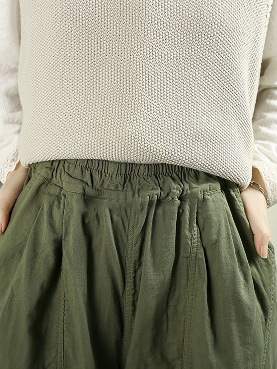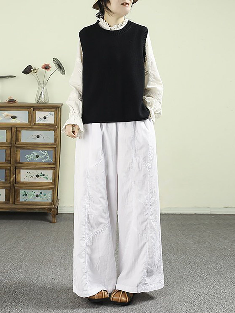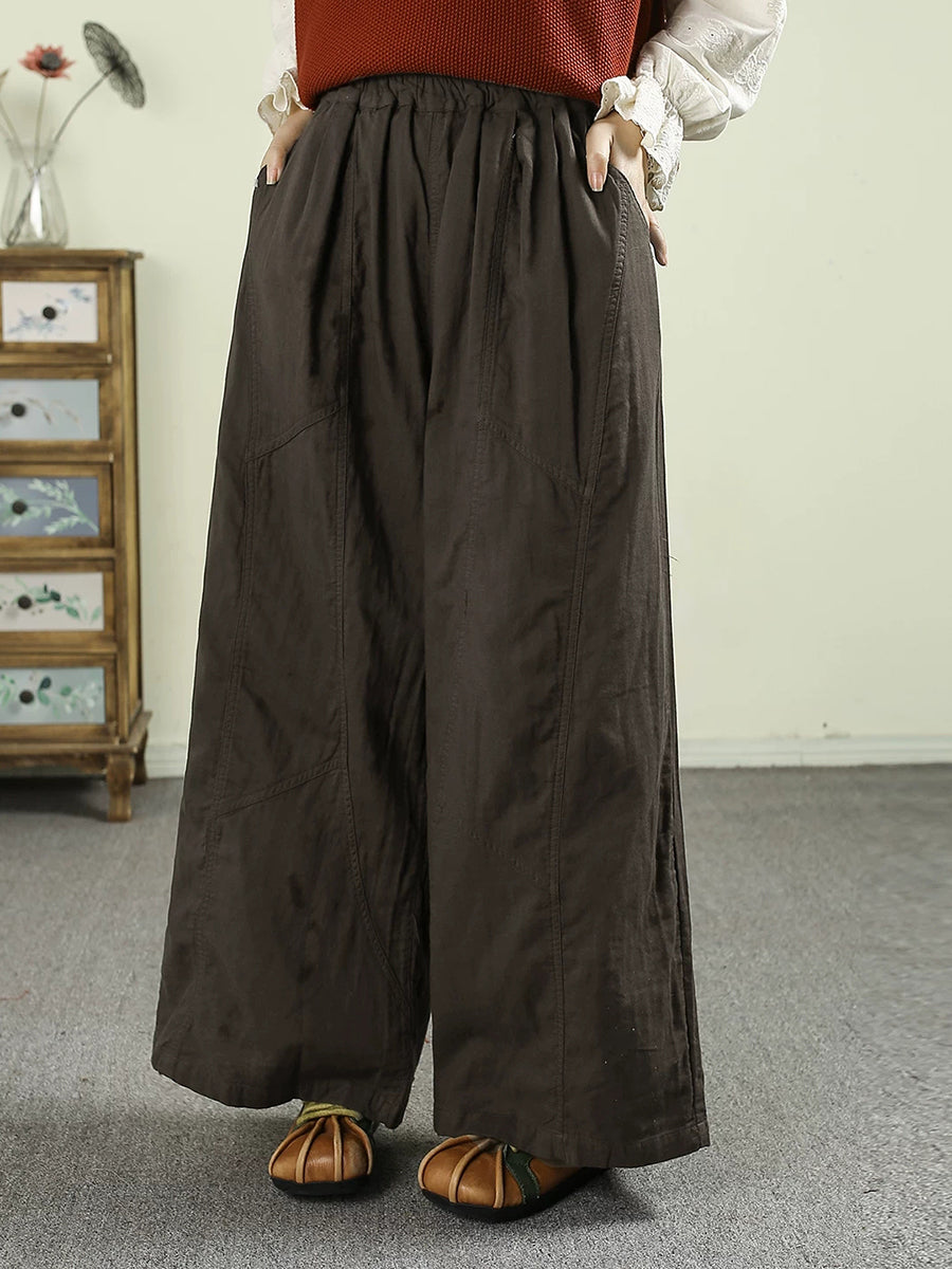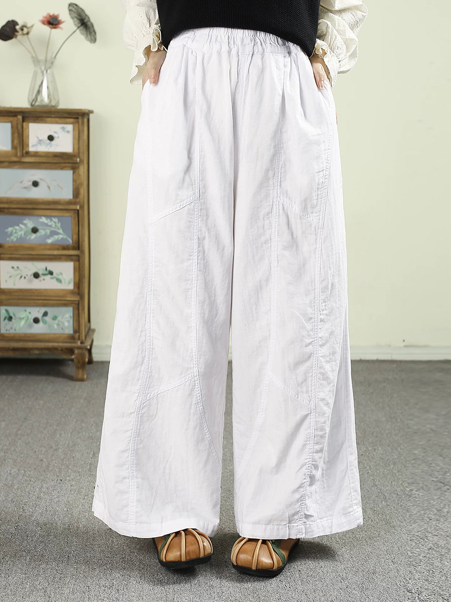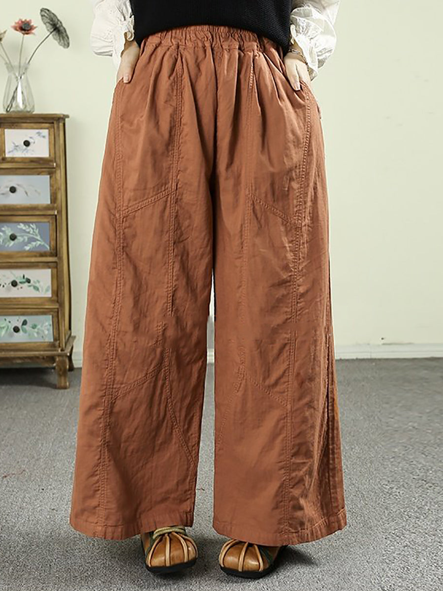 レディース 春 レトロ 100%コットン ワイドレッグパンツ
