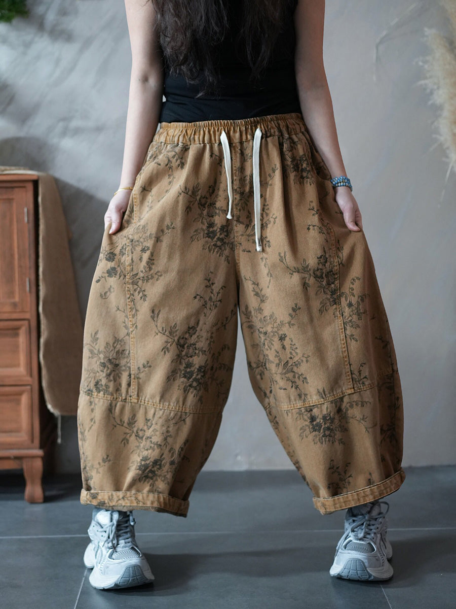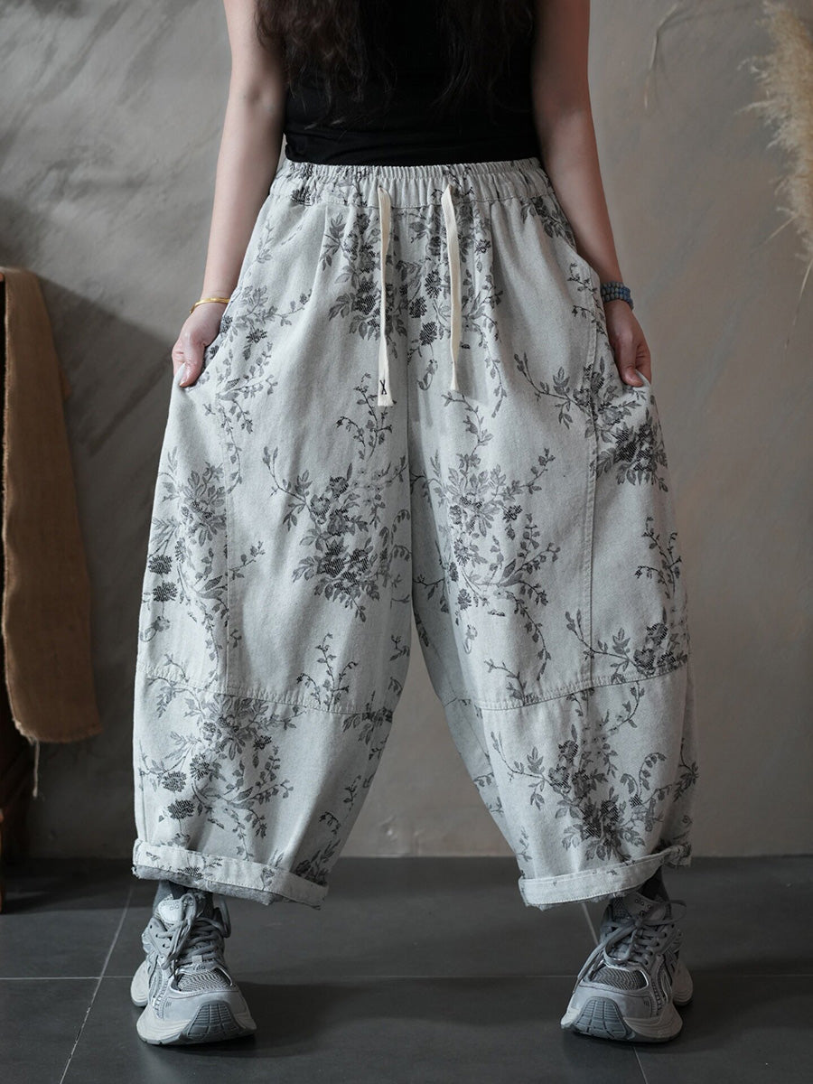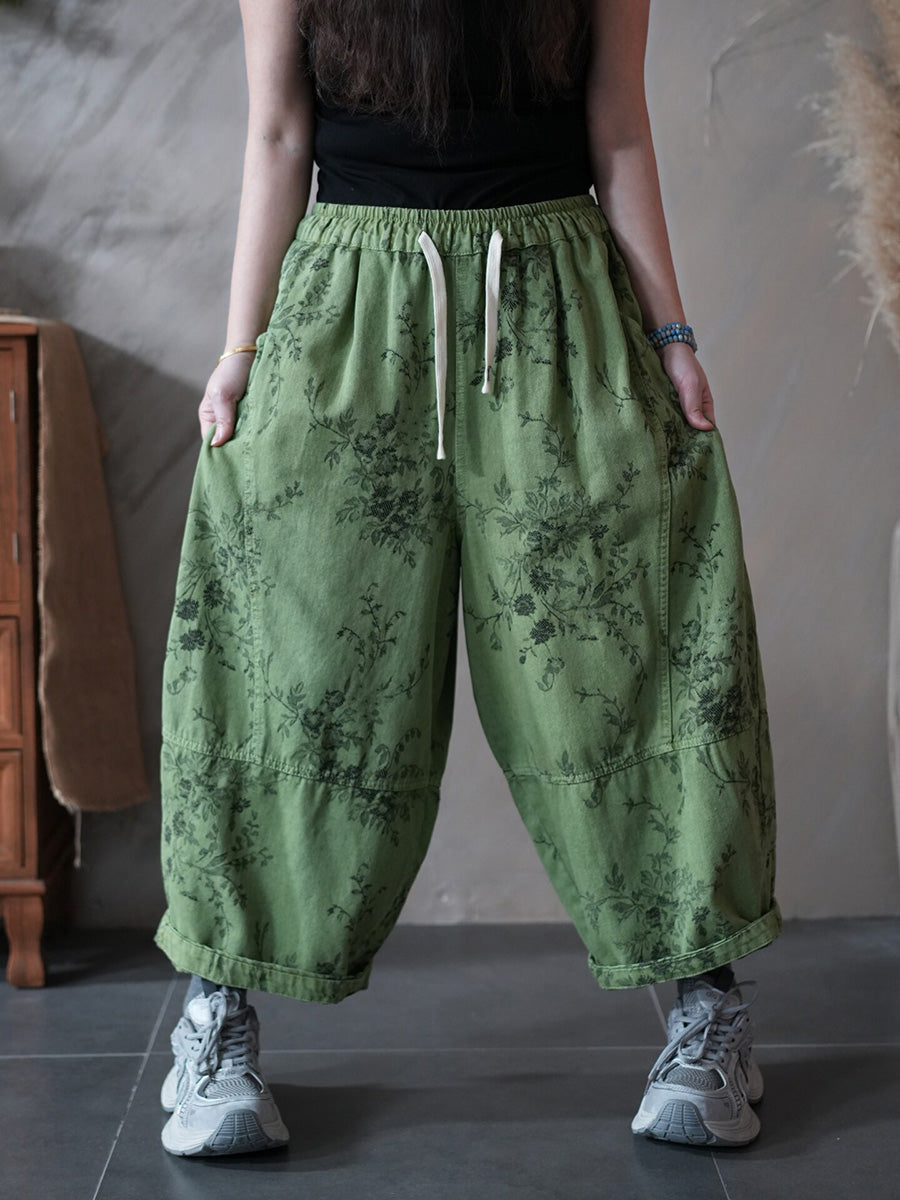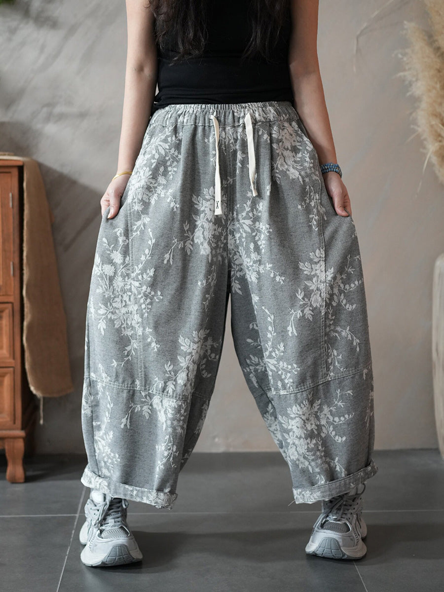 レディース 春 レトロ フラワー ハーレム パンツ