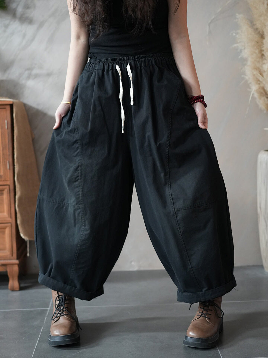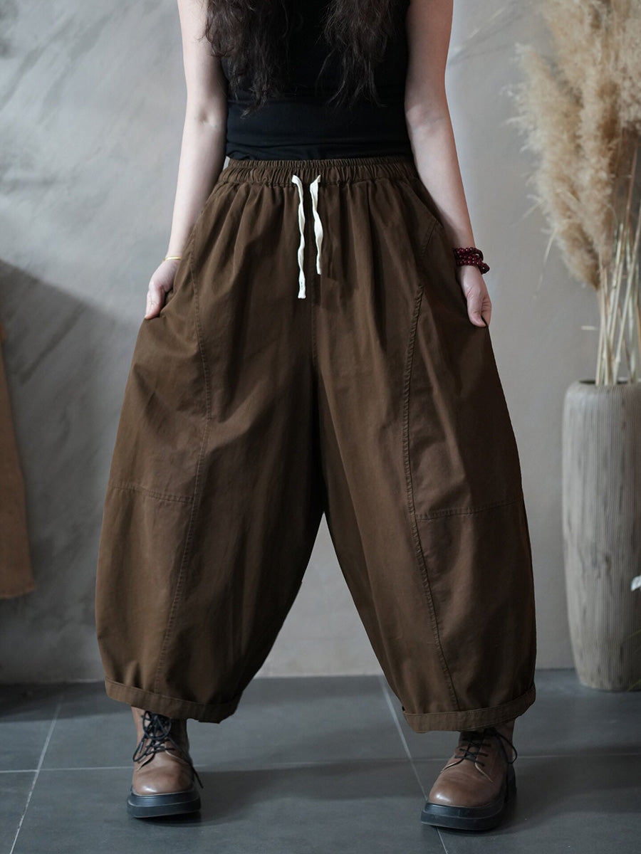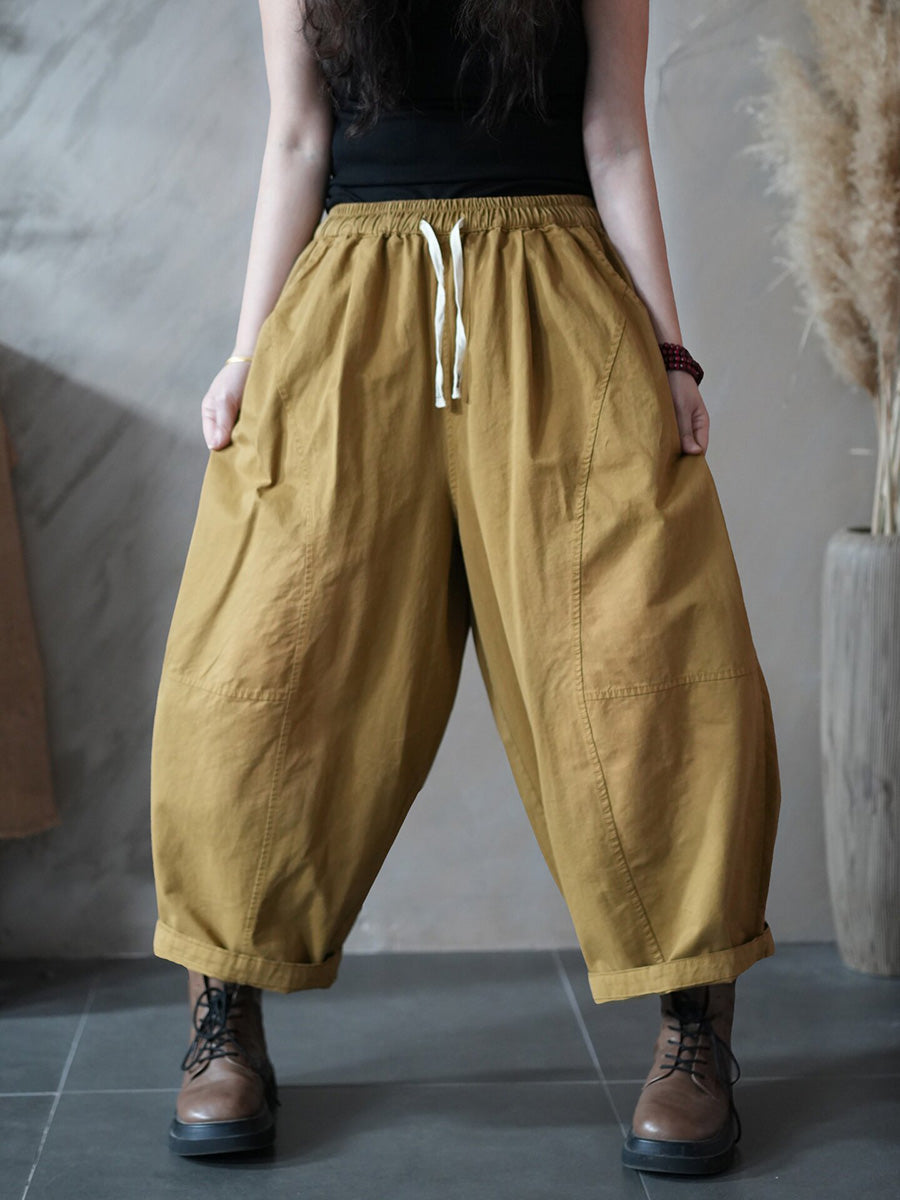 レディース 春 レトロ ピュアカラー ハーレムパンツ