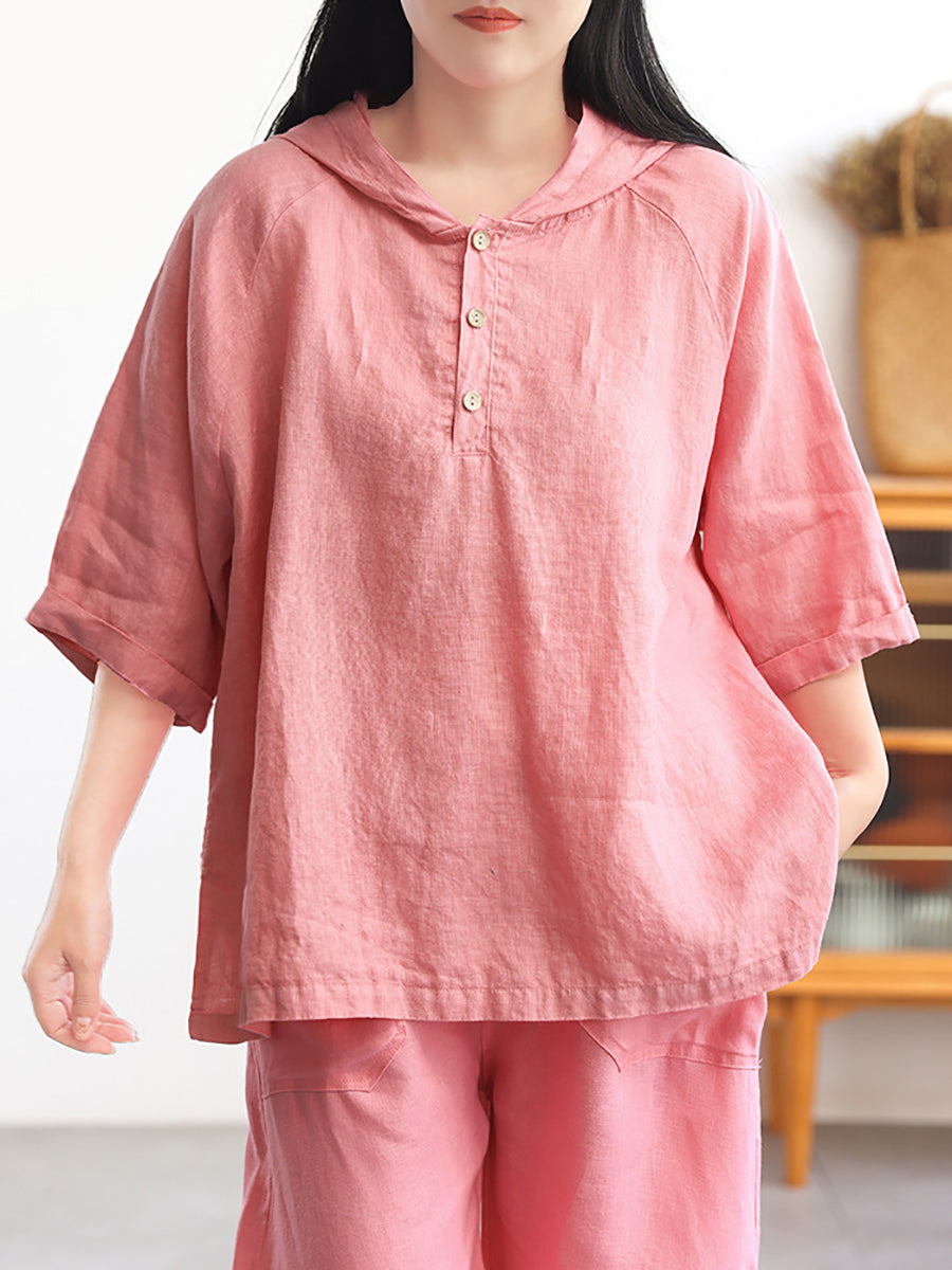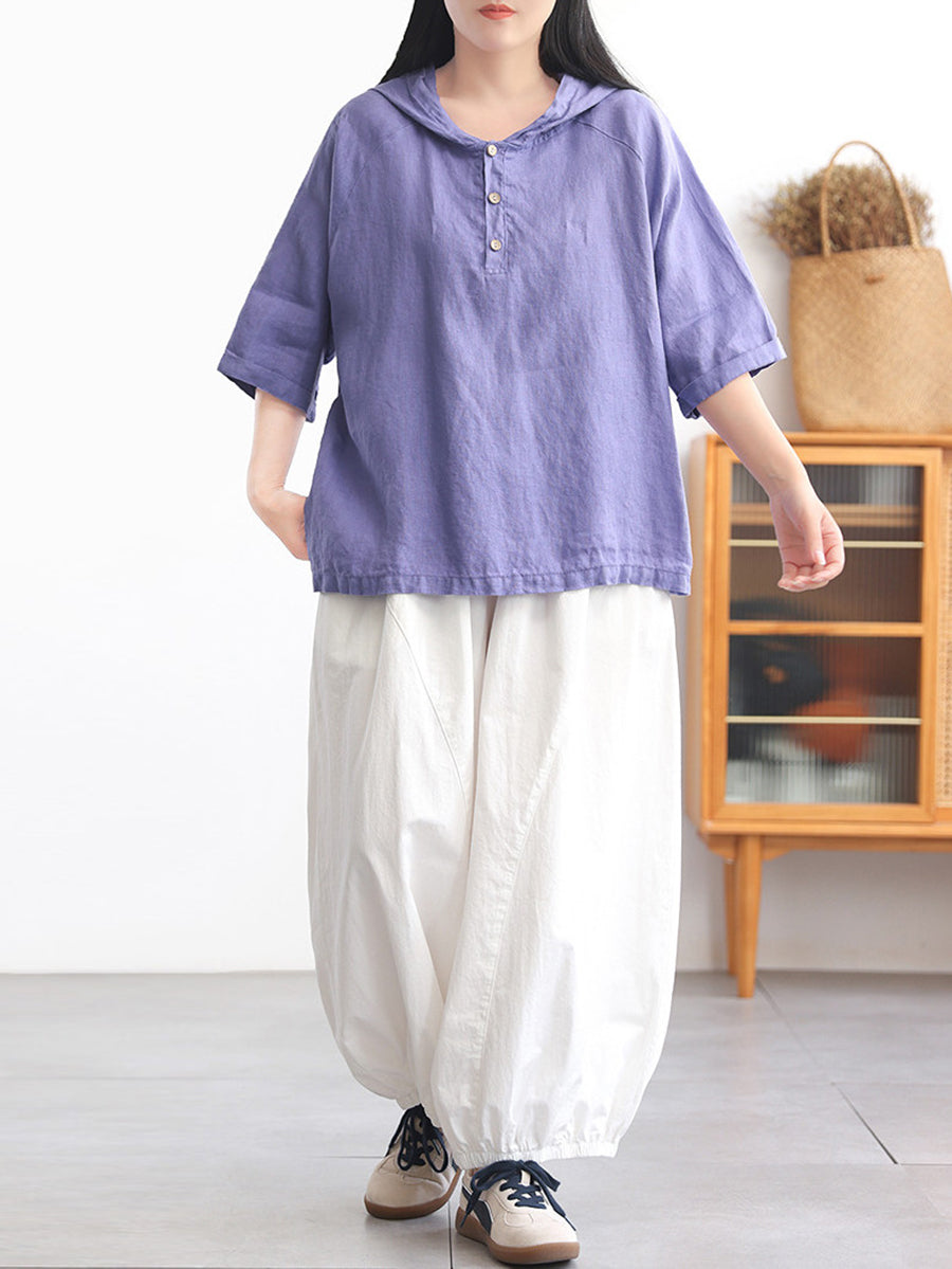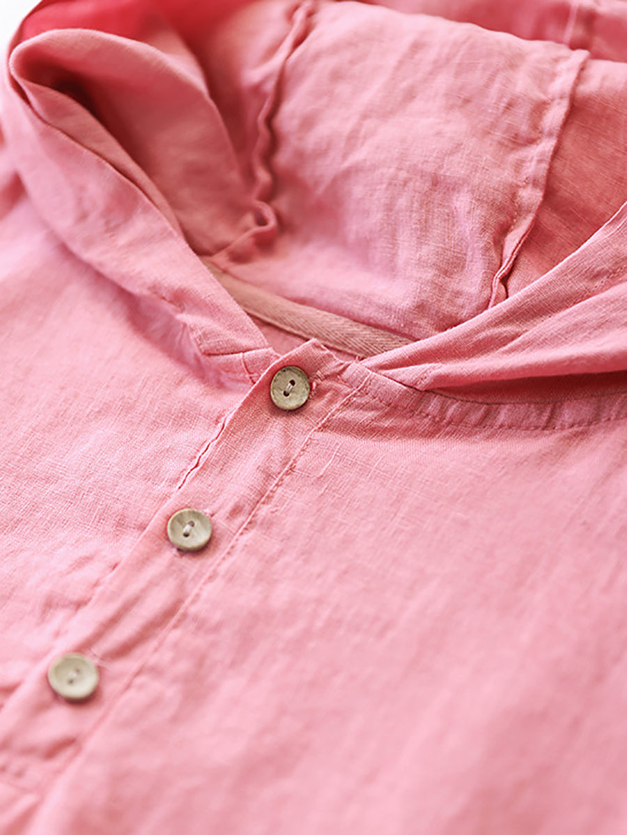 レディース サマー ピュアカラー 100%リネン パーカー