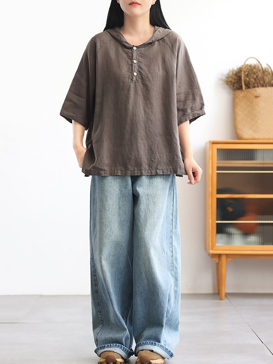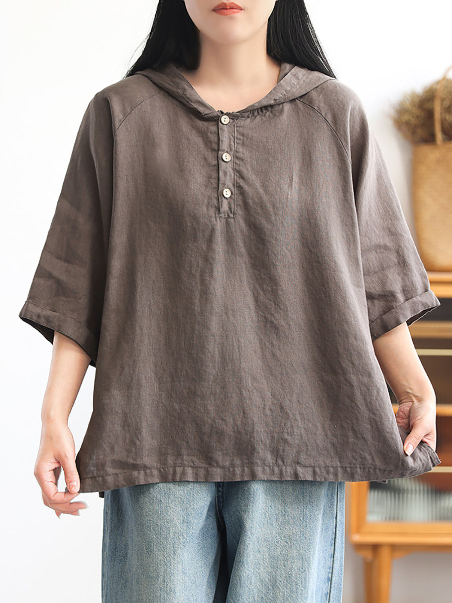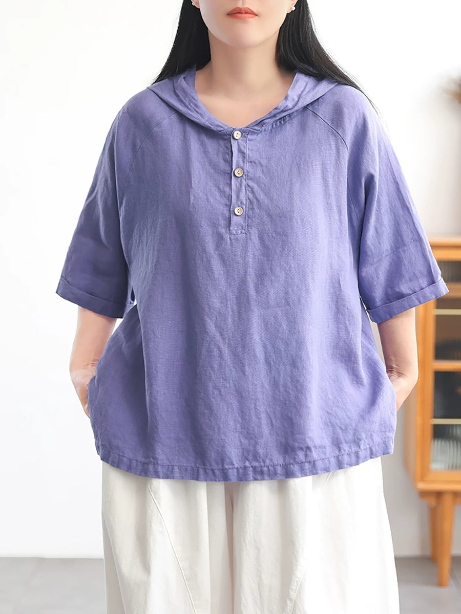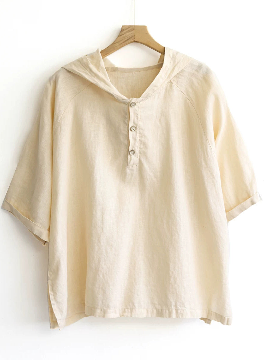 レディース サマー ピュアカラー 100%リネン パーカー