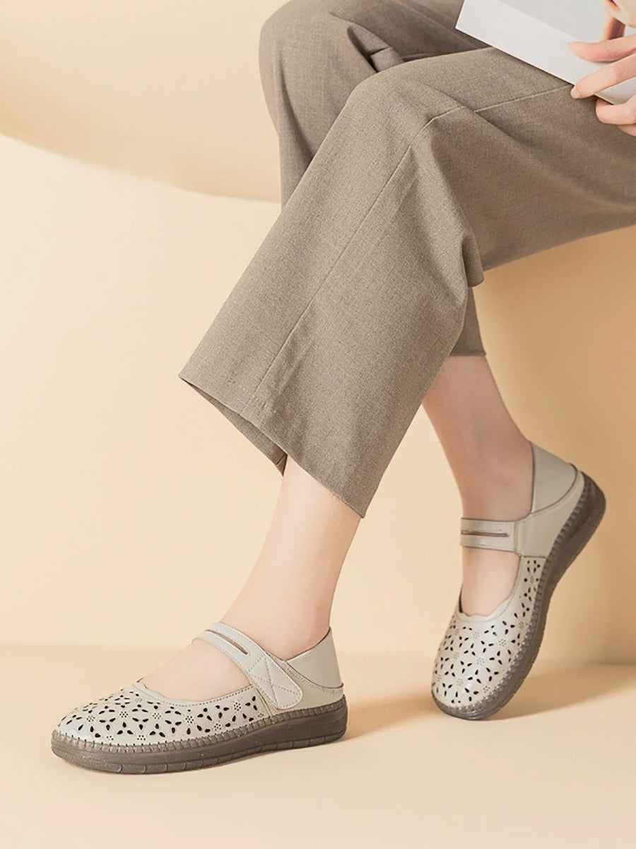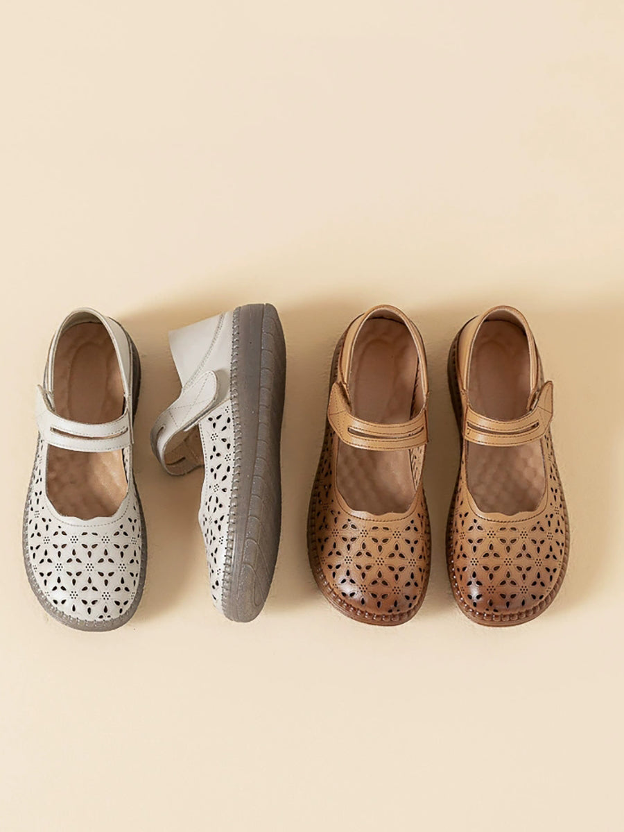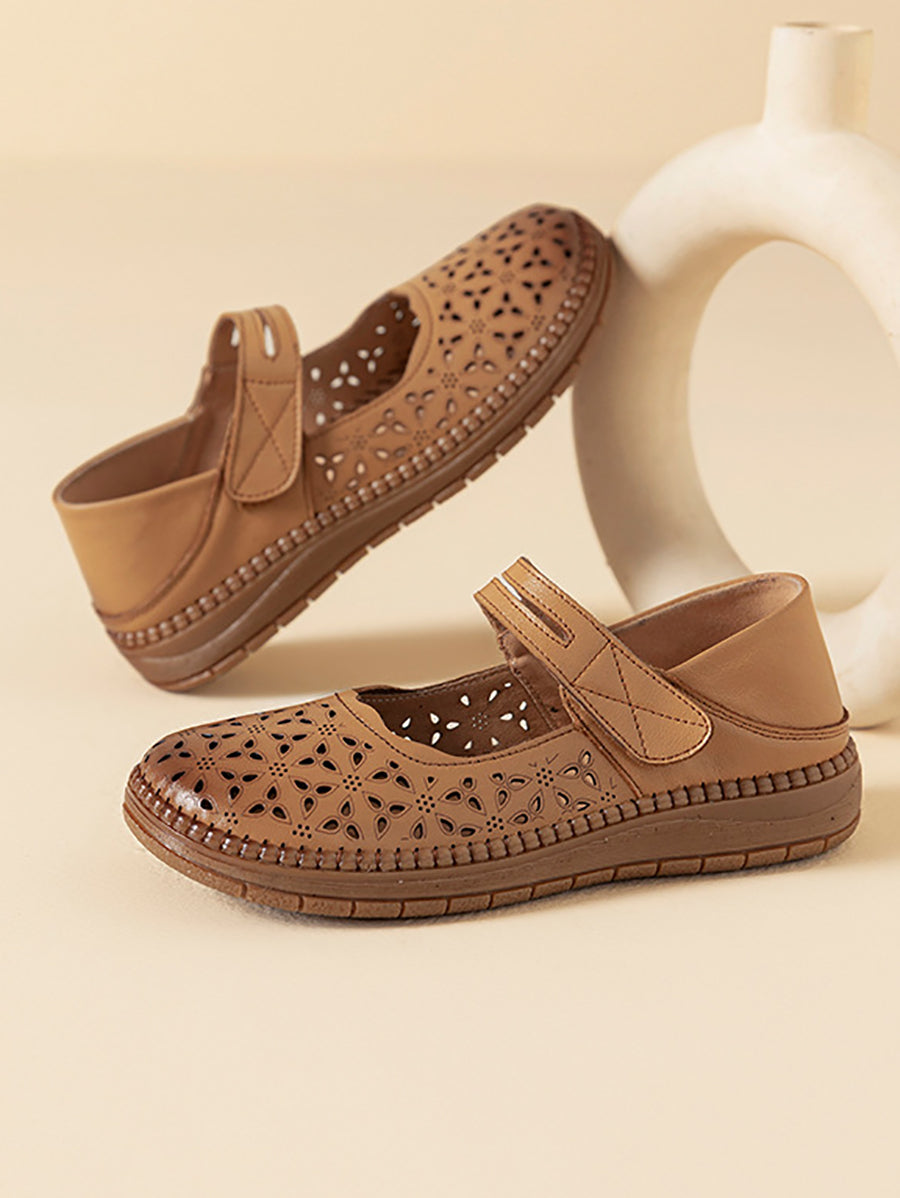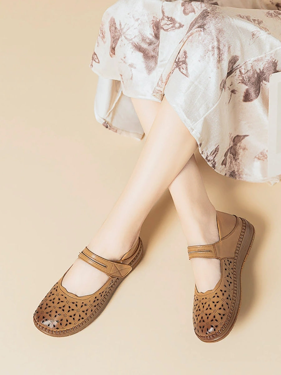 レディース ヴィンテージ 本革 中空フラットシューズ