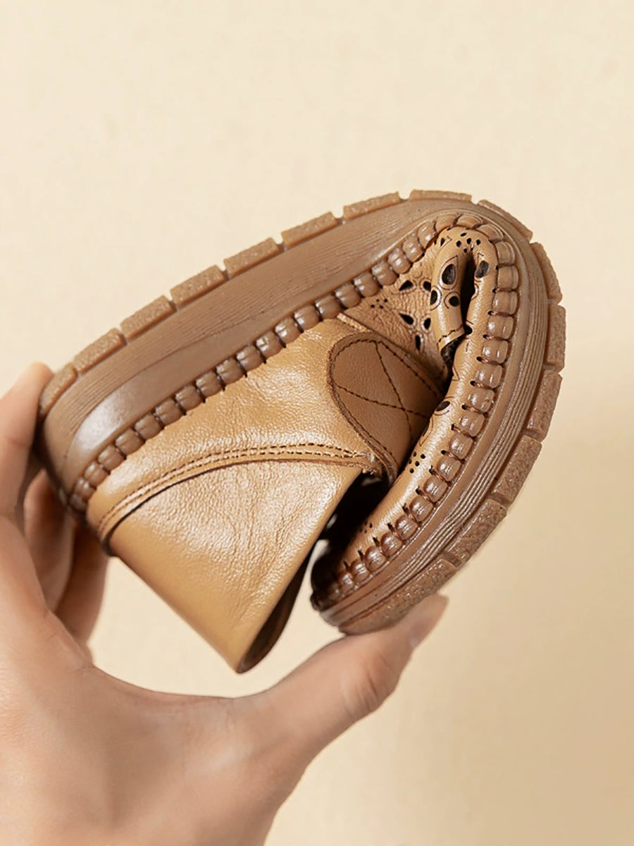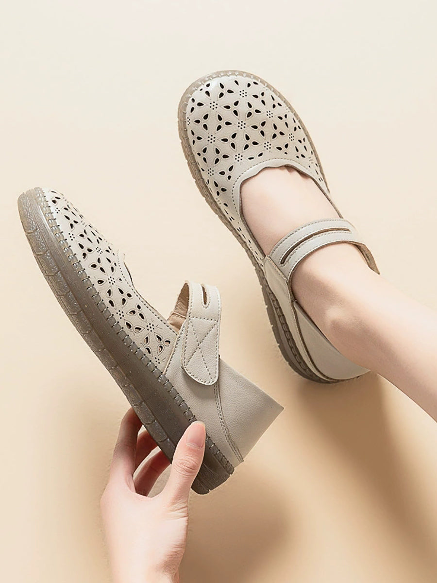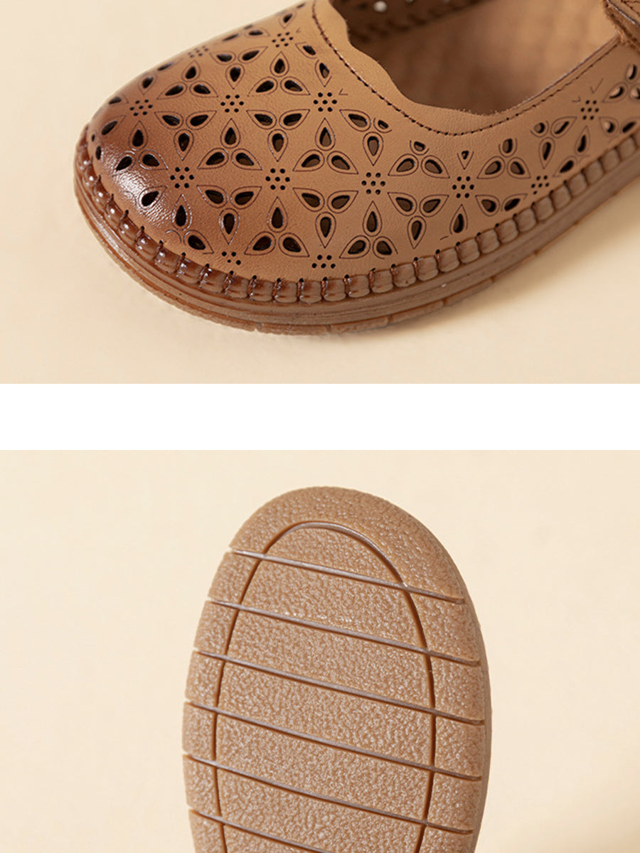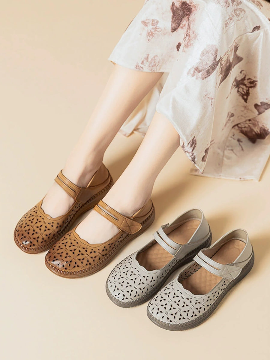 レディース ヴィンテージ 本革 中空フラットシューズ