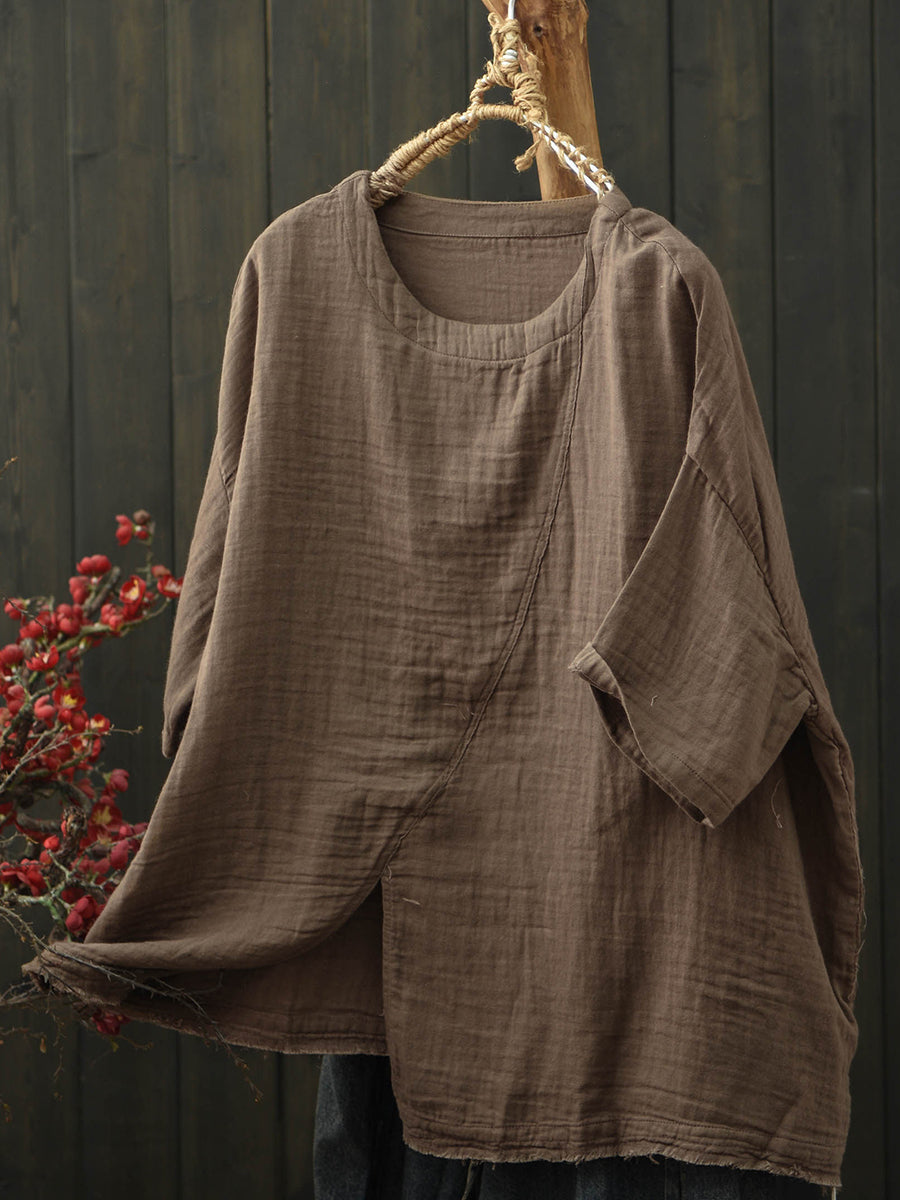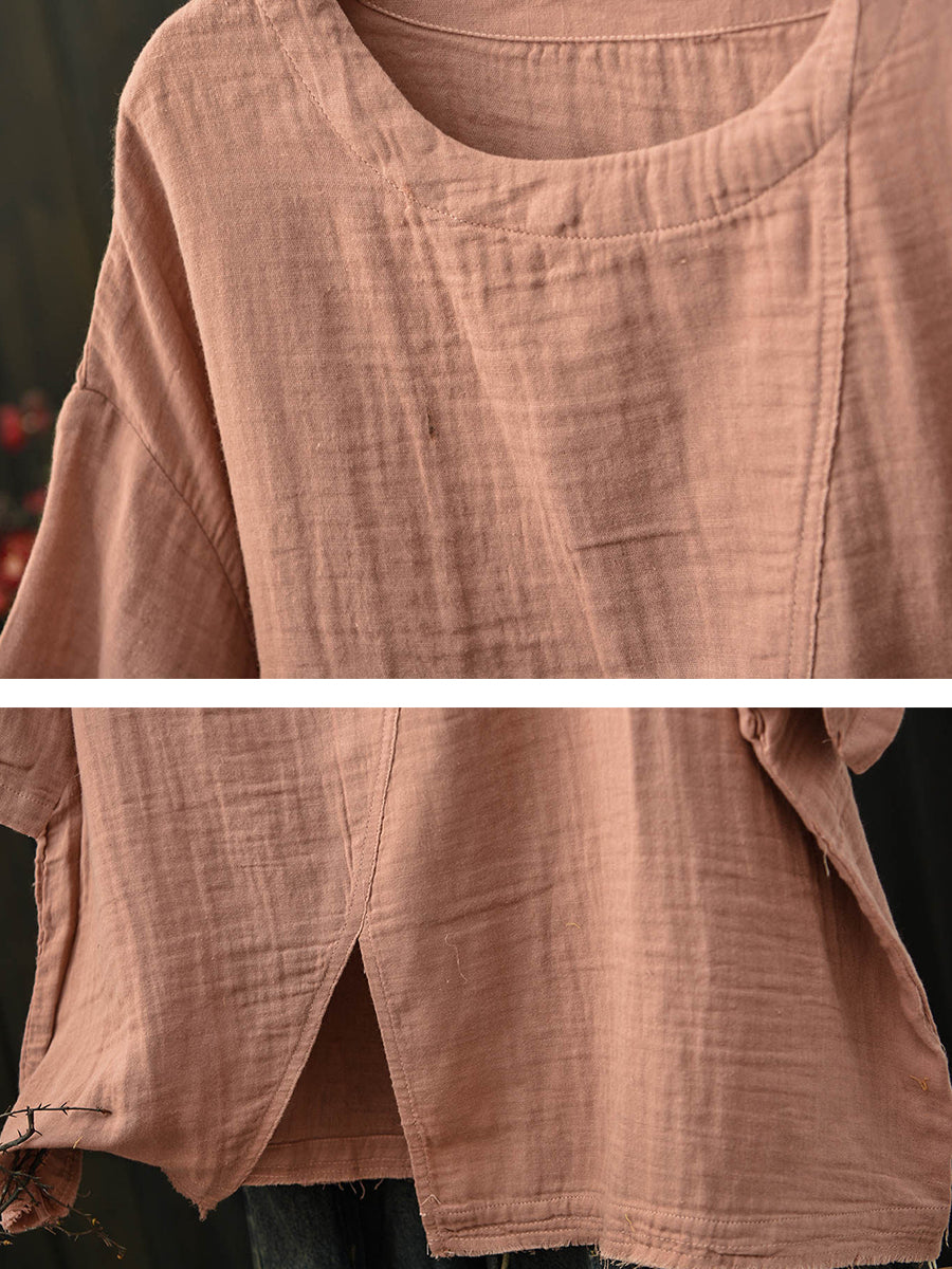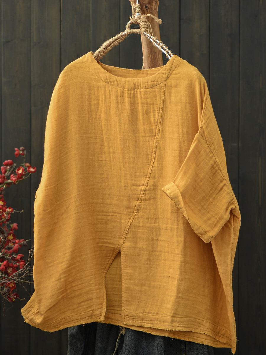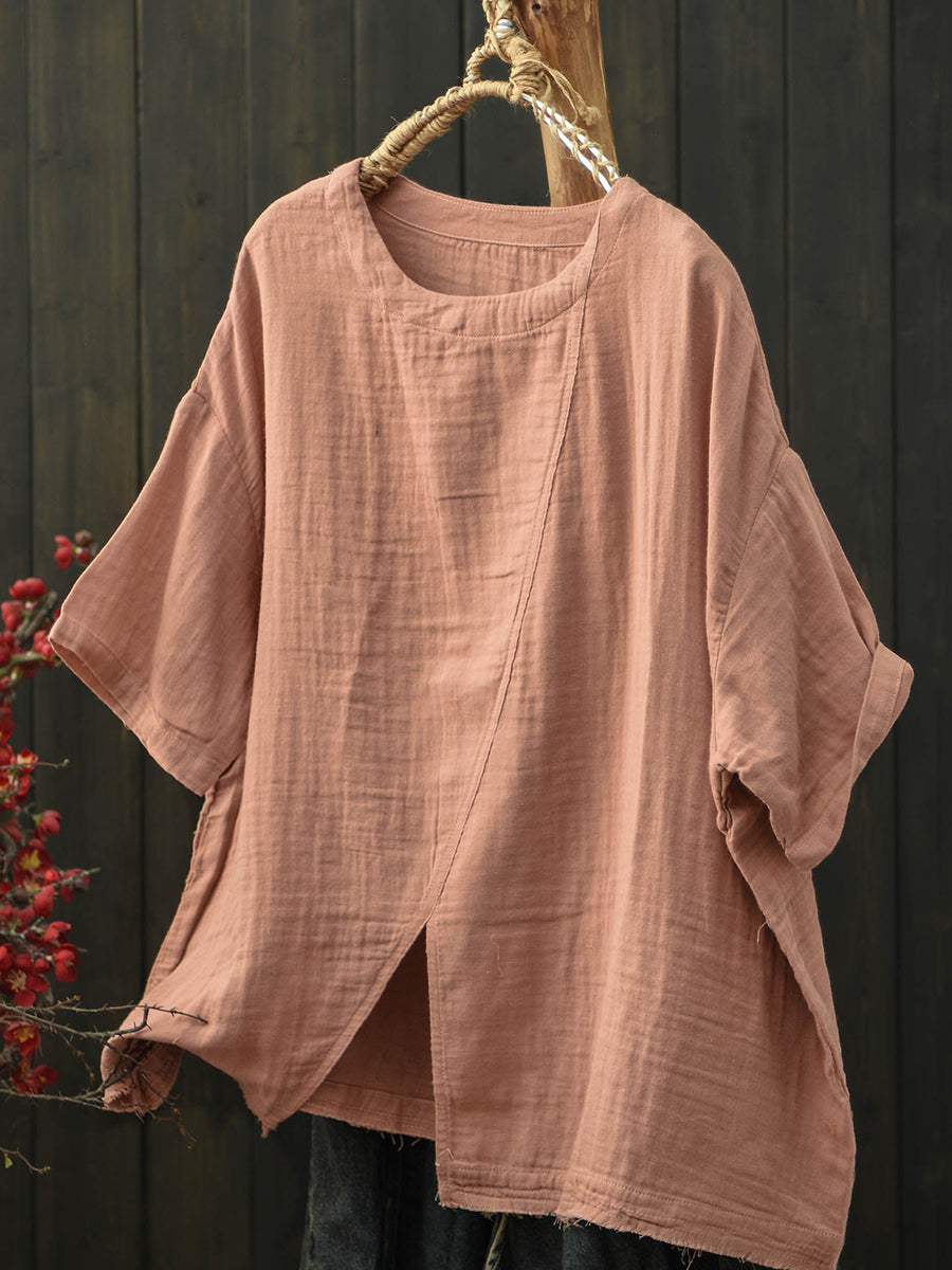 レディース 夏用 レトロ スリットヘム コットンTシャツ
