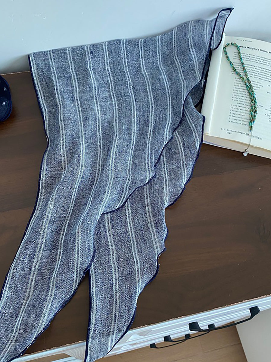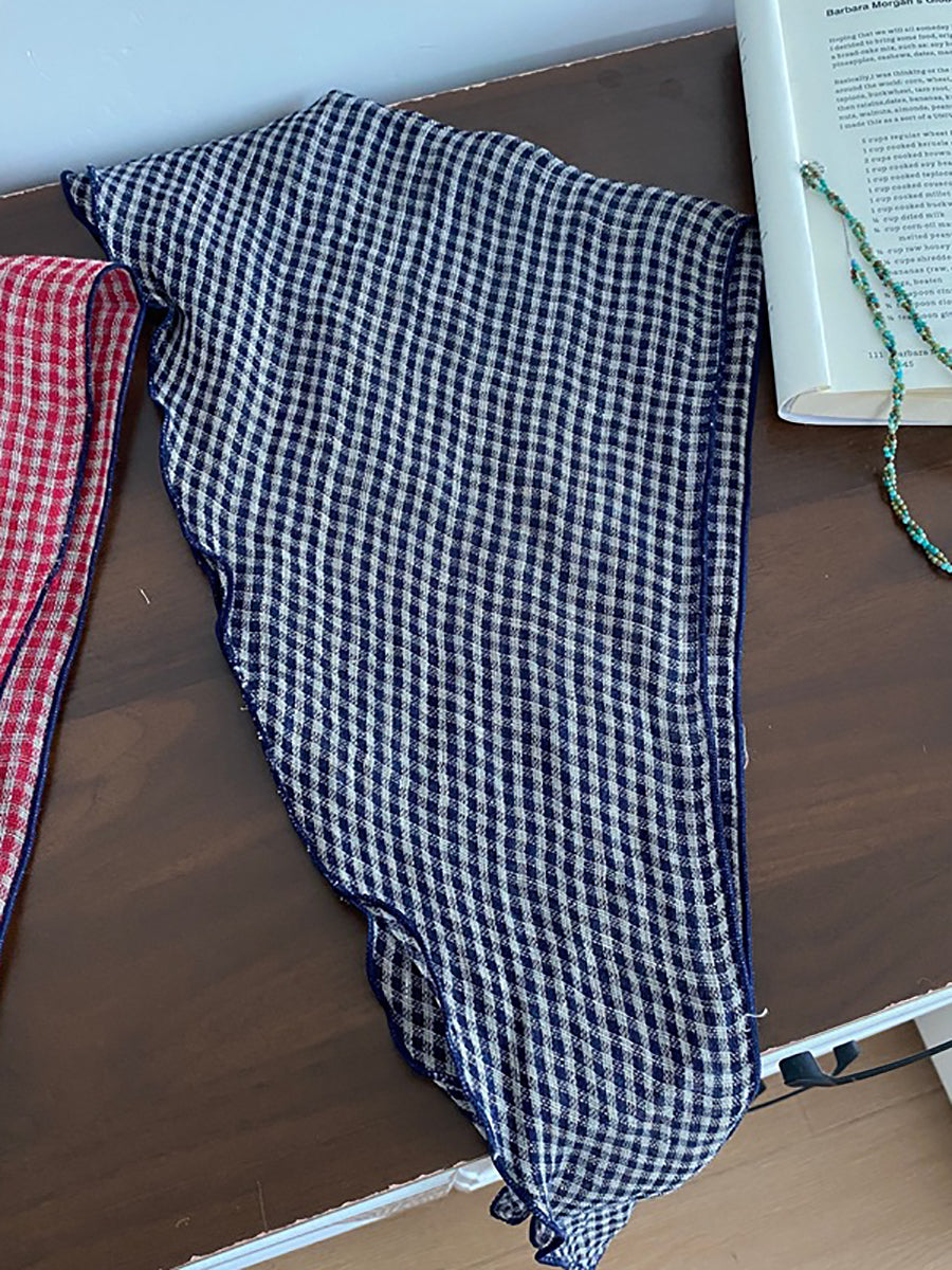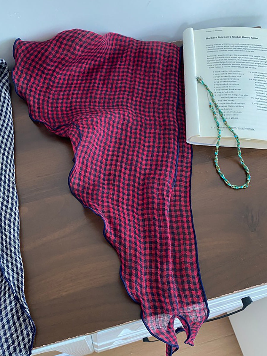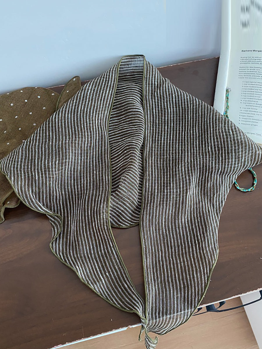アーティスティックなソフトチェック柄ストライプドットトライアングルスカーフ