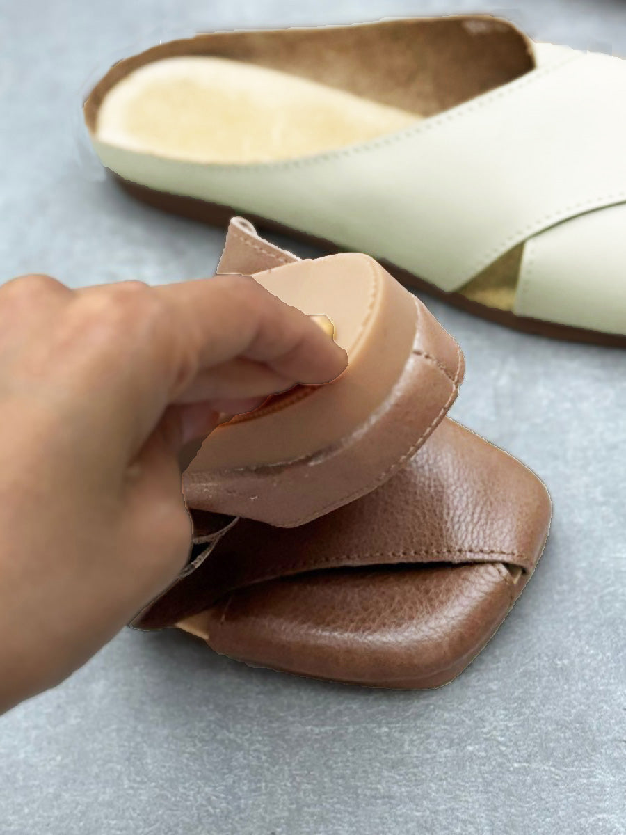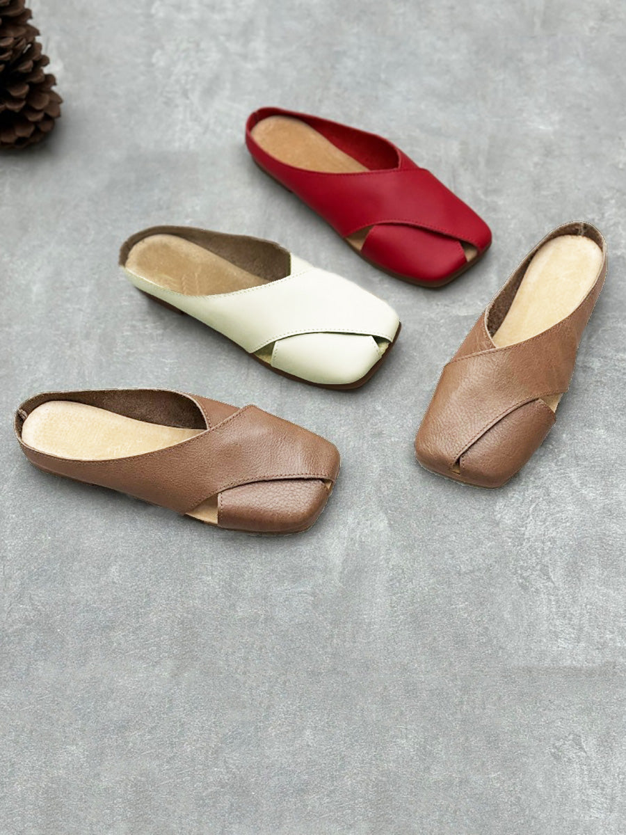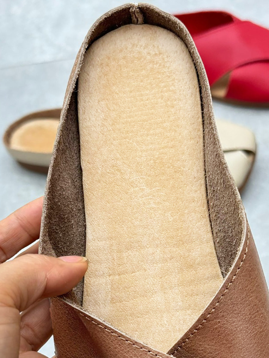 Women Summer Solid Leather Spliced Slippers