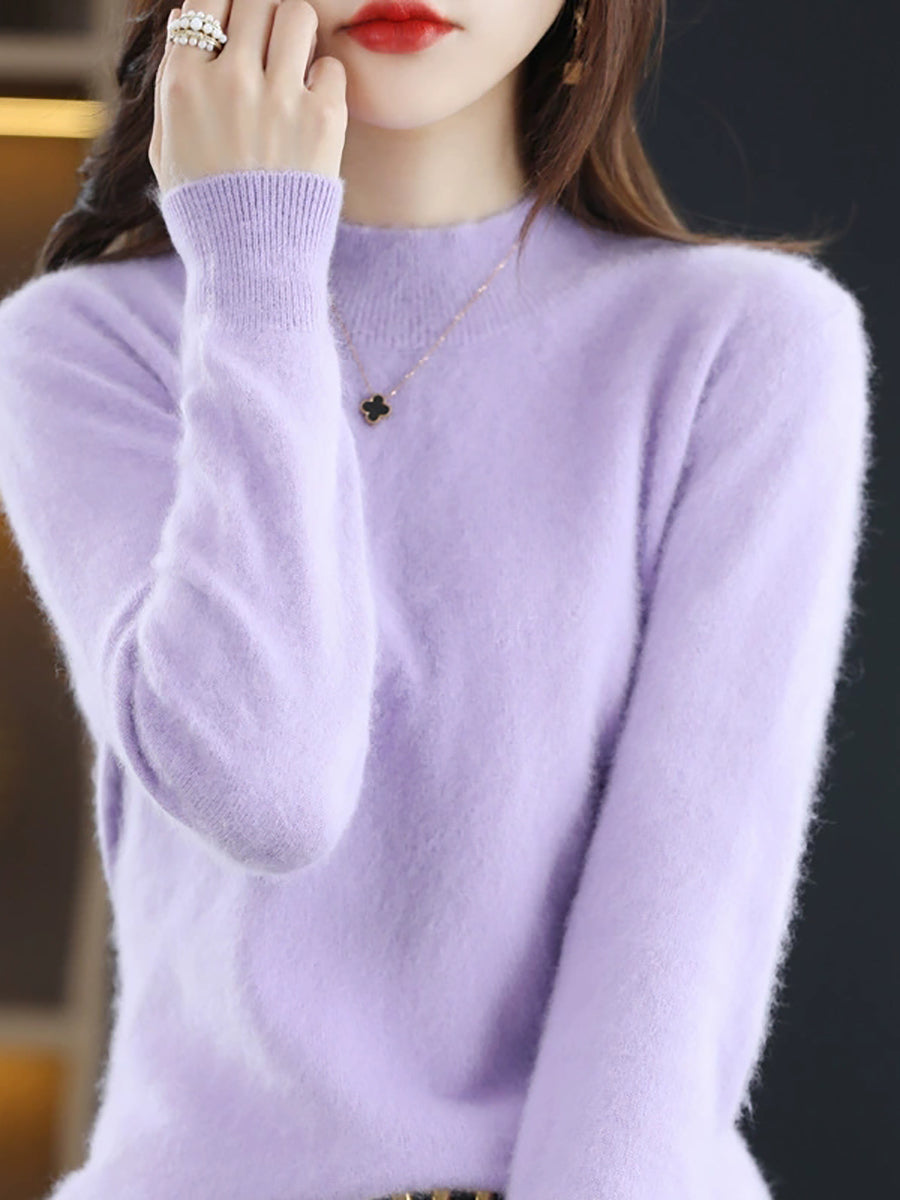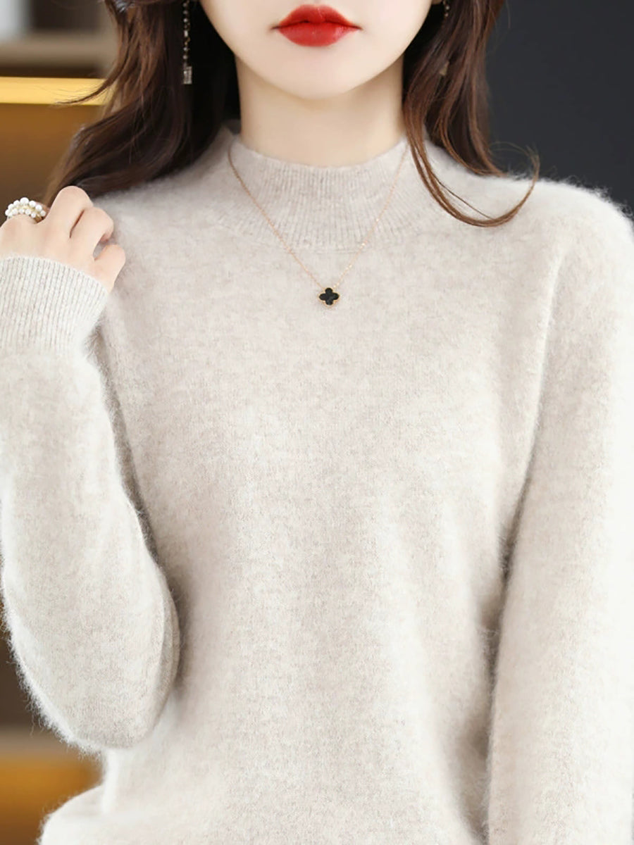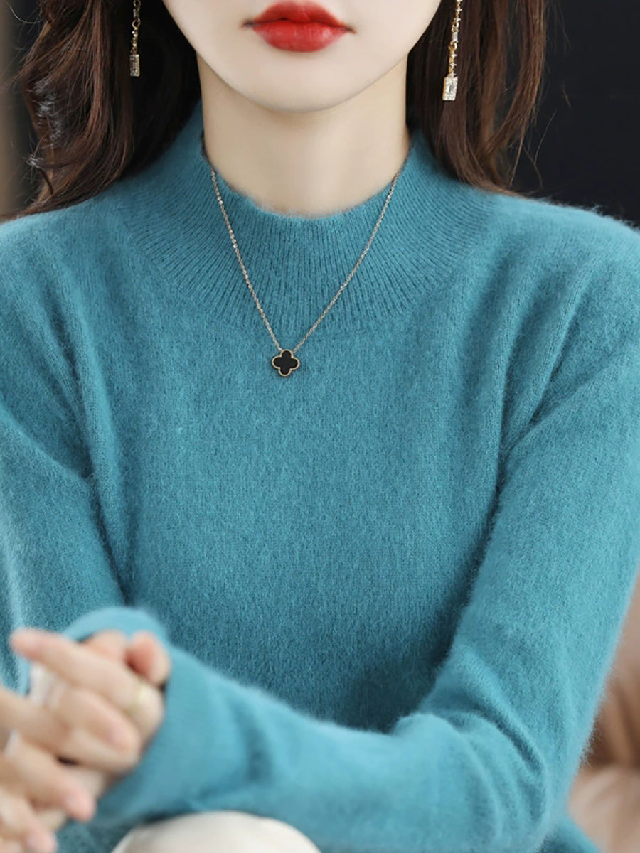 レディースカジュアル春ピュアカラーハーフタートルネックセーター