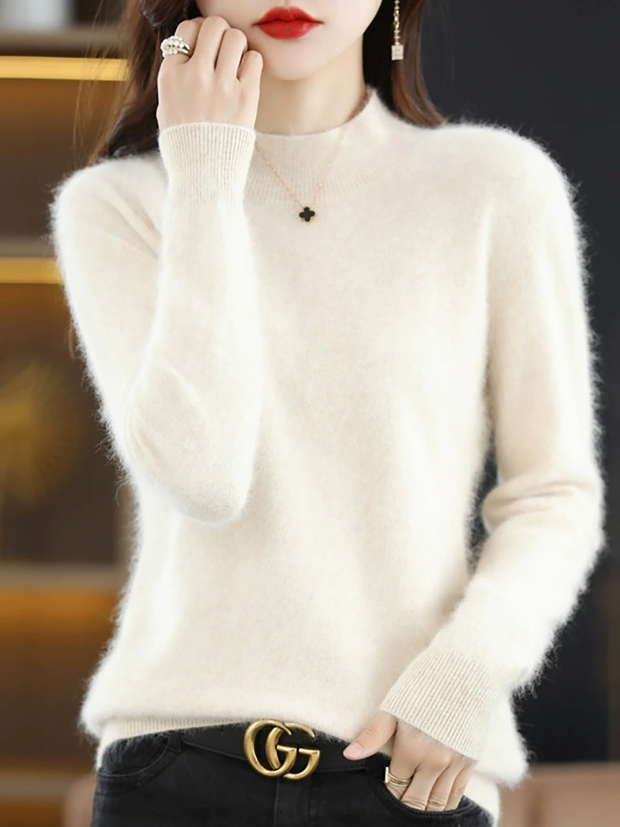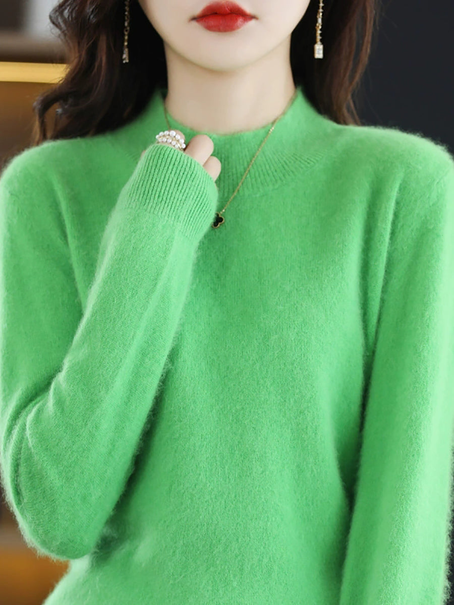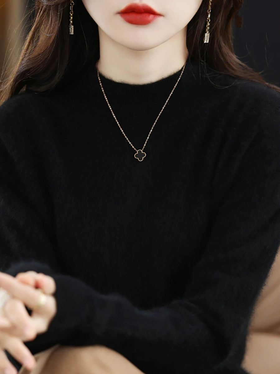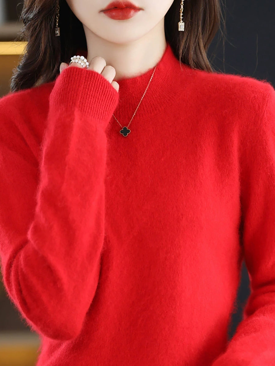 レディースカジュアル春ピュアカラーハーフタートルネックセーター