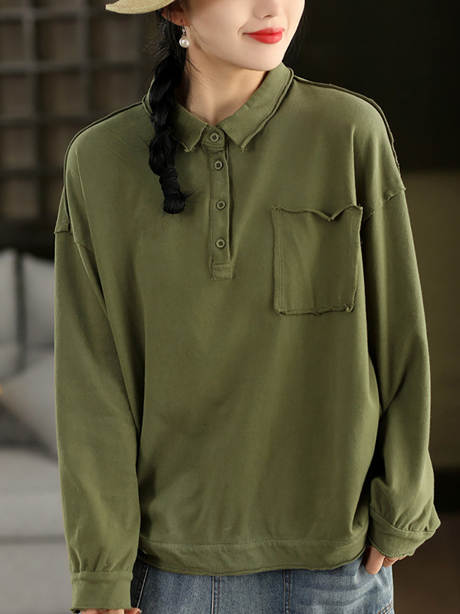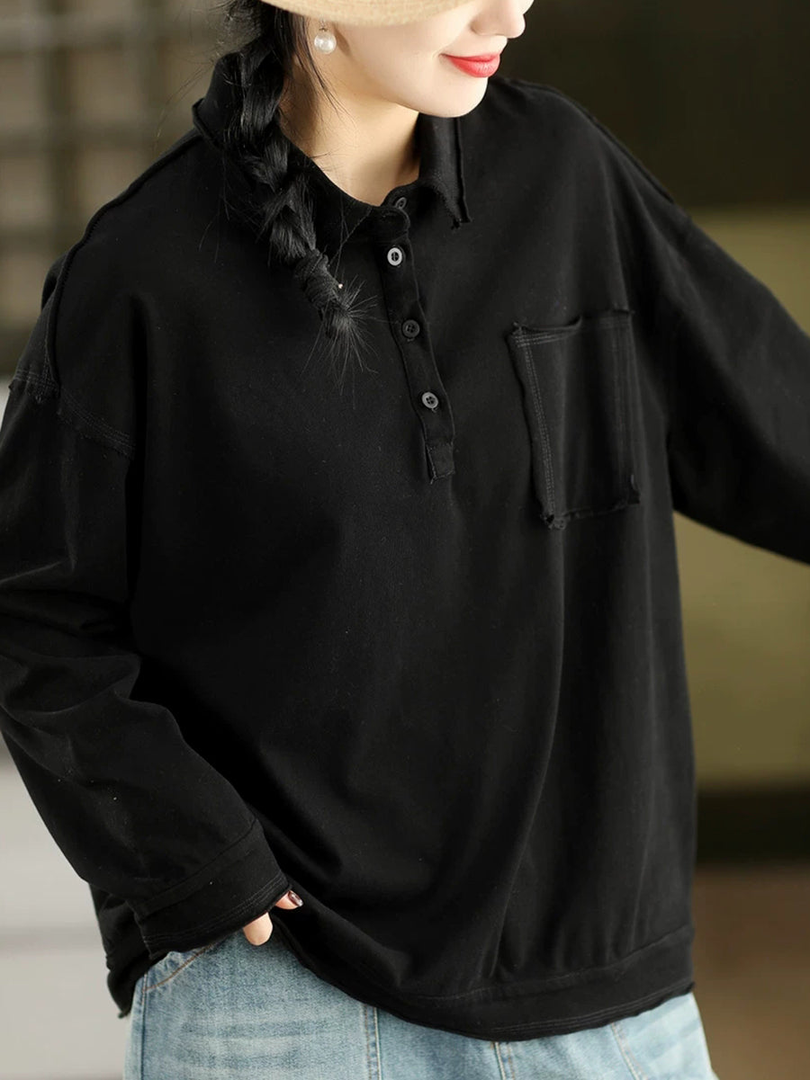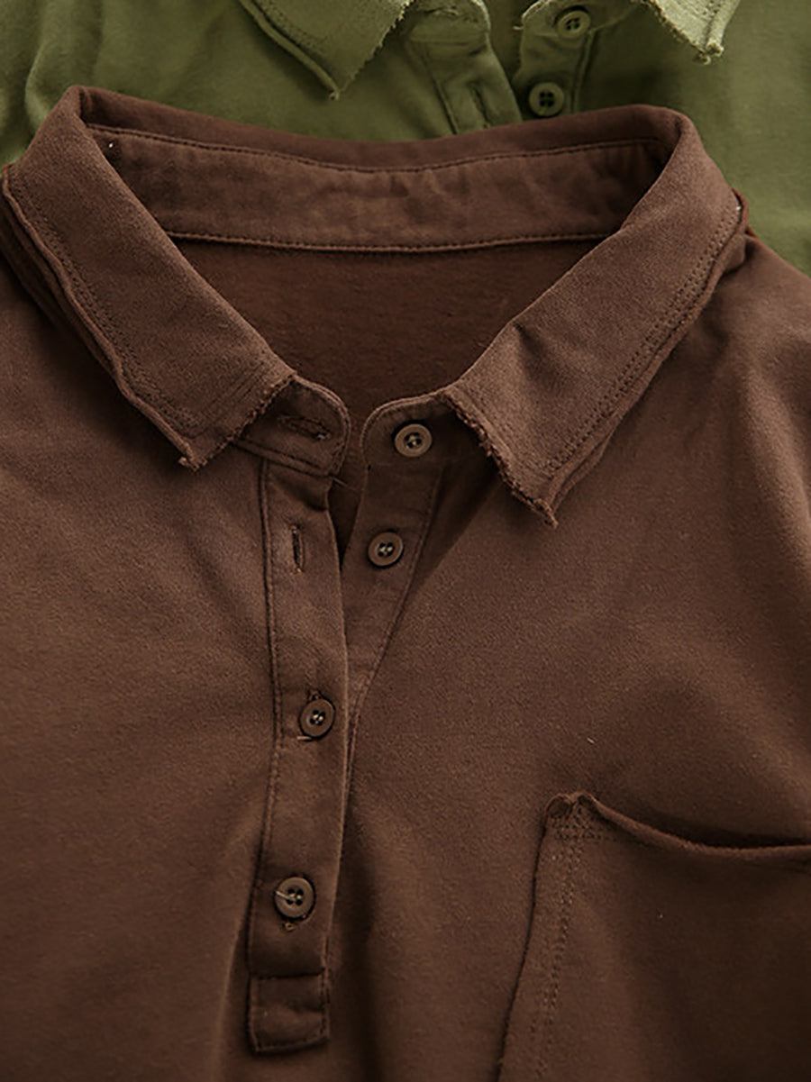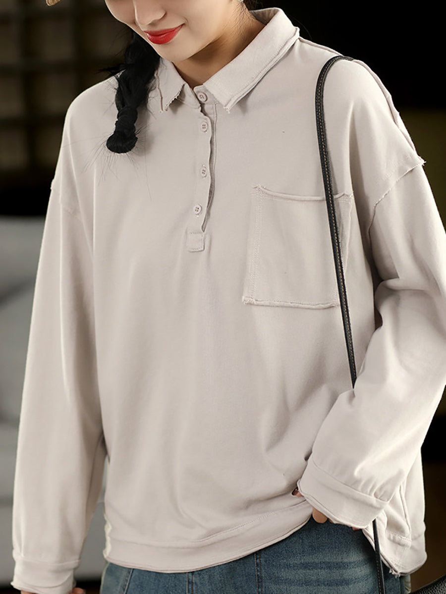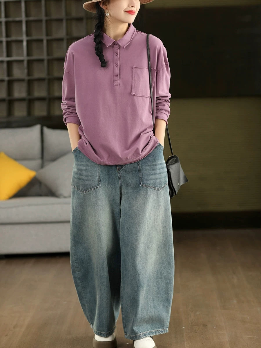 レディース 春 アーティスティック ピュアカラー コットン ターンダウンカラー ブラウス