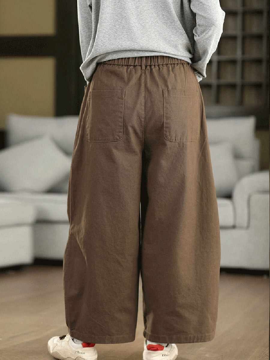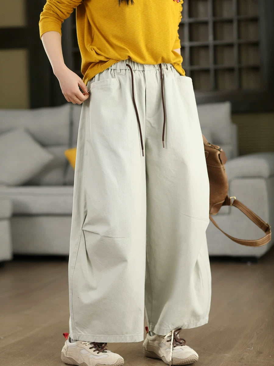 レディース 春 カジュアル ピュアカラー 100%コットン ストレートパンツ