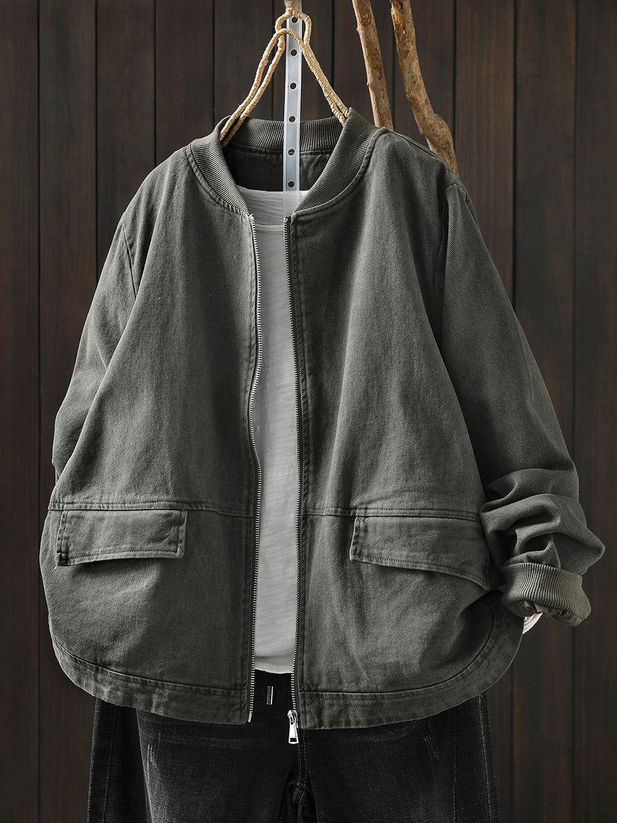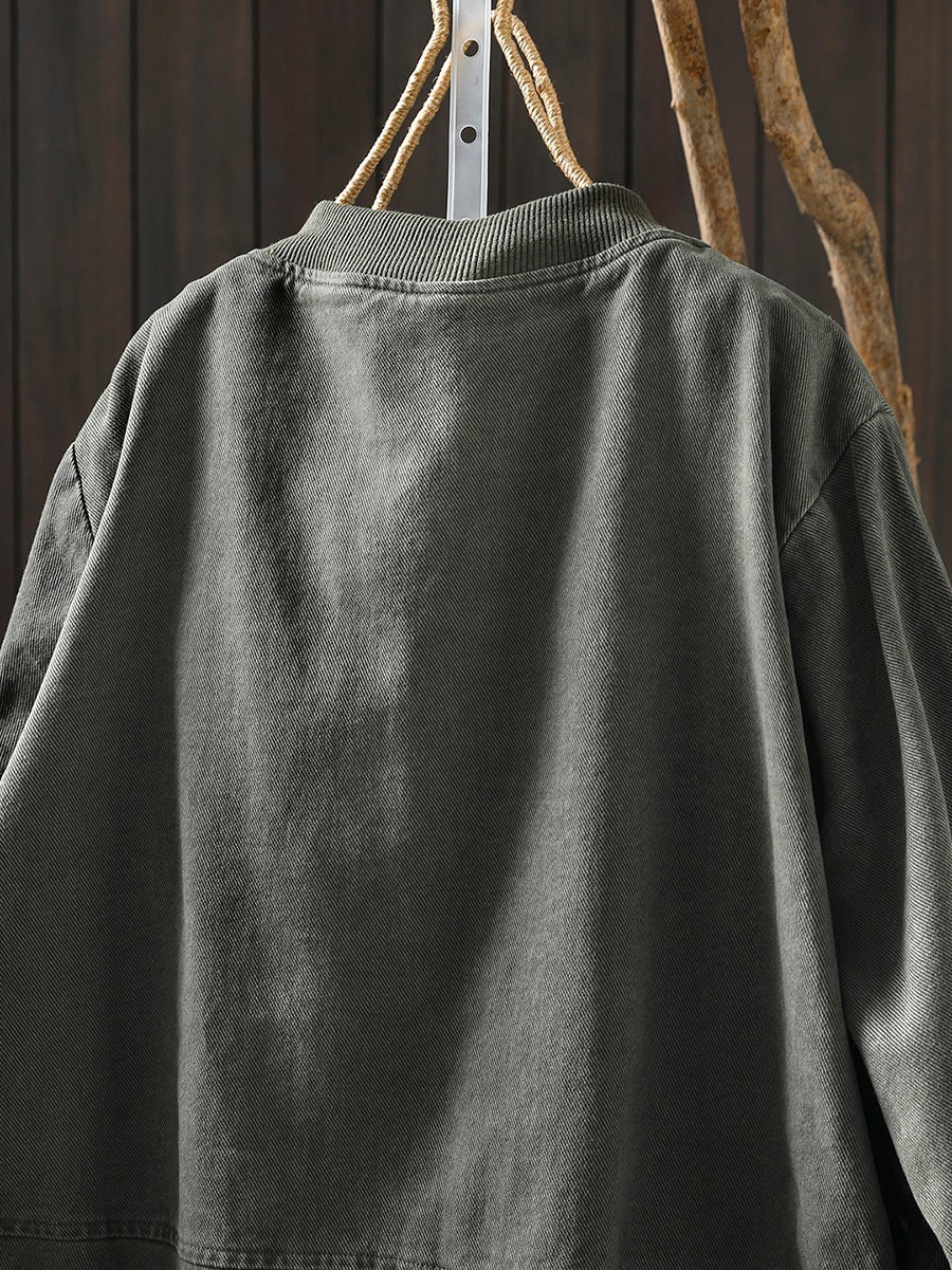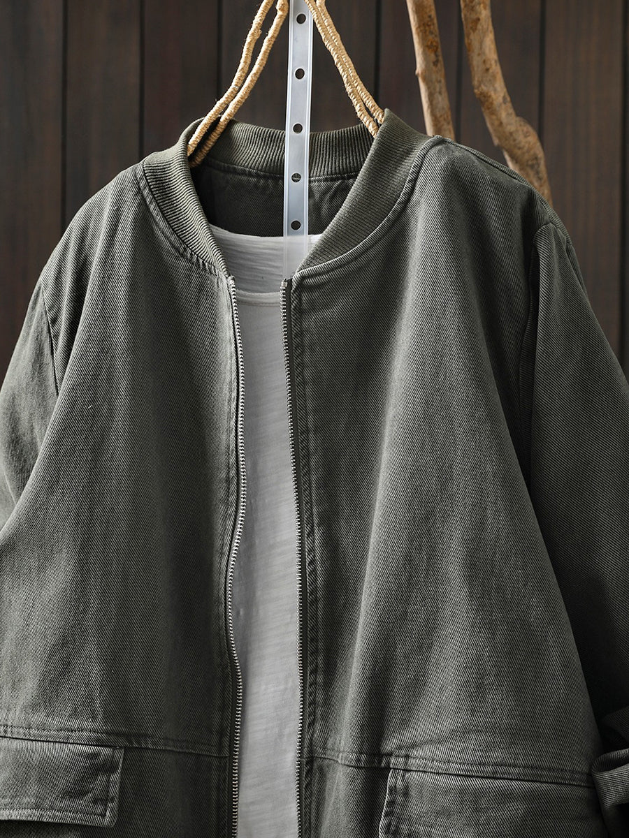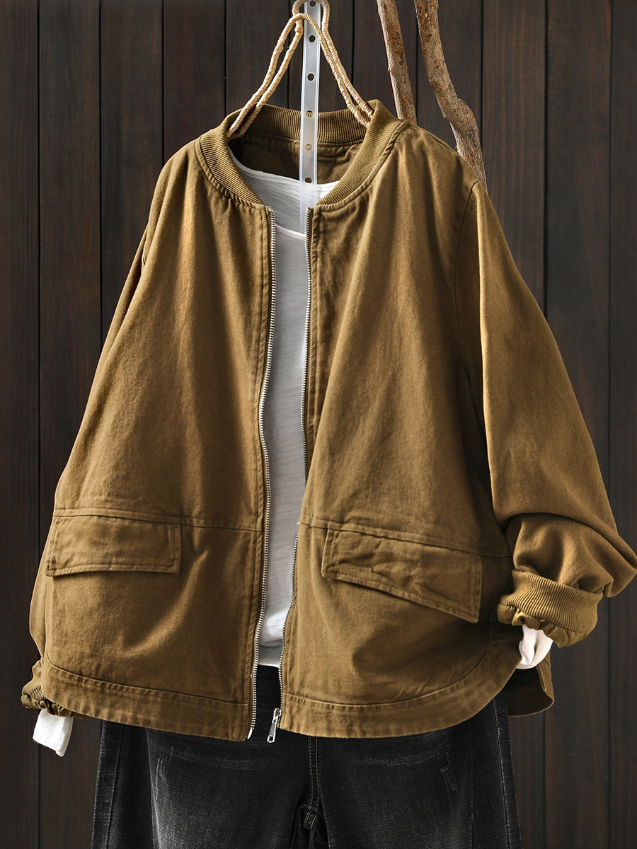 レディース 春 カジュアル 純色 コットン スタンドカラー ジャケット