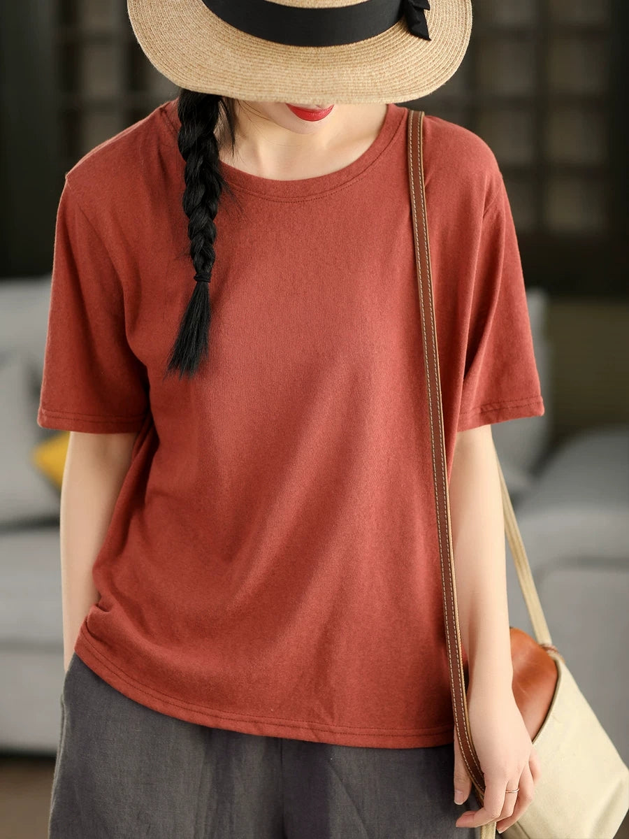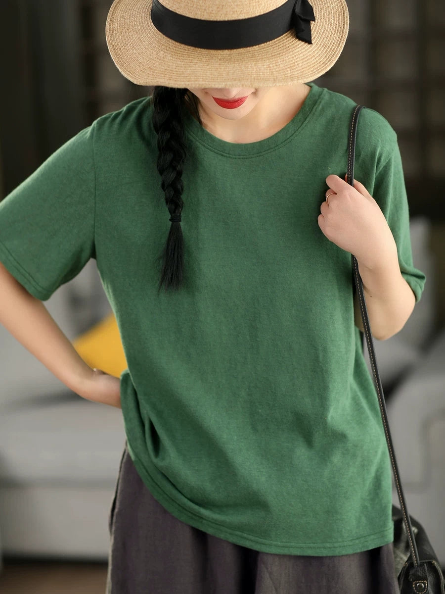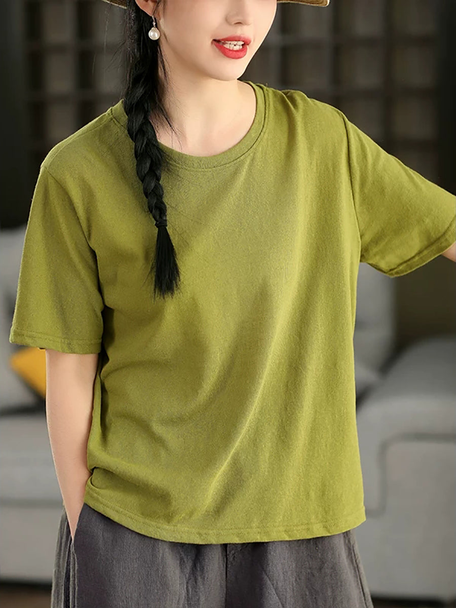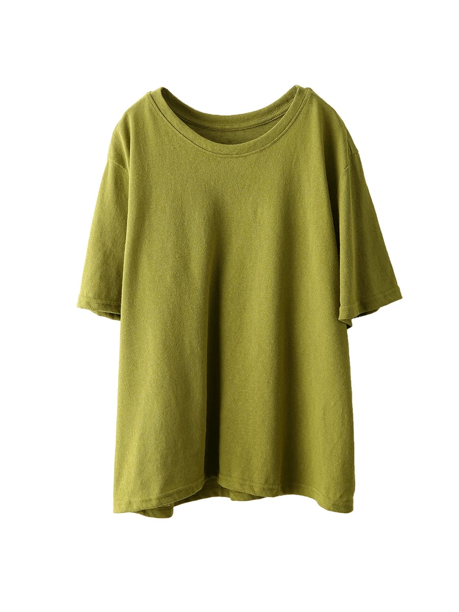 レディース 夏用 カジュアル 無地 クルーネック Tシャツ