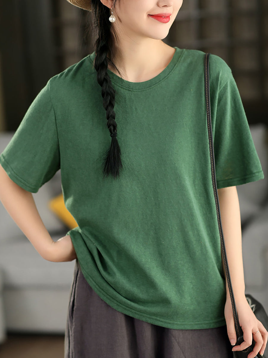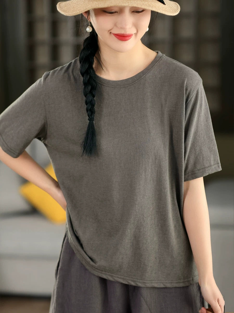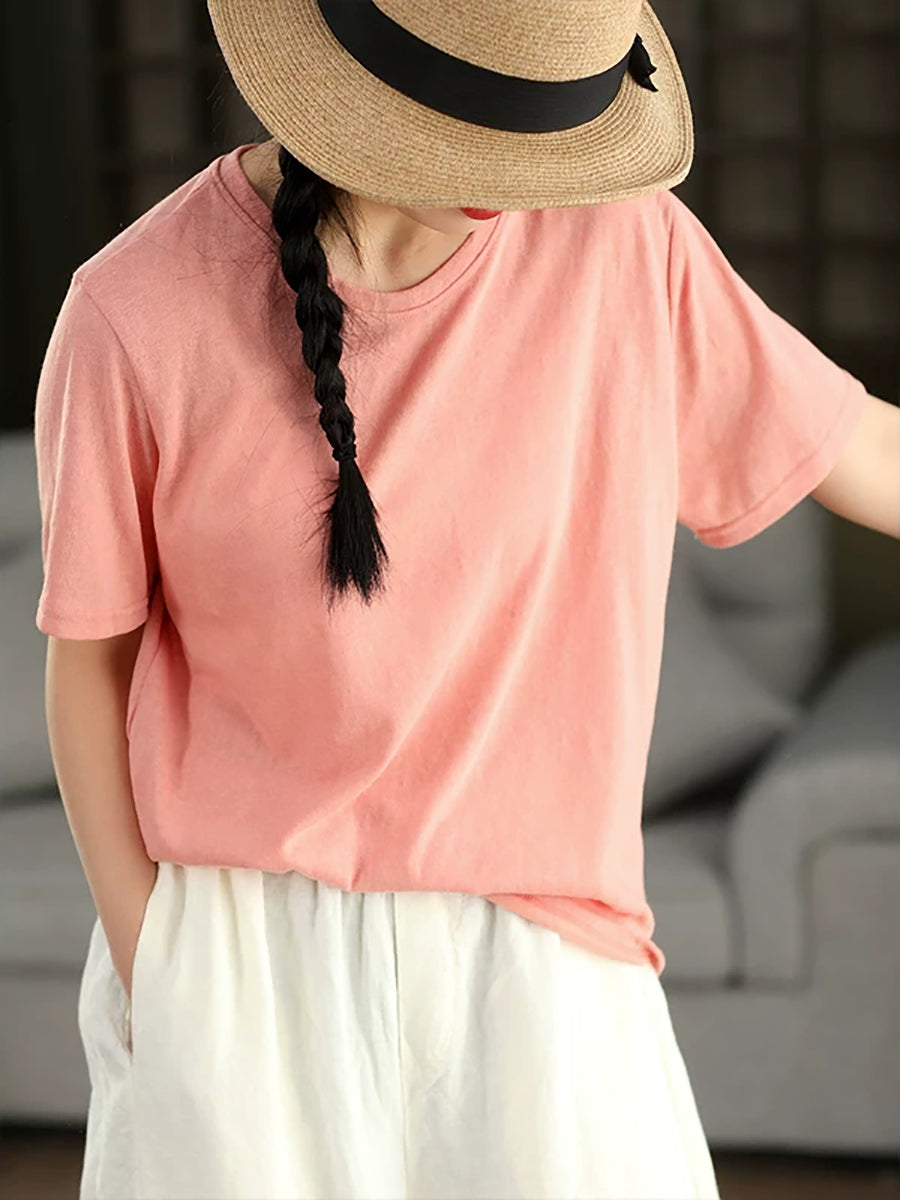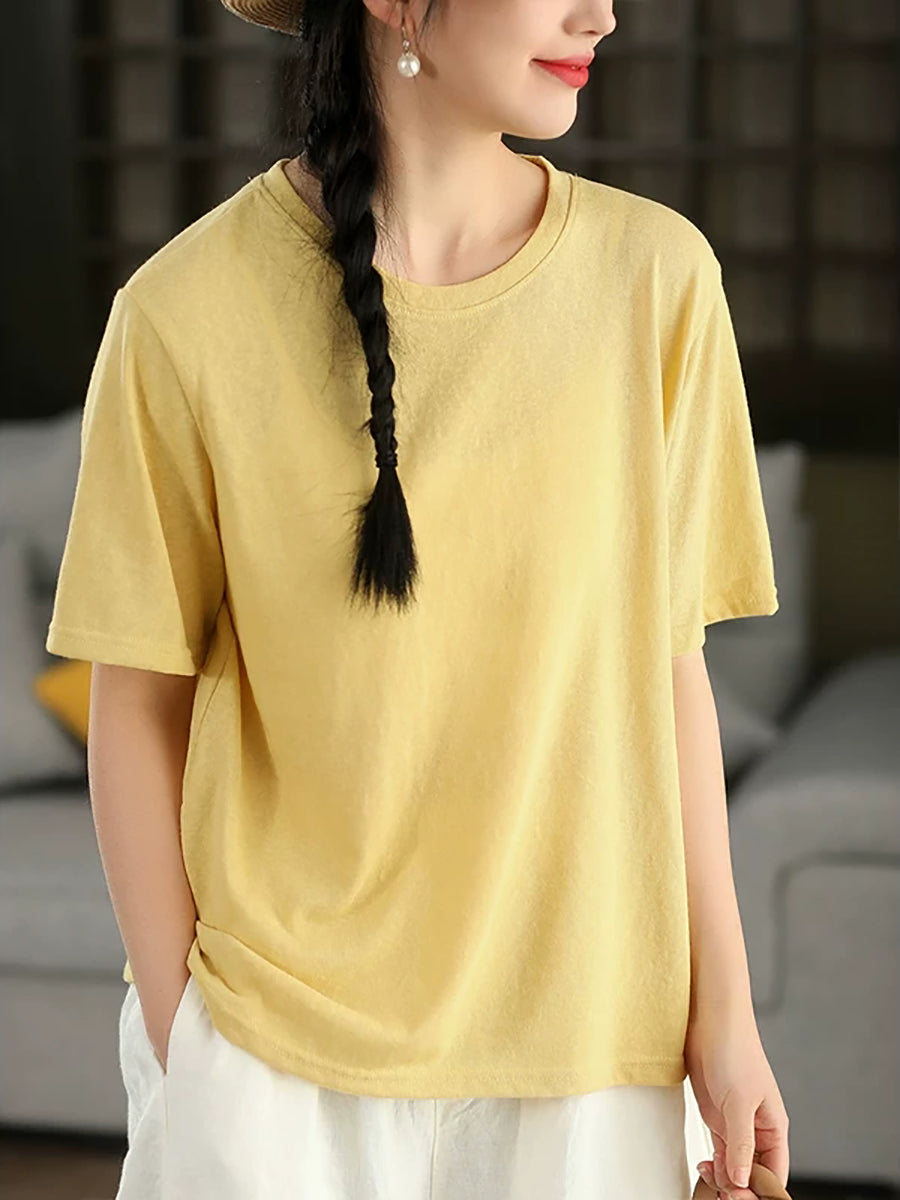 レディース 夏用 カジュアル 無地 クルーネック Tシャツ