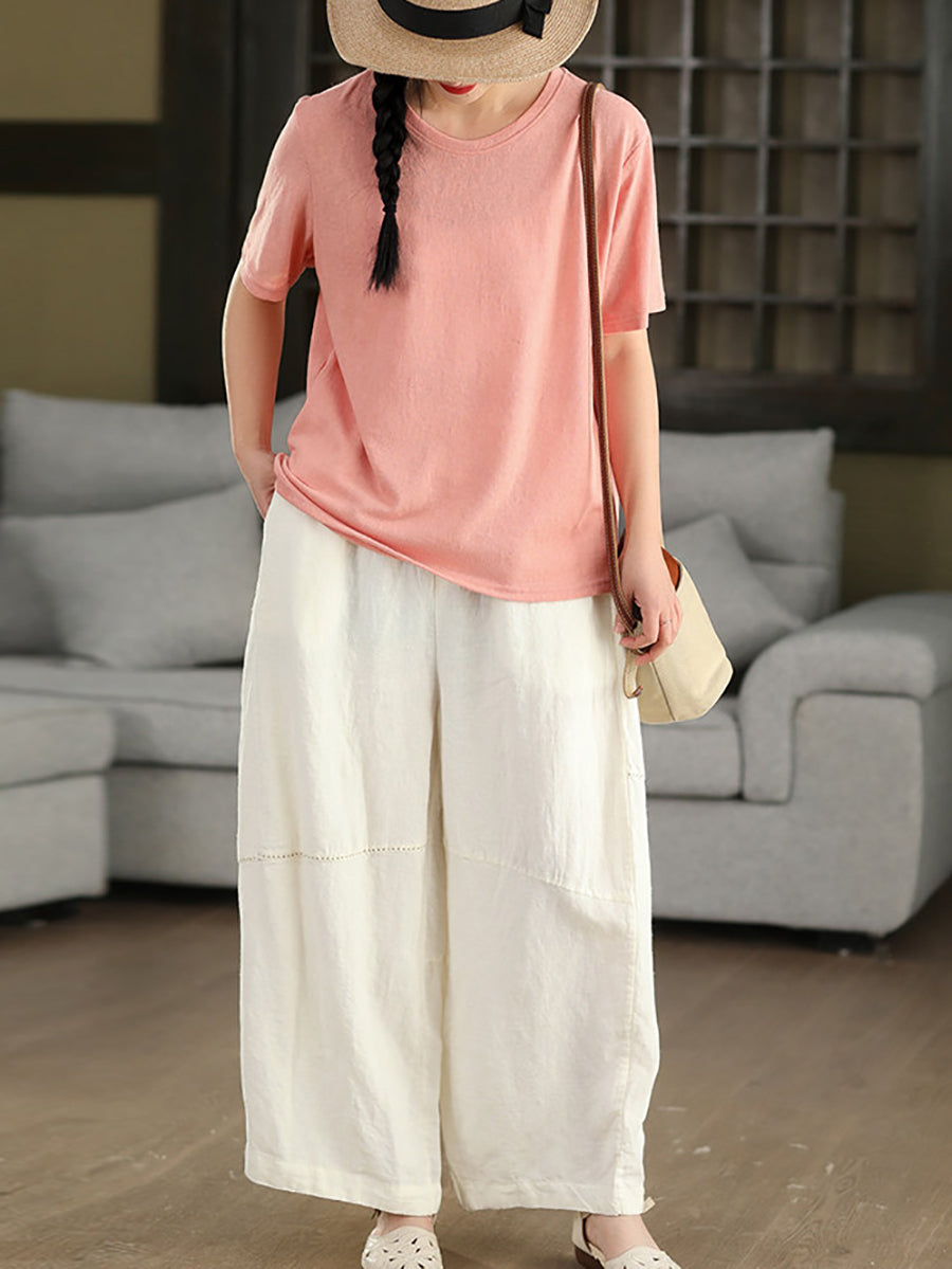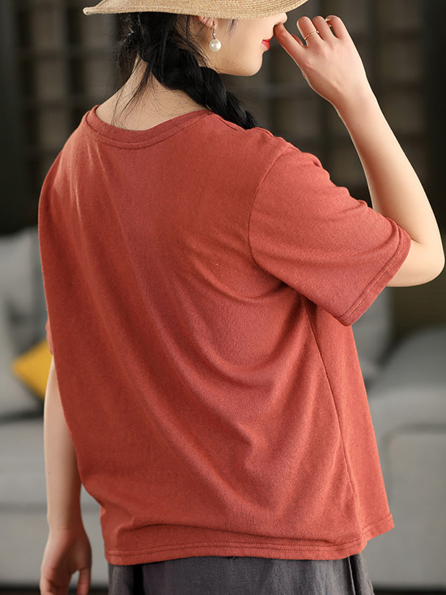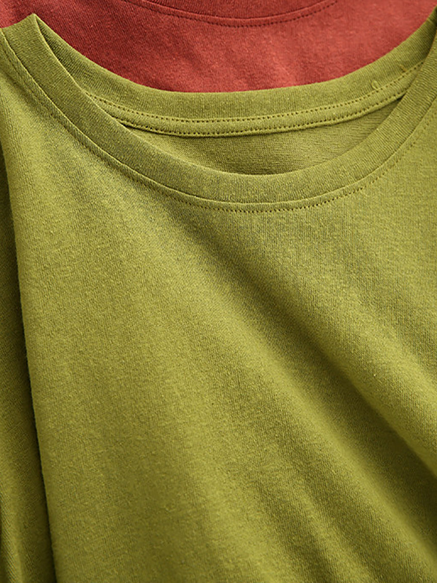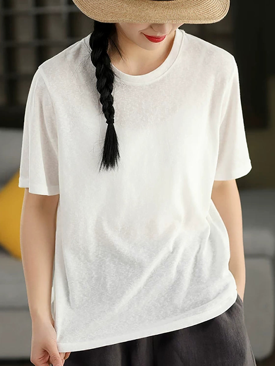 レディース 夏用 カジュアル 無地 クルーネック Tシャツ