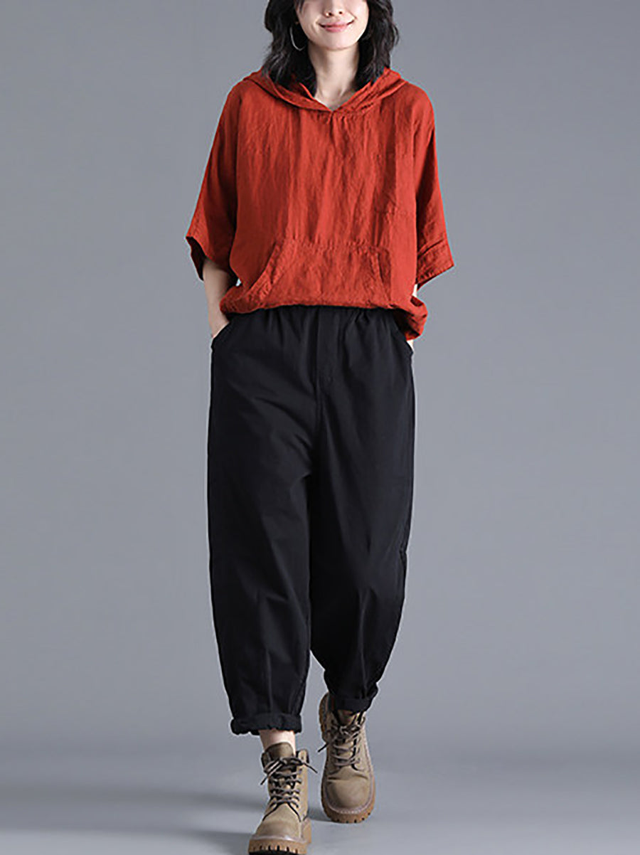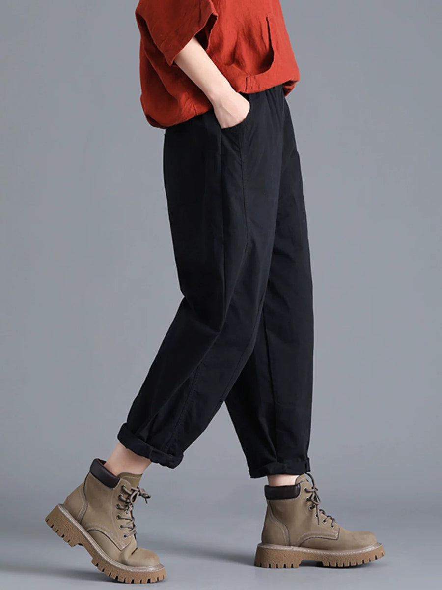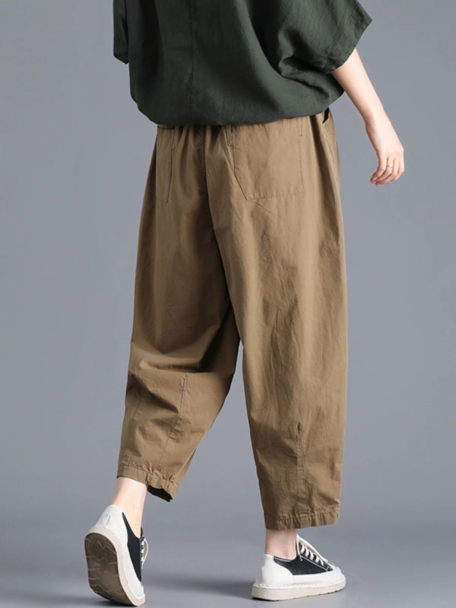 レディース 春 カジュアル 100%コットン ハーレムパンツ