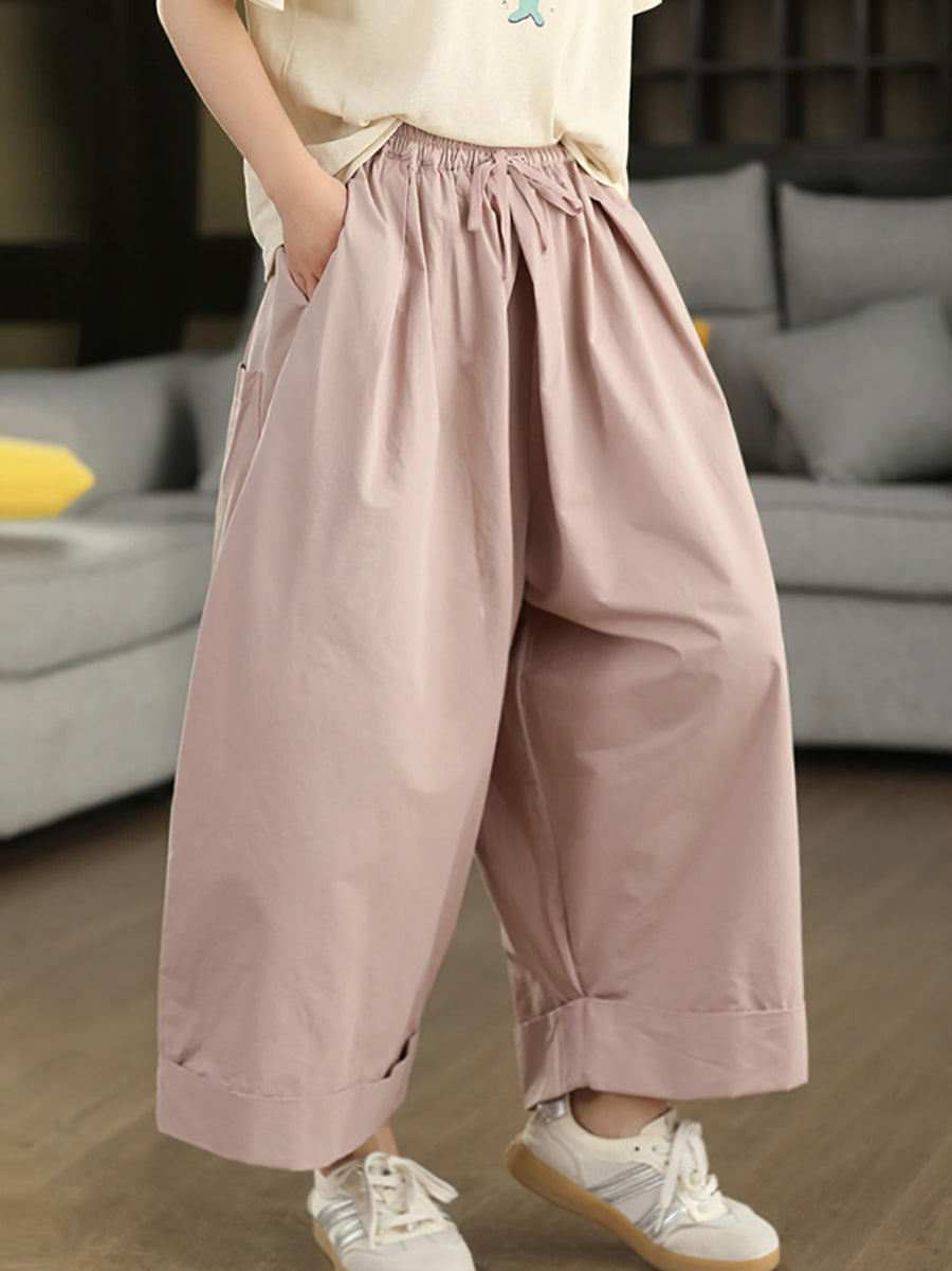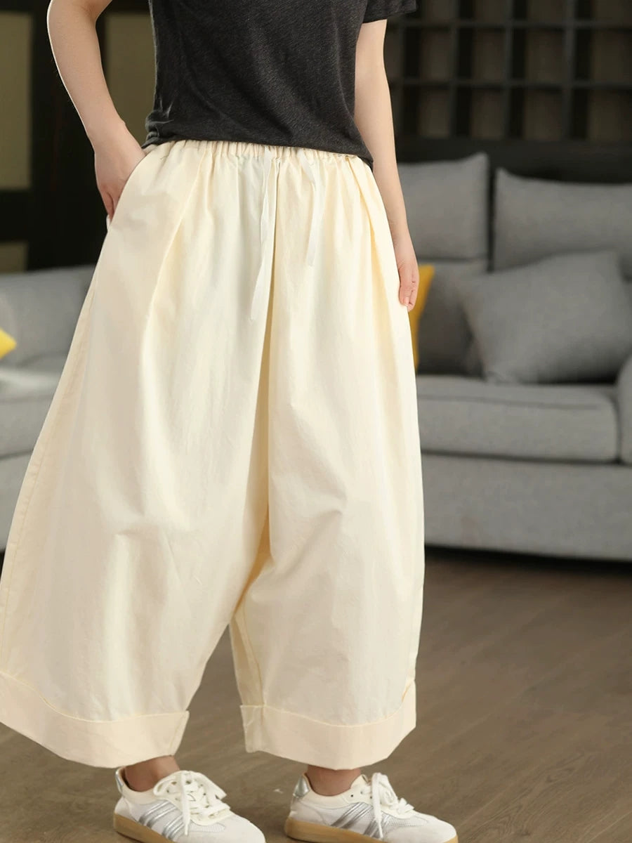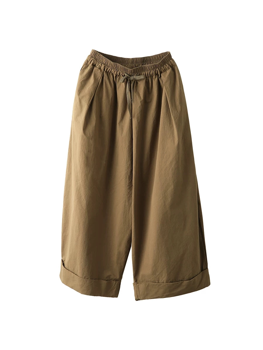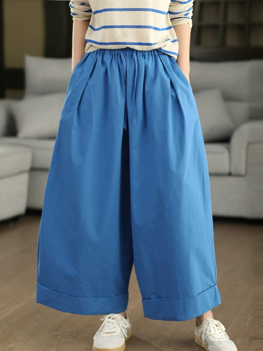 レディース 夏用 カジュアル 無地 100%コットン ワイドレッグパンツ