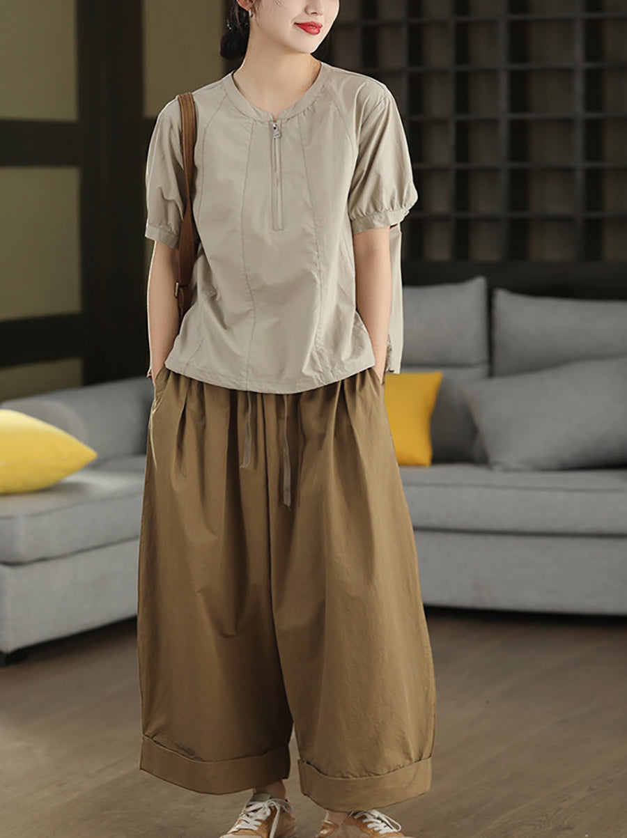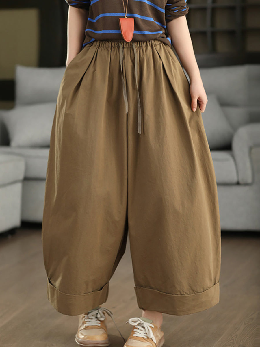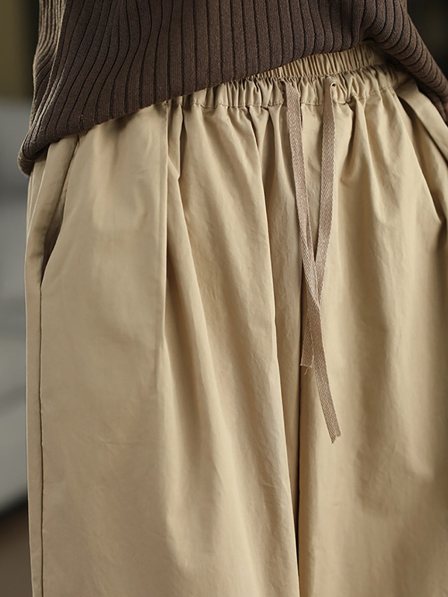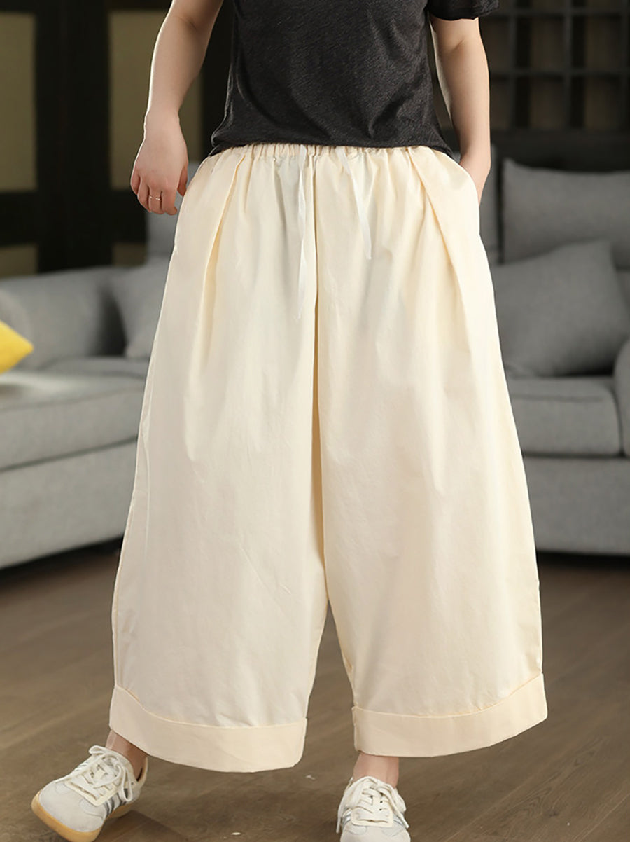 レディース 夏用 カジュアル 無地 100%コットン ワイドレッグパンツ