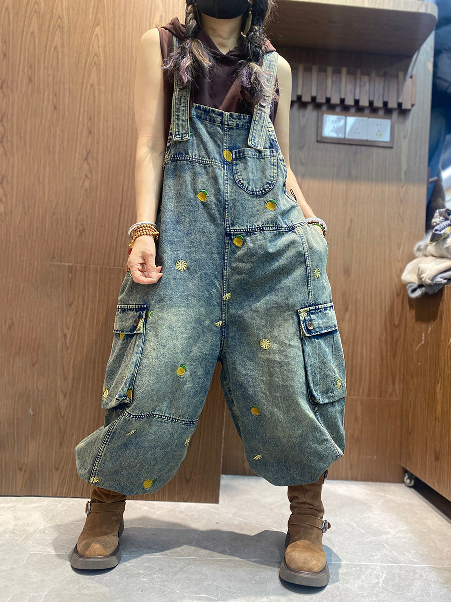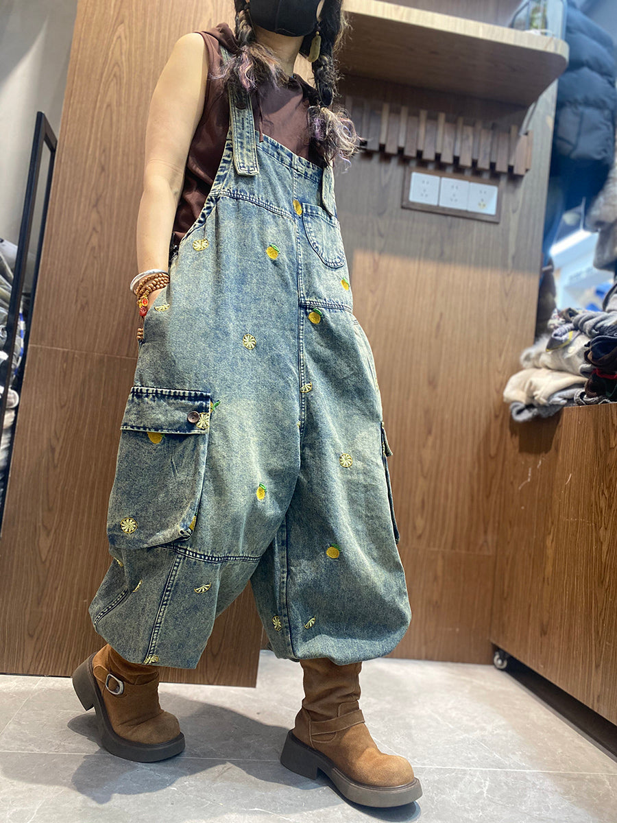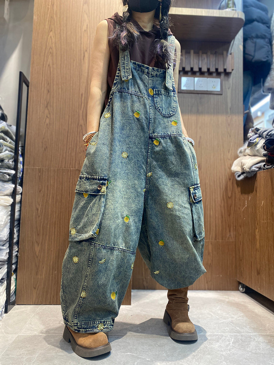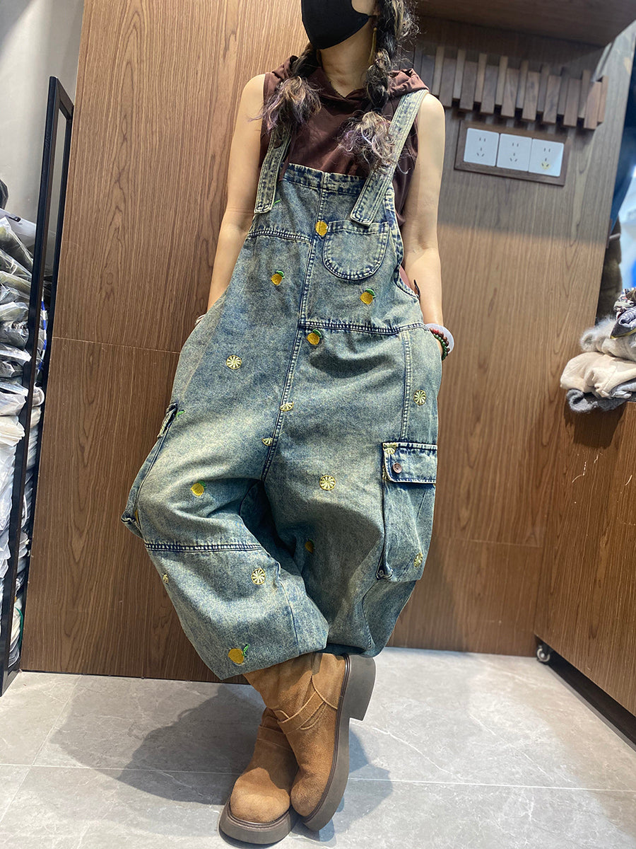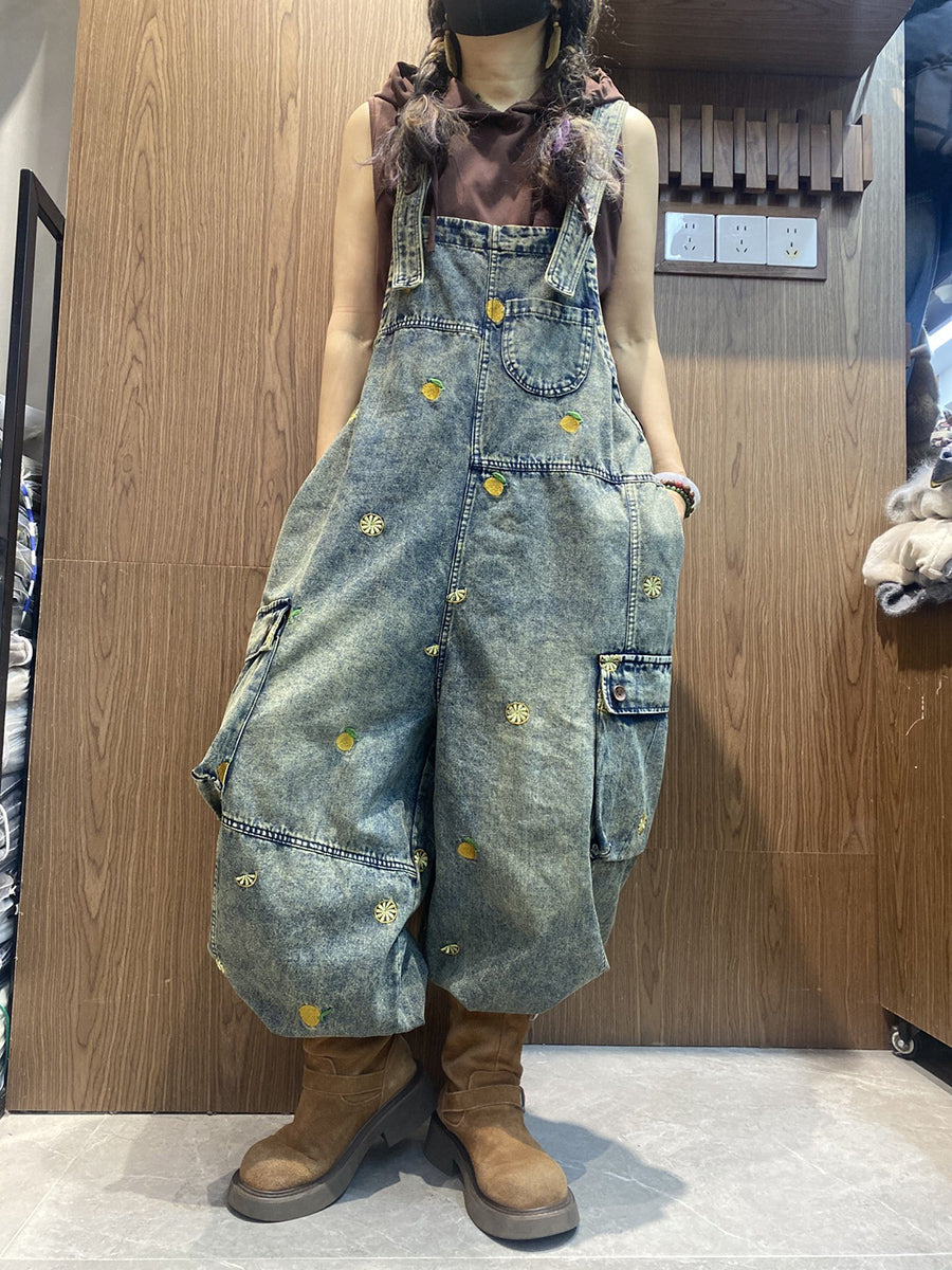 レディース ヴィンテージ 刺繍 ルーズ デニム ジャンプスーツ