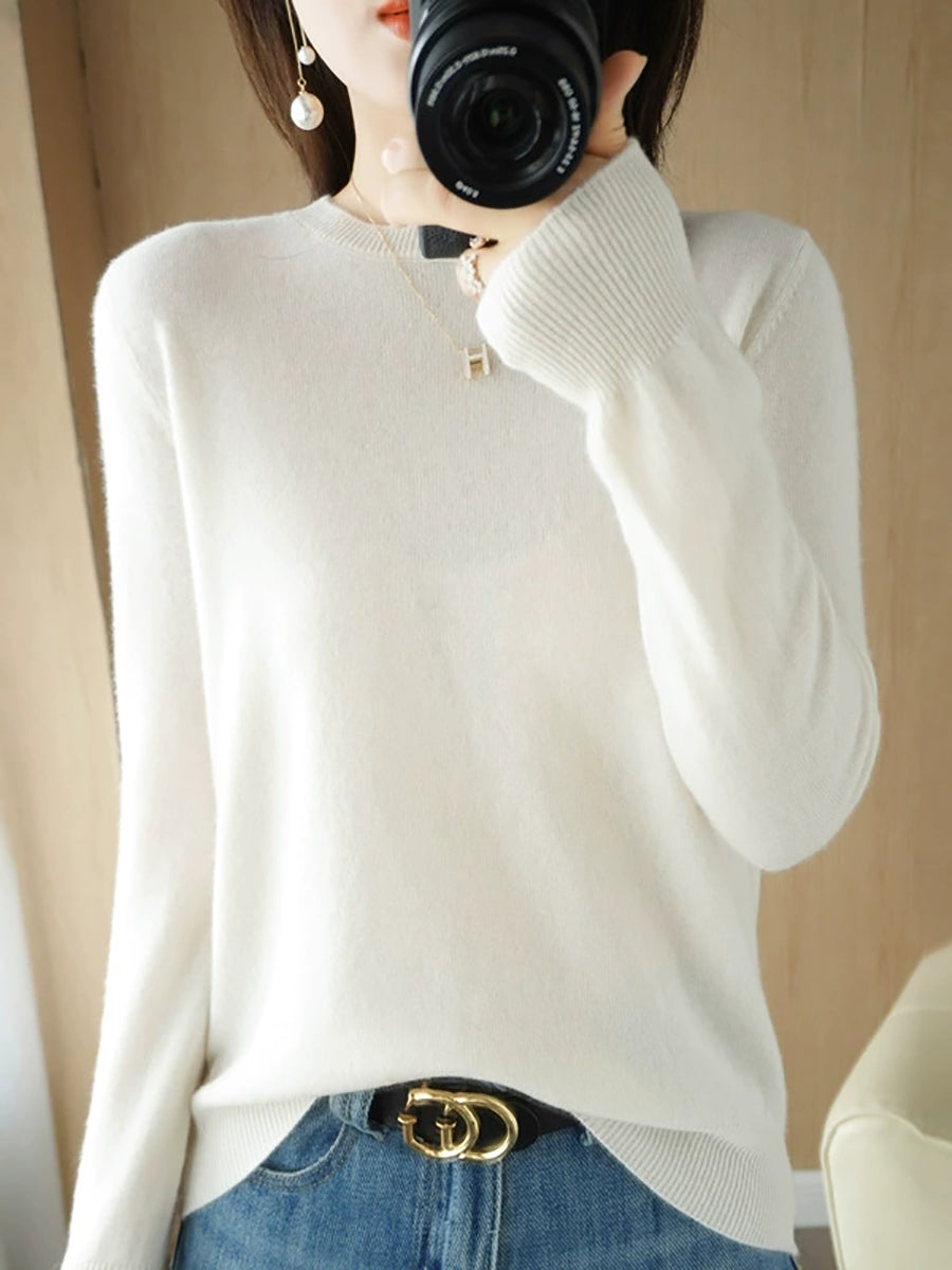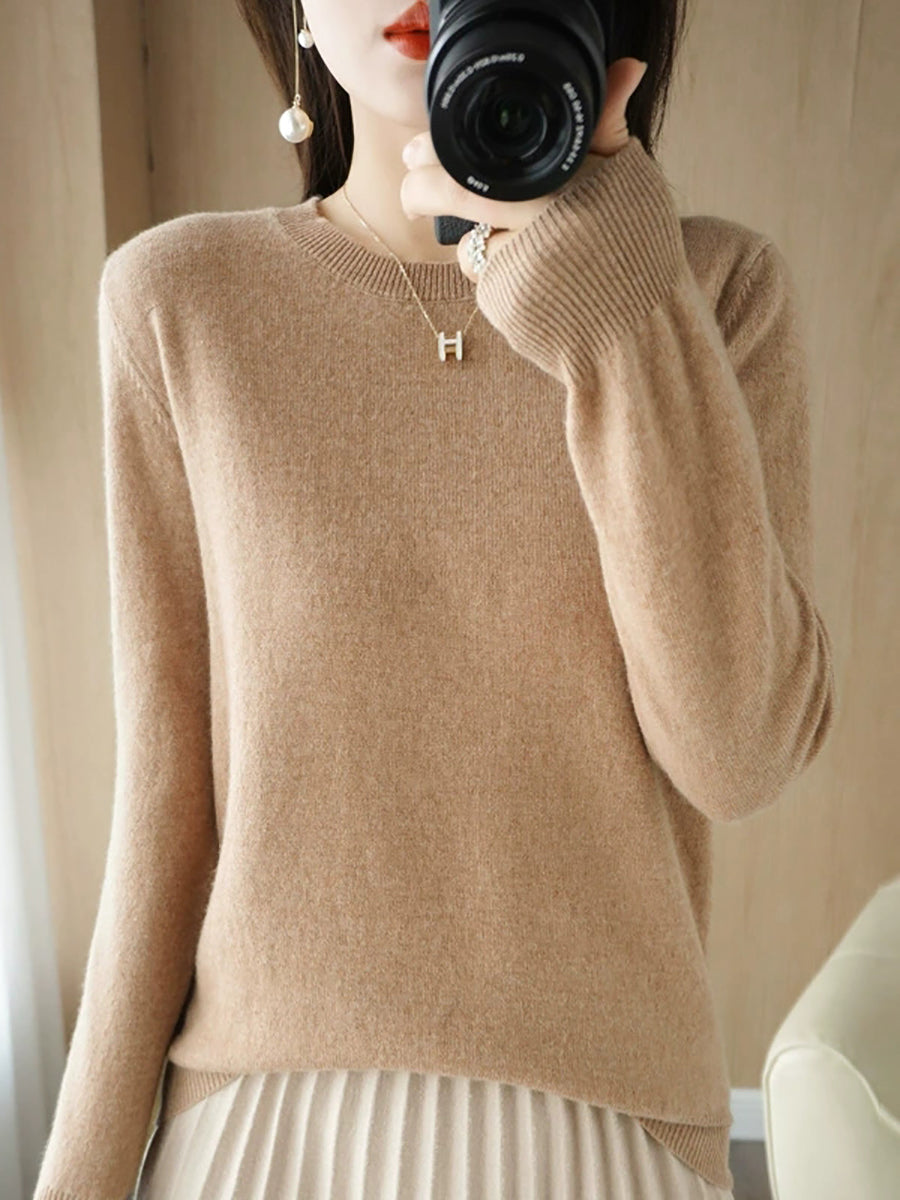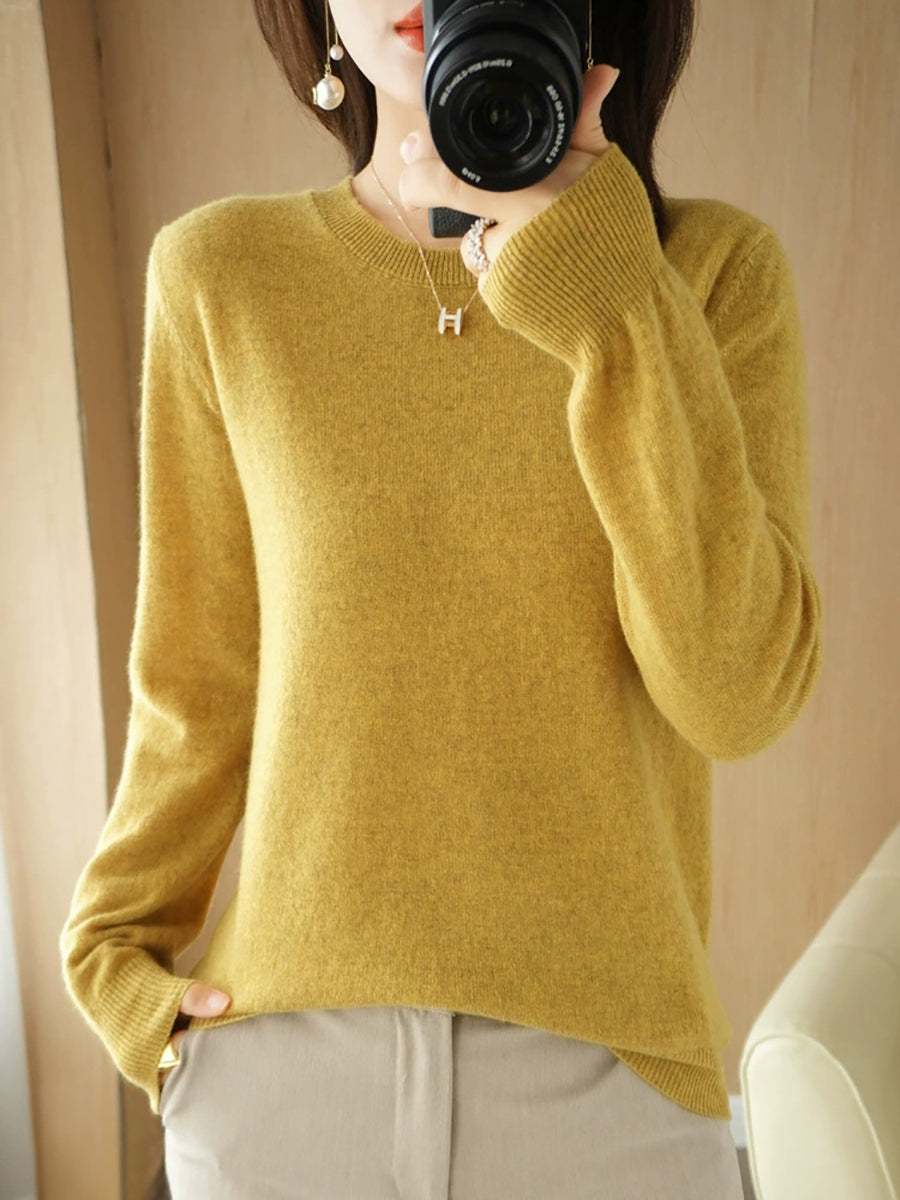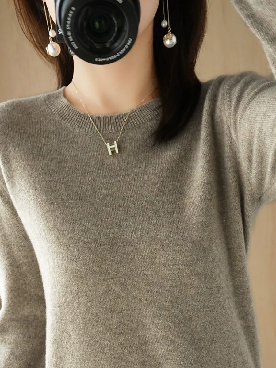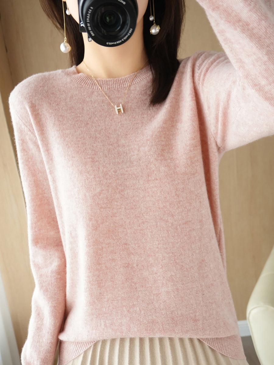 レディース カジュアル 春 ピュアカラー Oネック セーター