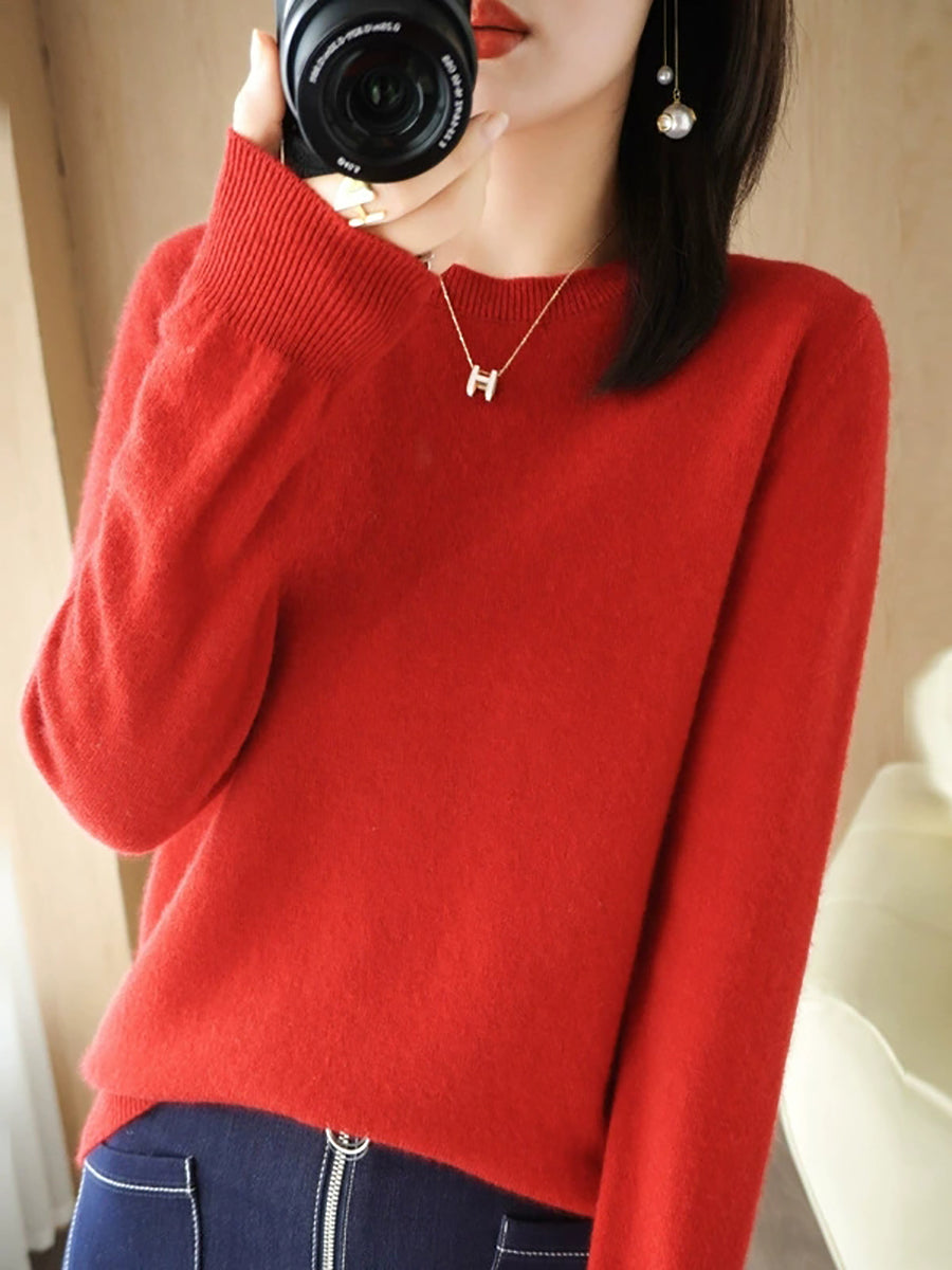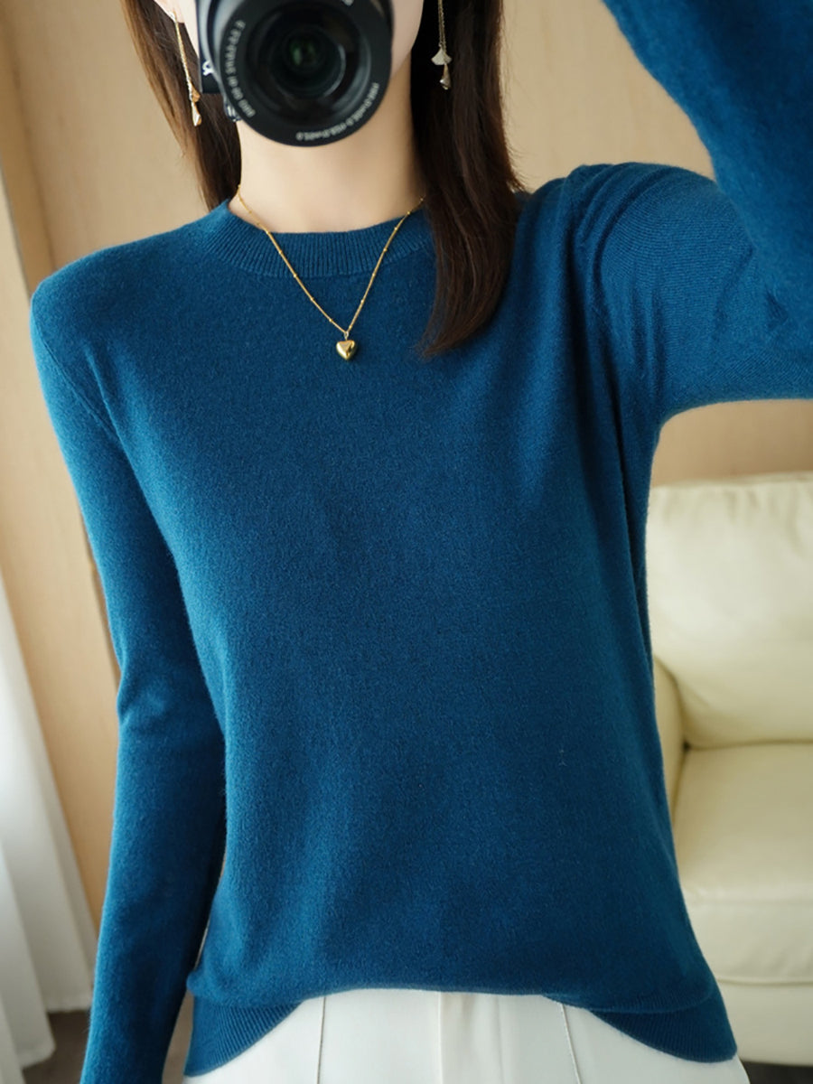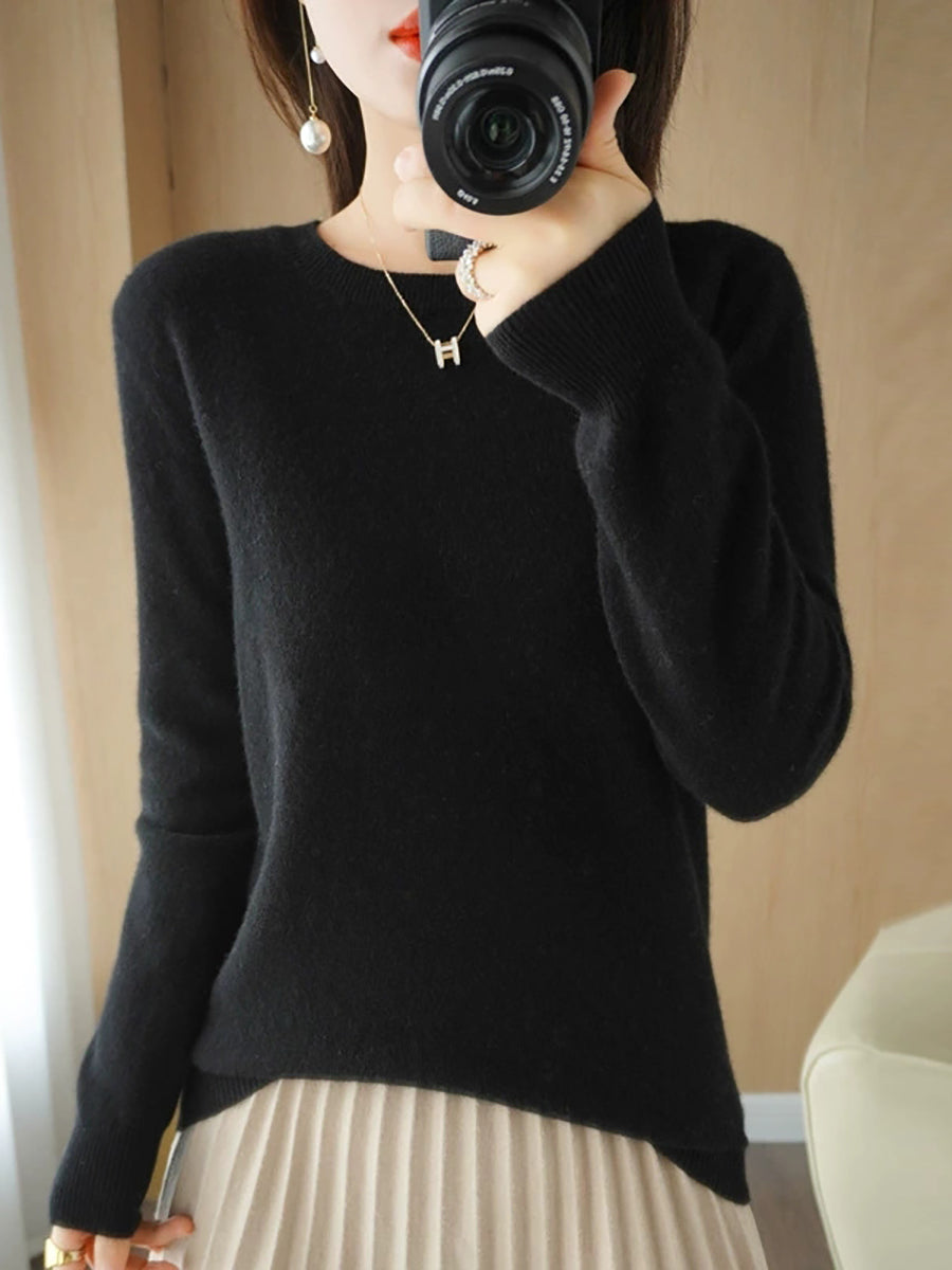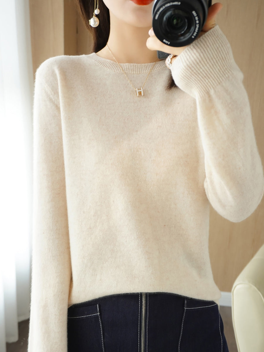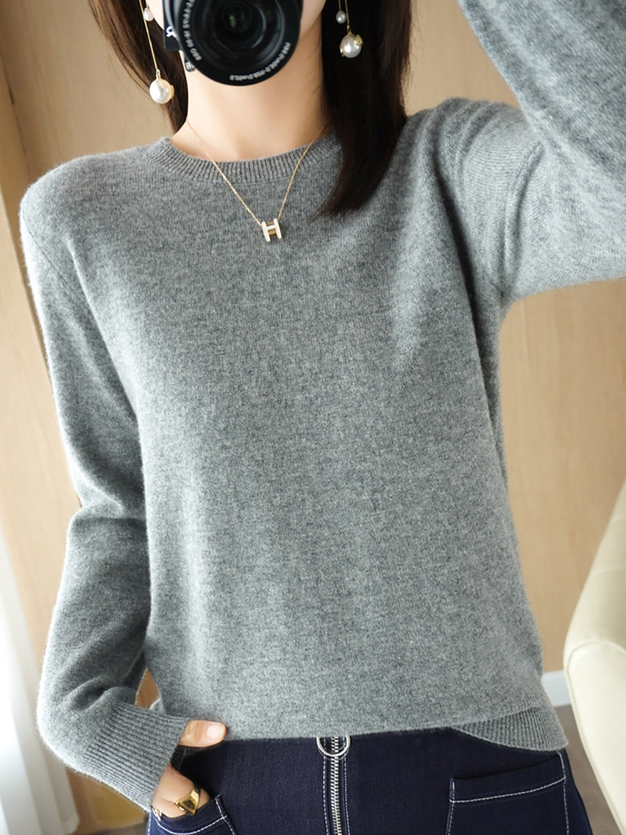 レディース カジュアル 春 ピュアカラー Oネック セーター