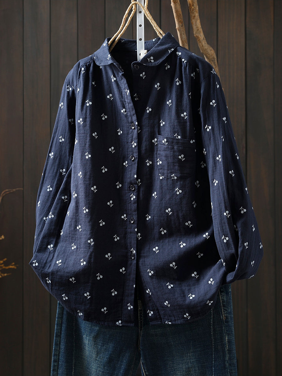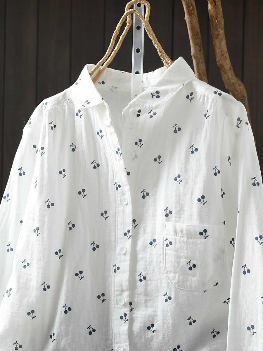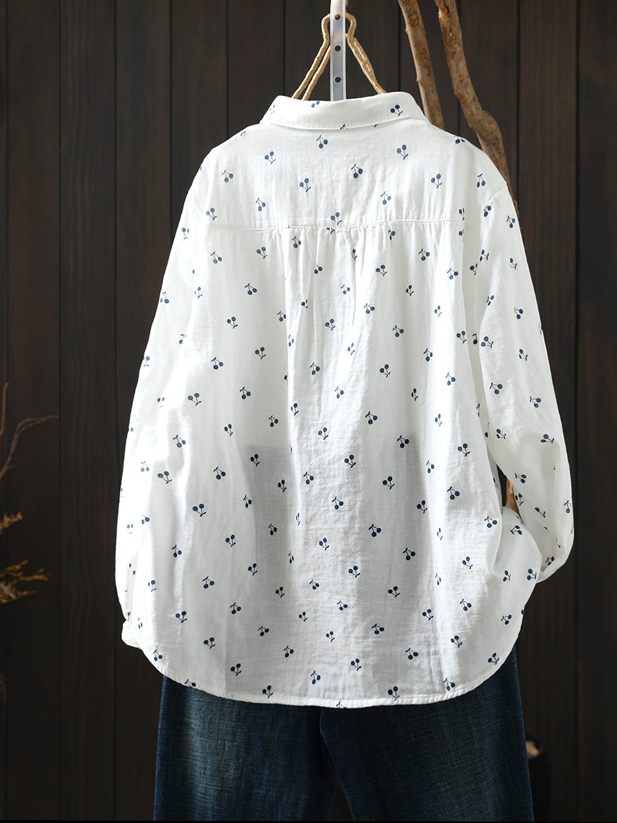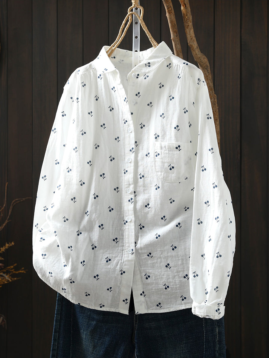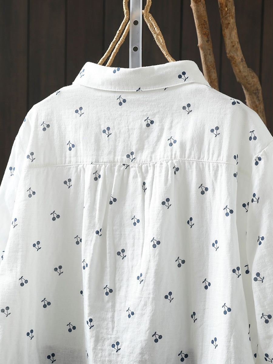 レディース 春 アーティスティック チェリー 刺繍 100%コットン シャツ