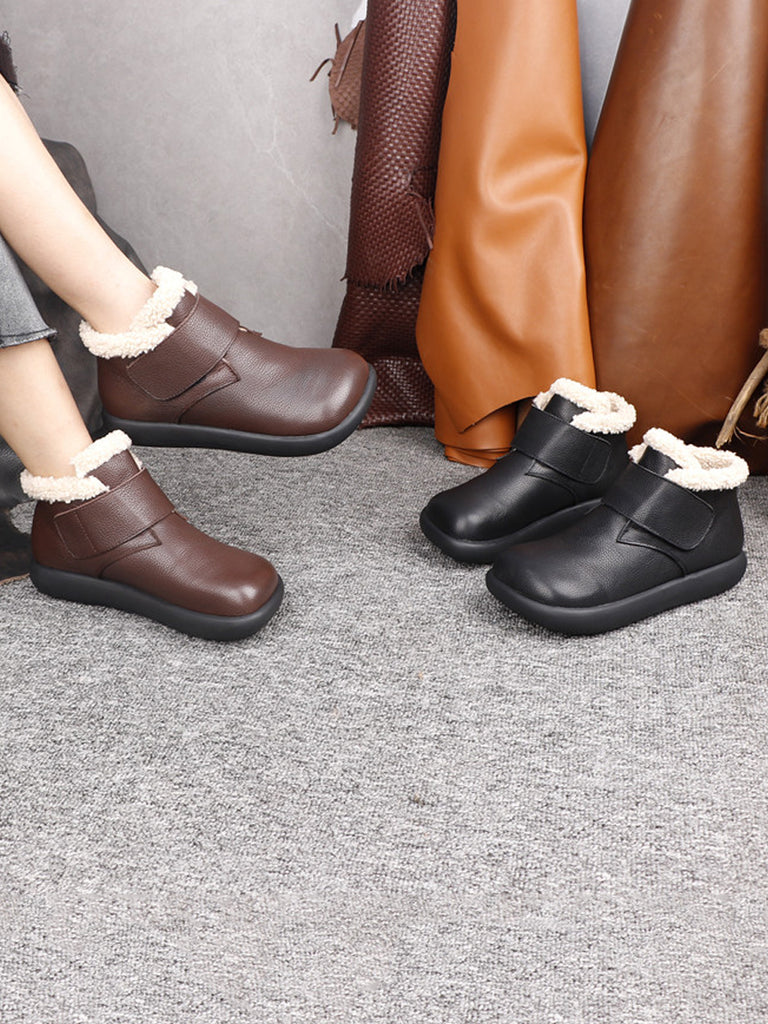レディース カジュアル ヴィンテージ 本革 フリース裏地 ブーツ