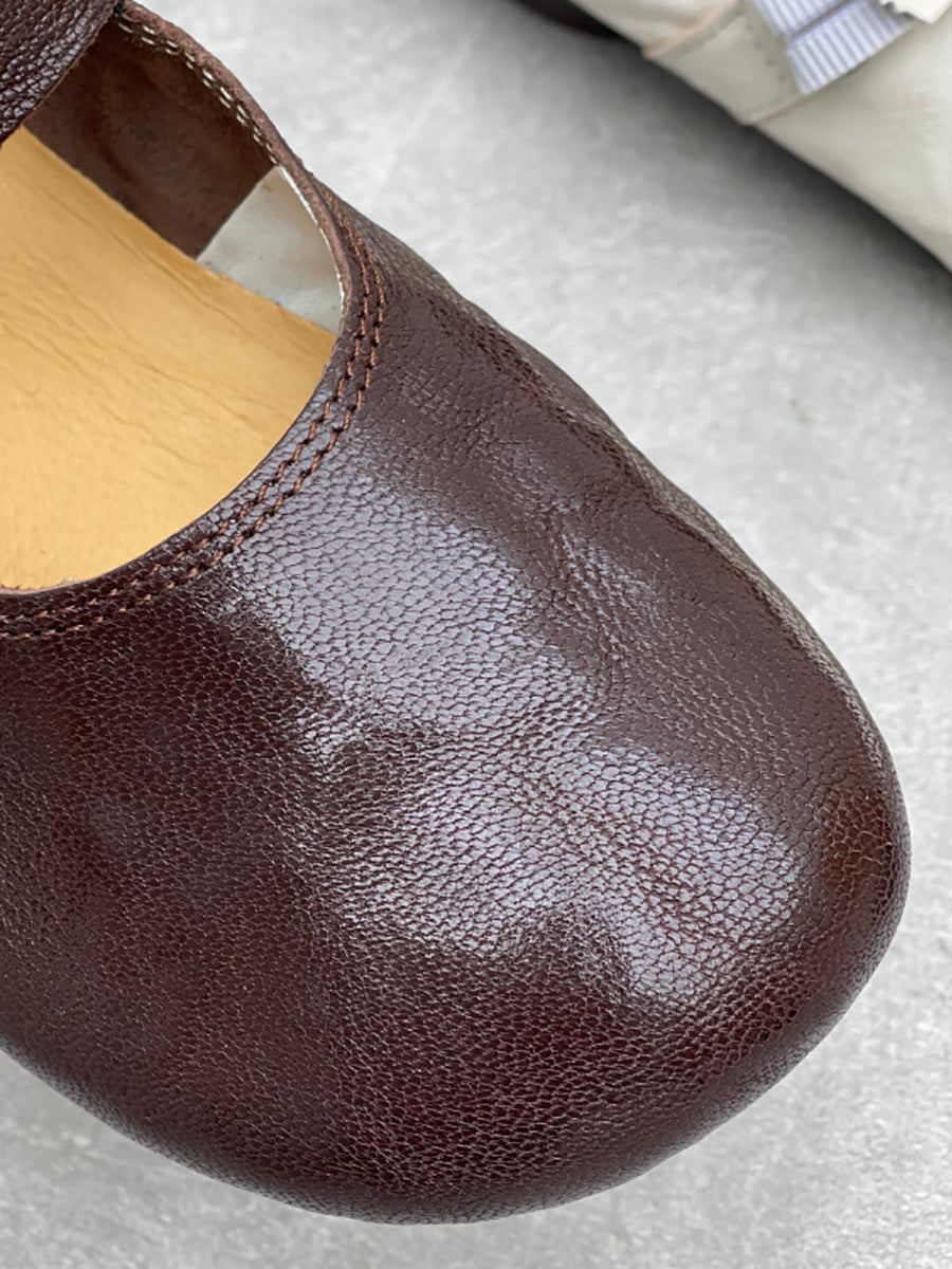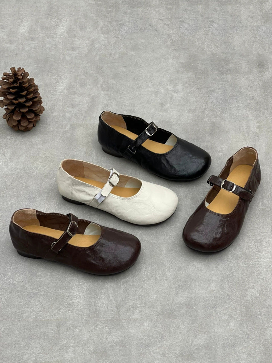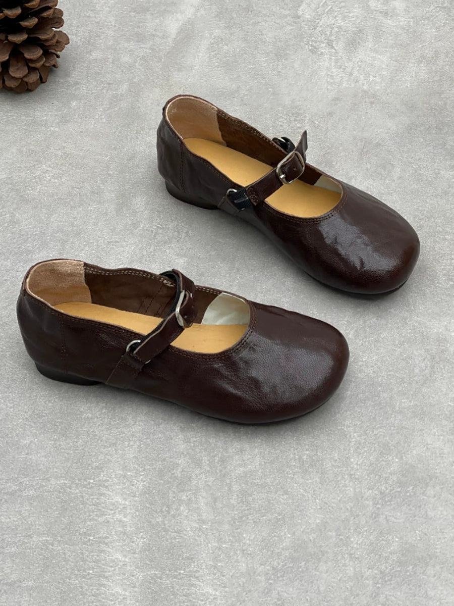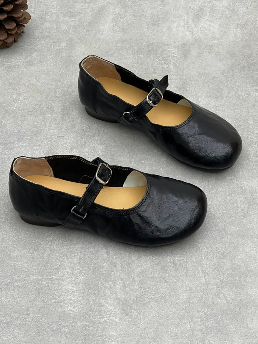 レディース 春 ヴィンテージ 本革 ローヒール シューズ