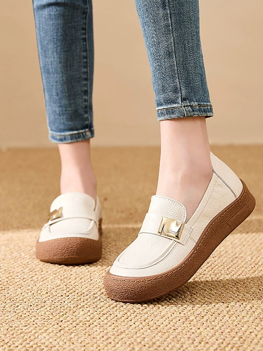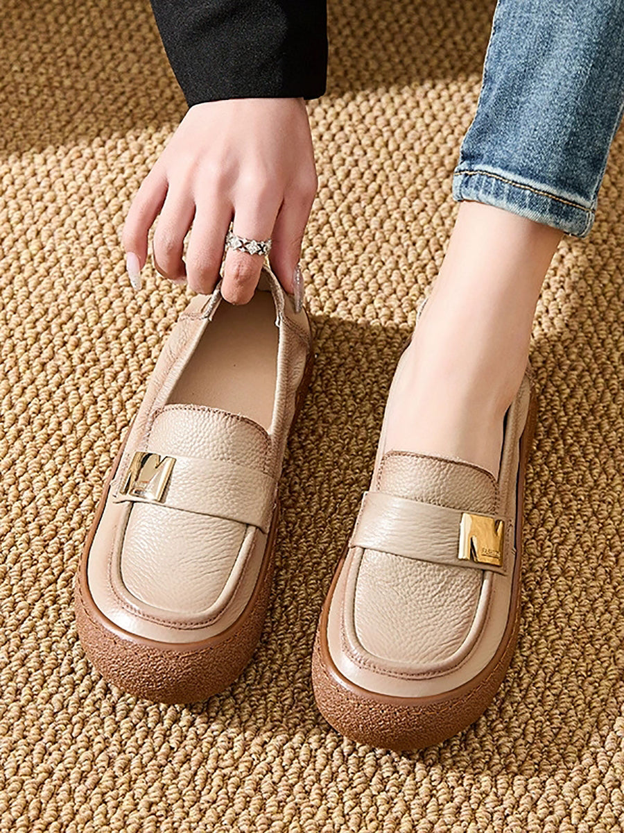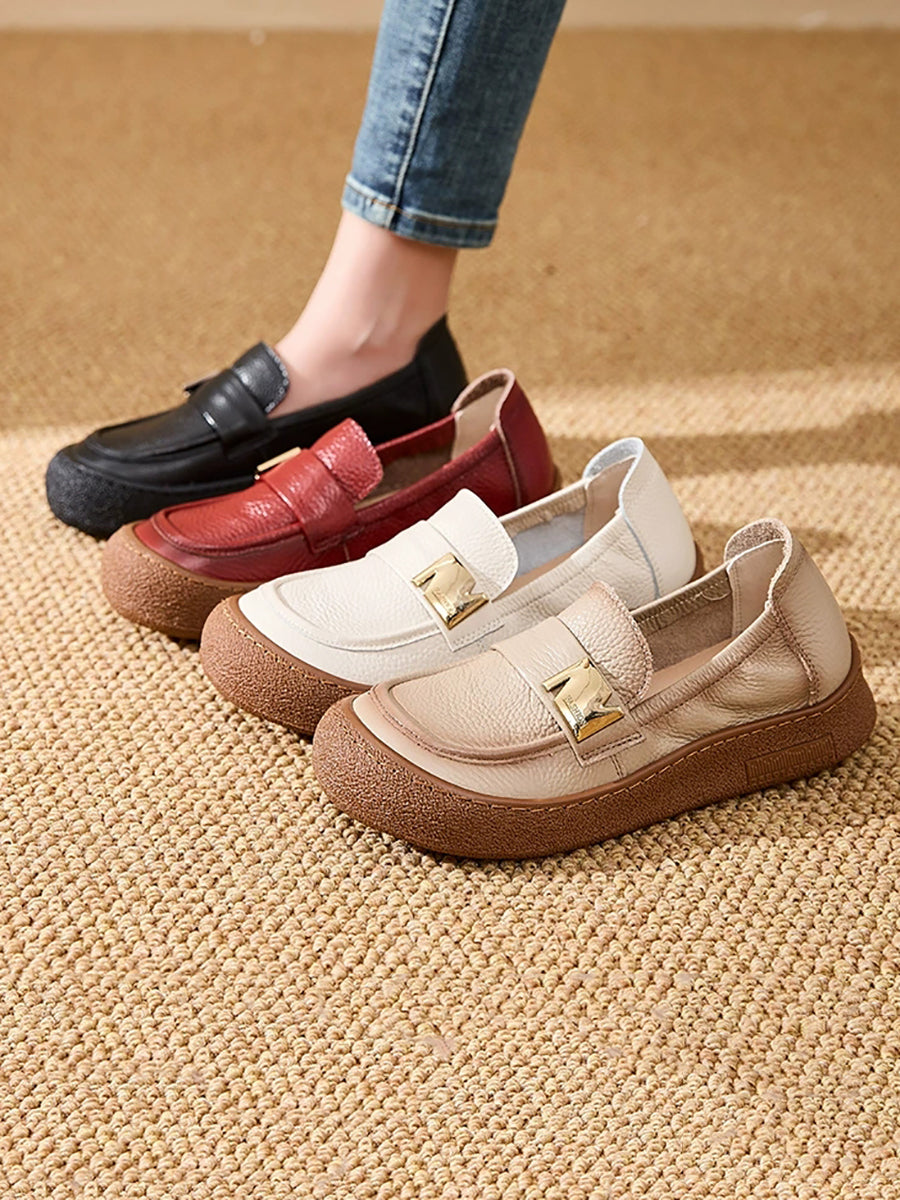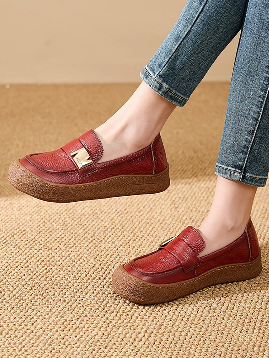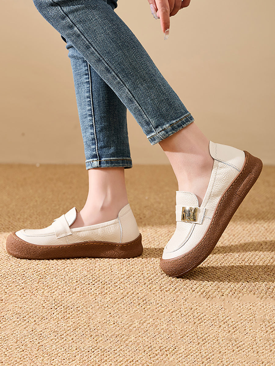 レディース ヴィンテージ 春 本革 フラットシューズ