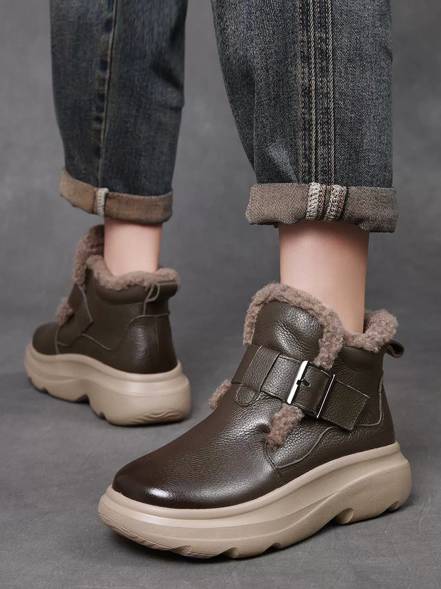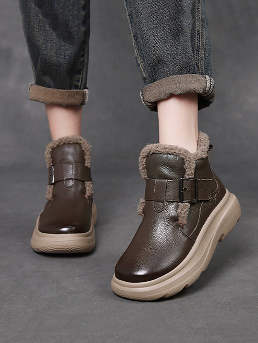 レディース 冬用 本革 フリース裏地 アンクルブーツ