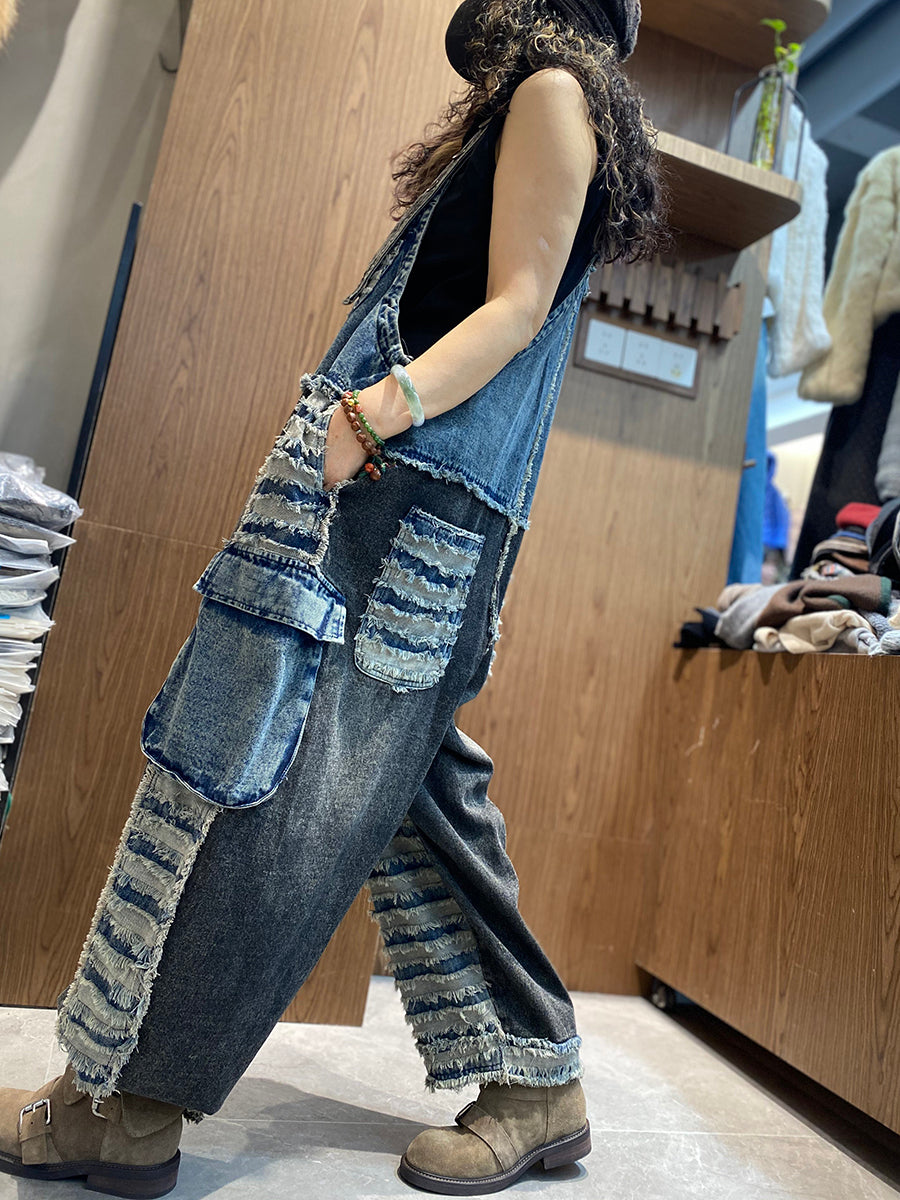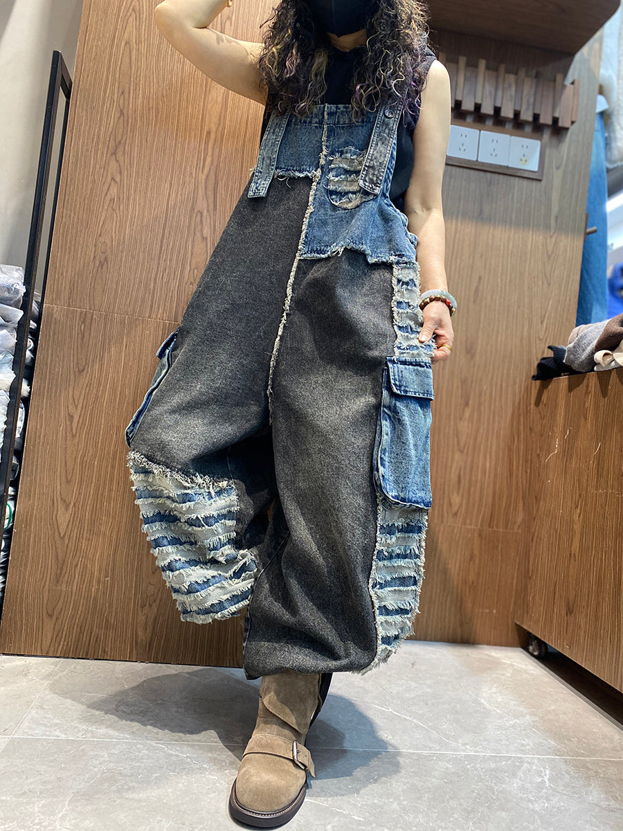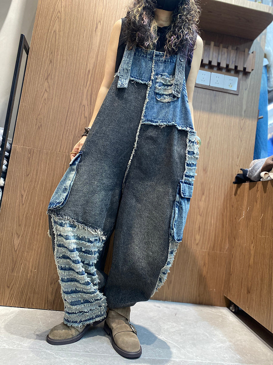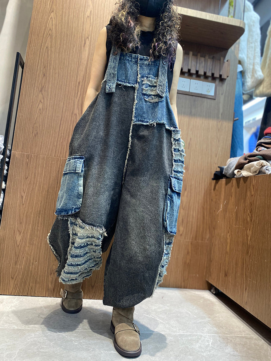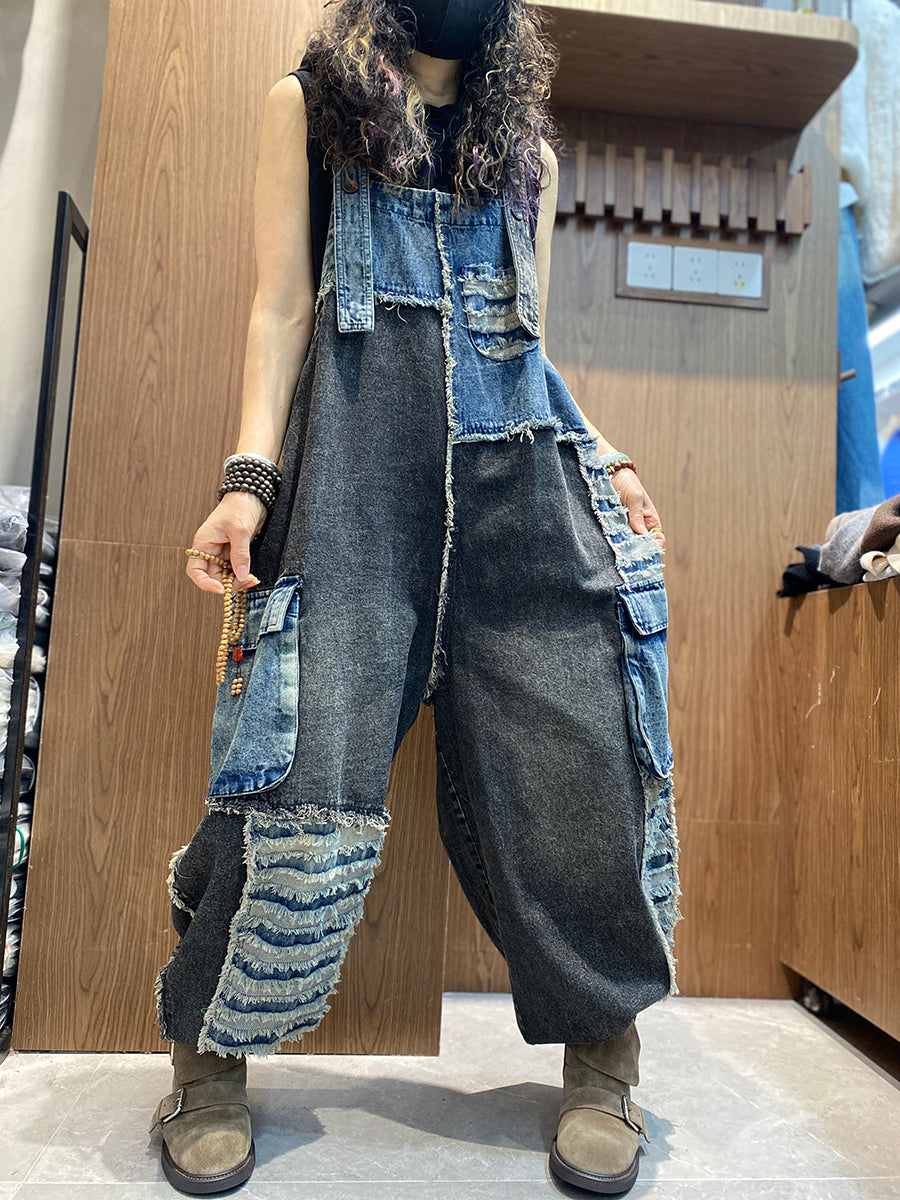 レディース春レトロパッチワークデニムジャンプスーツ