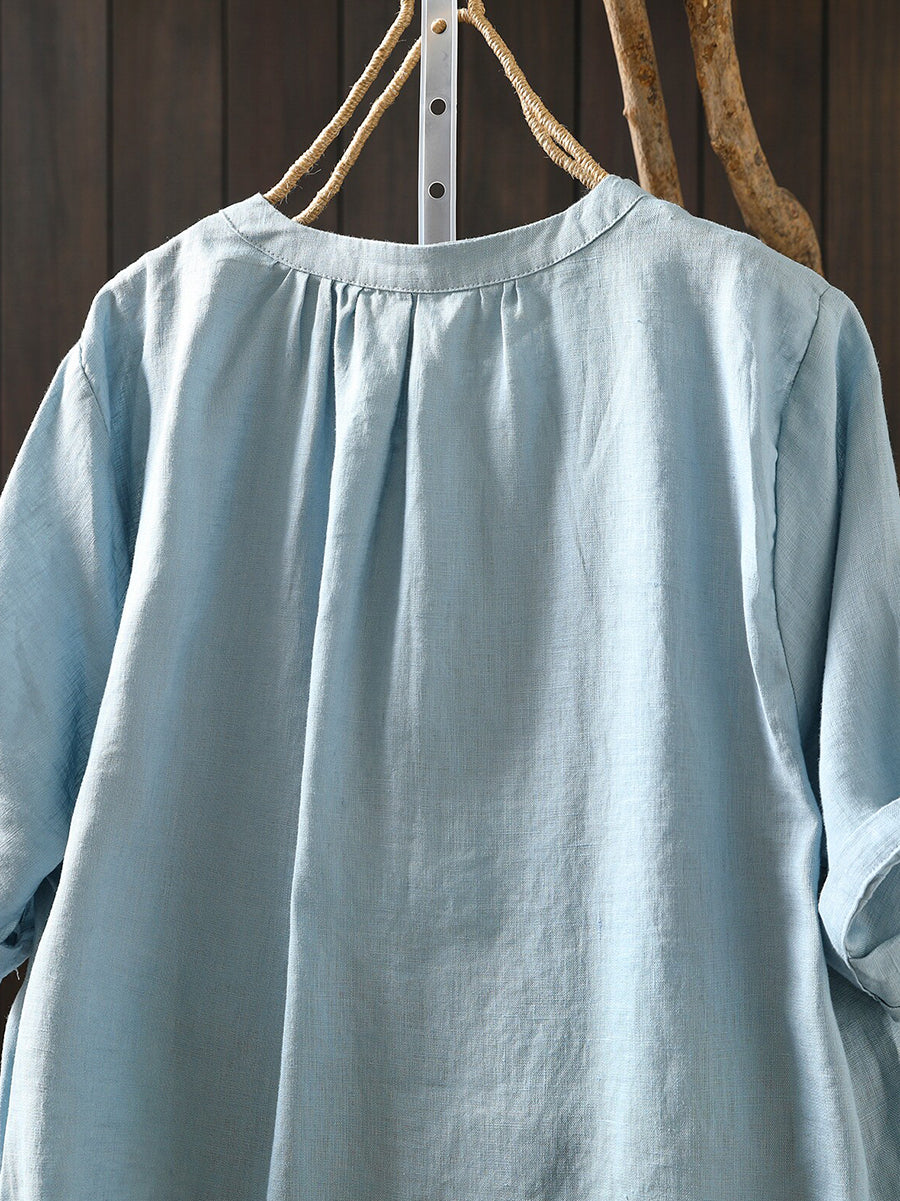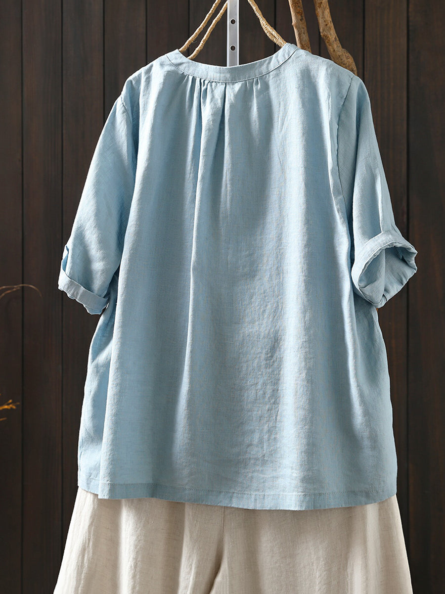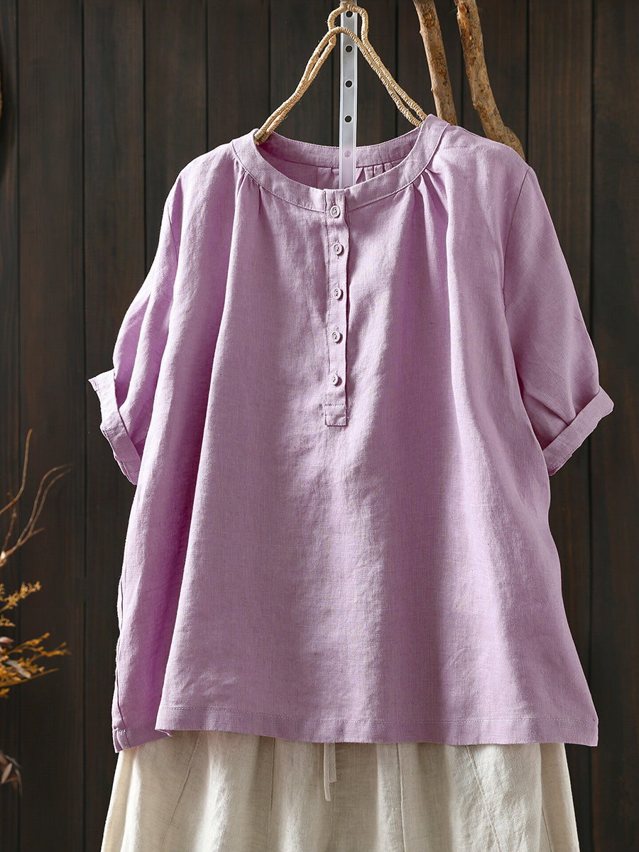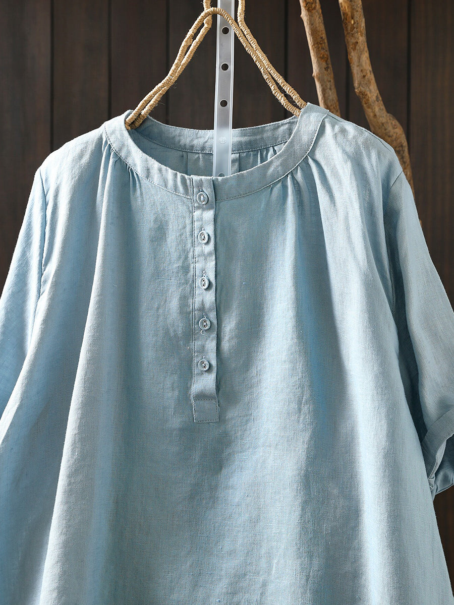 レディース 夏物 アーティスティック Oネック 100%リネン Tシャツ