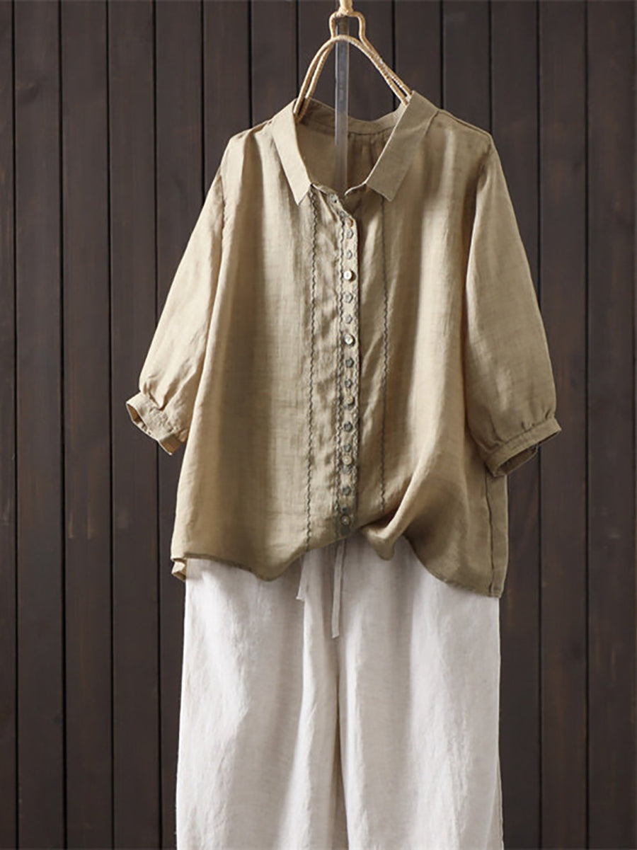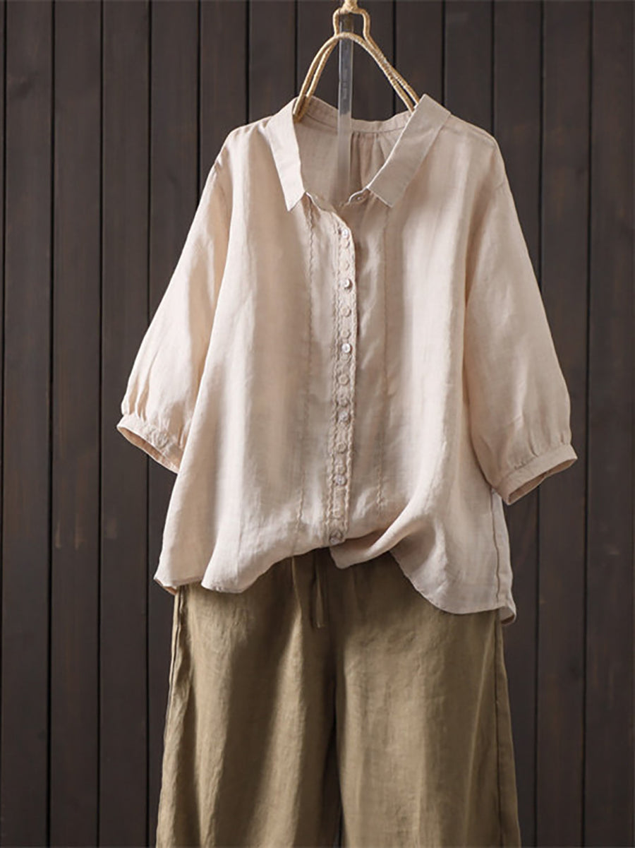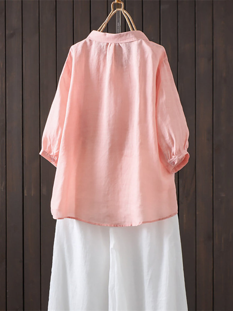 レディース 夏物 アーティスティック 無地 100%ラミーシャツ