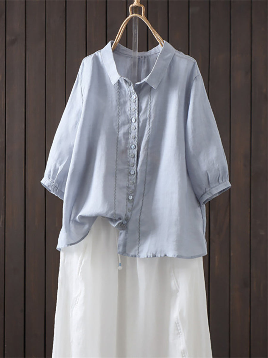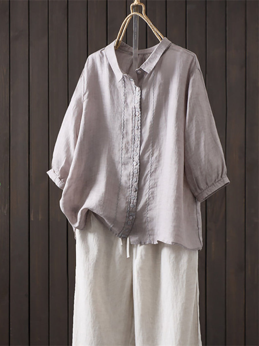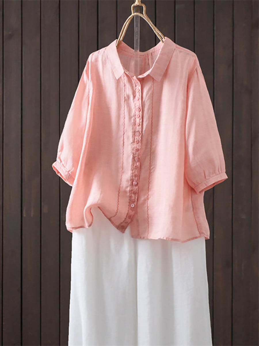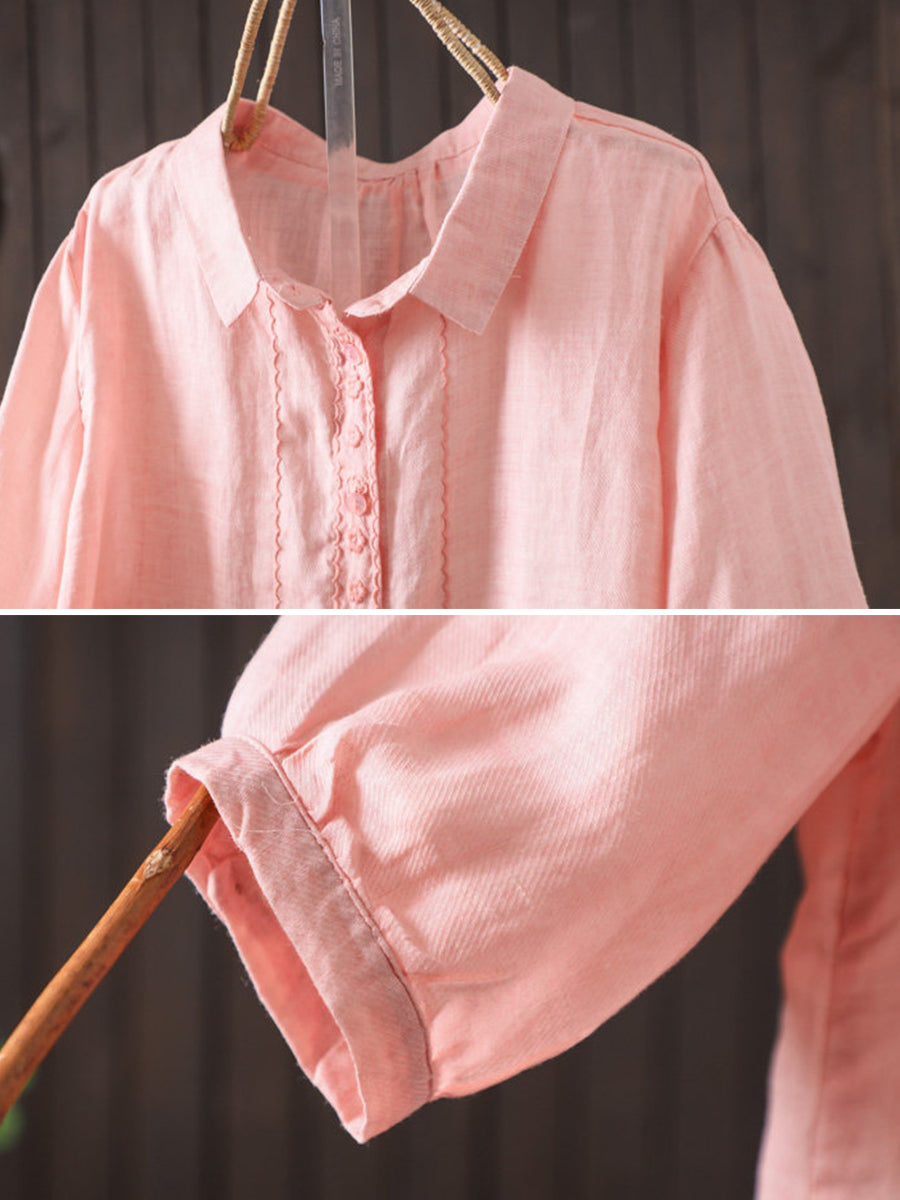 レディース 夏物 アーティスティック 無地 100%ラミーシャツ