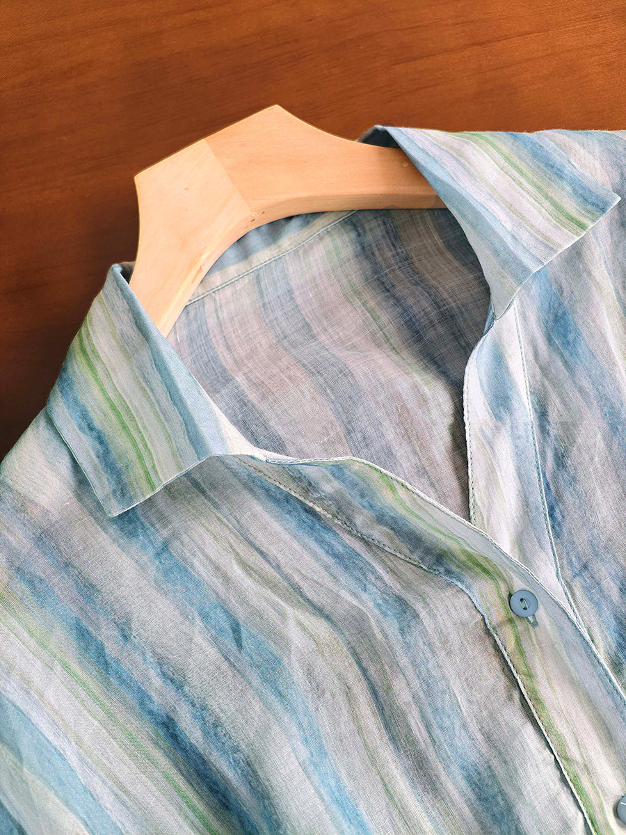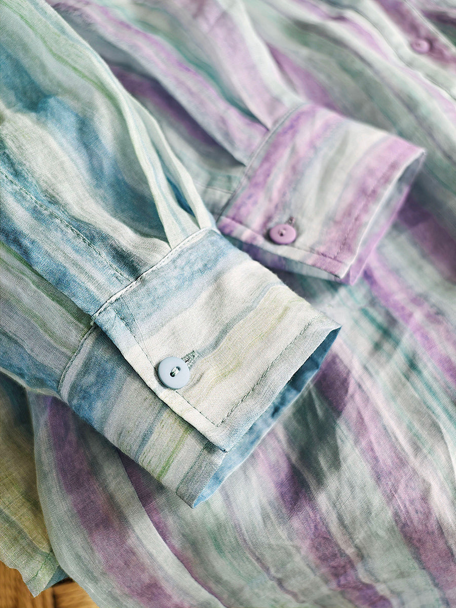 レディース サマー アーティスティック ストライプ 100%ラミー ブラウス