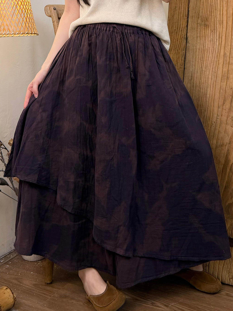 レディース 夏用 レトロ タイダイ コットン イレギュラースカート