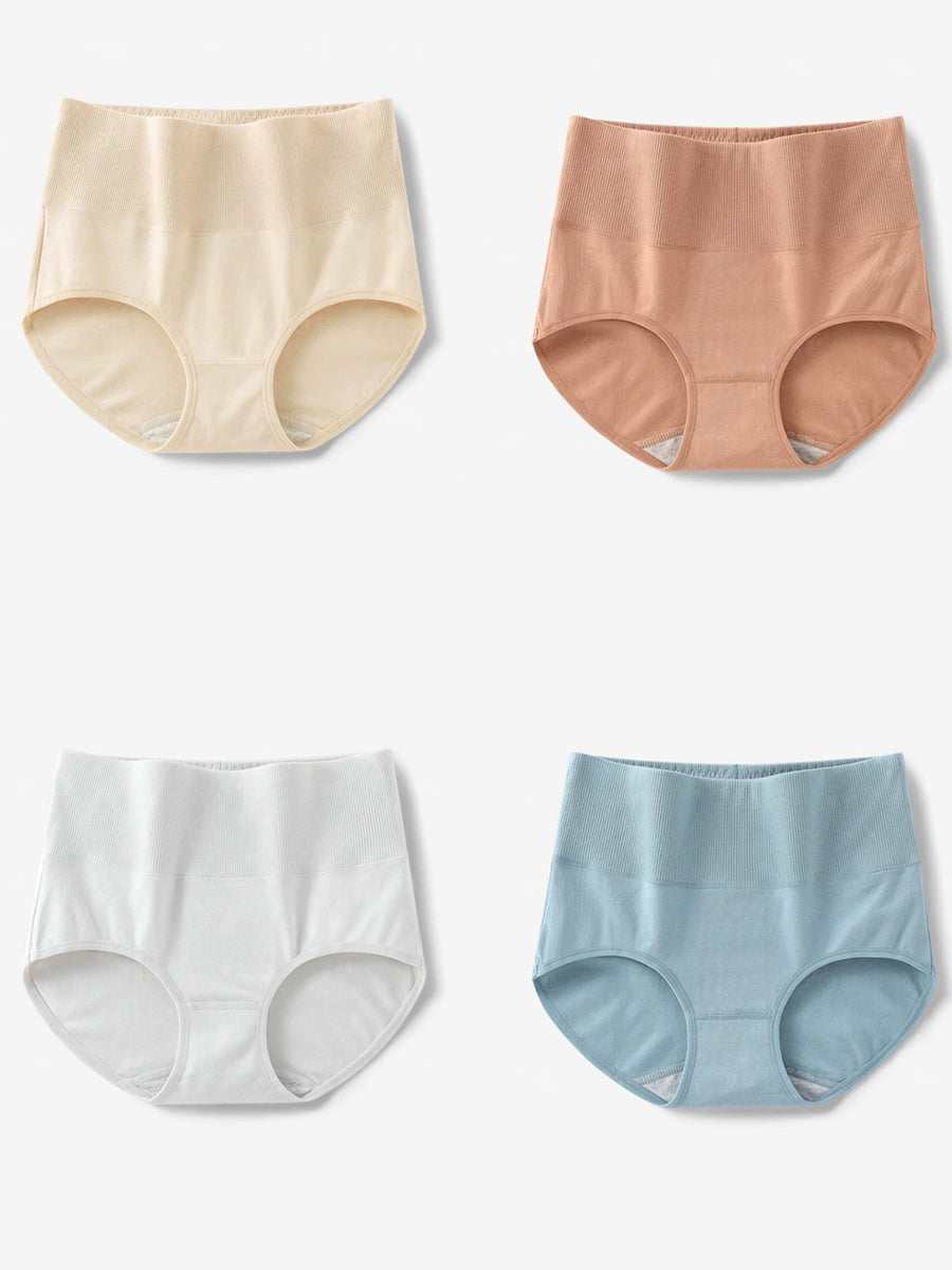 女性用アーティスティックな純色ハイウエスト下着4枚セット