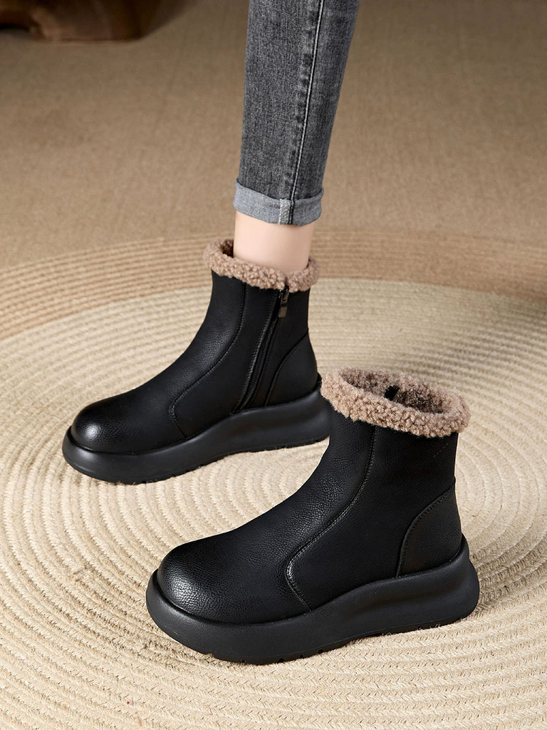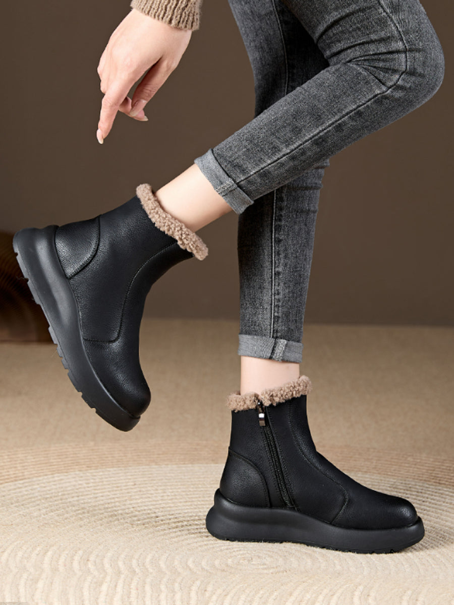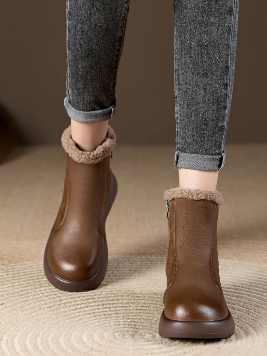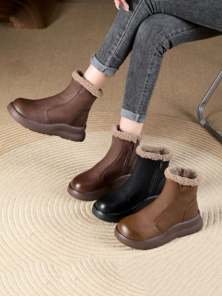 レディース 冬用 カジュアル ソフトレザー フリース裏地 アンクルブーツ